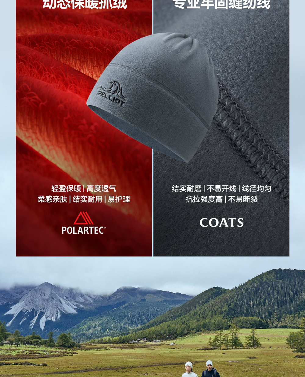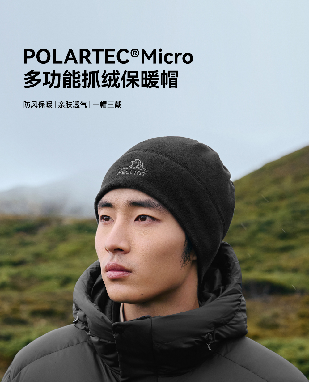 伯希和户外抓绒帽Polartec保暖冷帽男秋冬登山防风围脖跑步帽子女