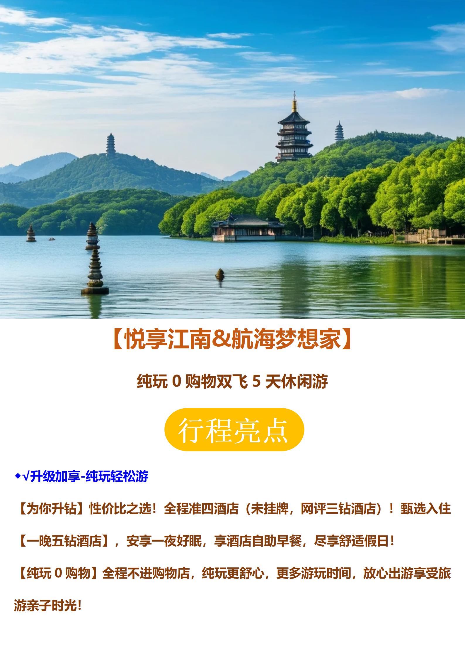 【悦享江南&航海梦想家】 纯玩0购物双飞5天休闲游