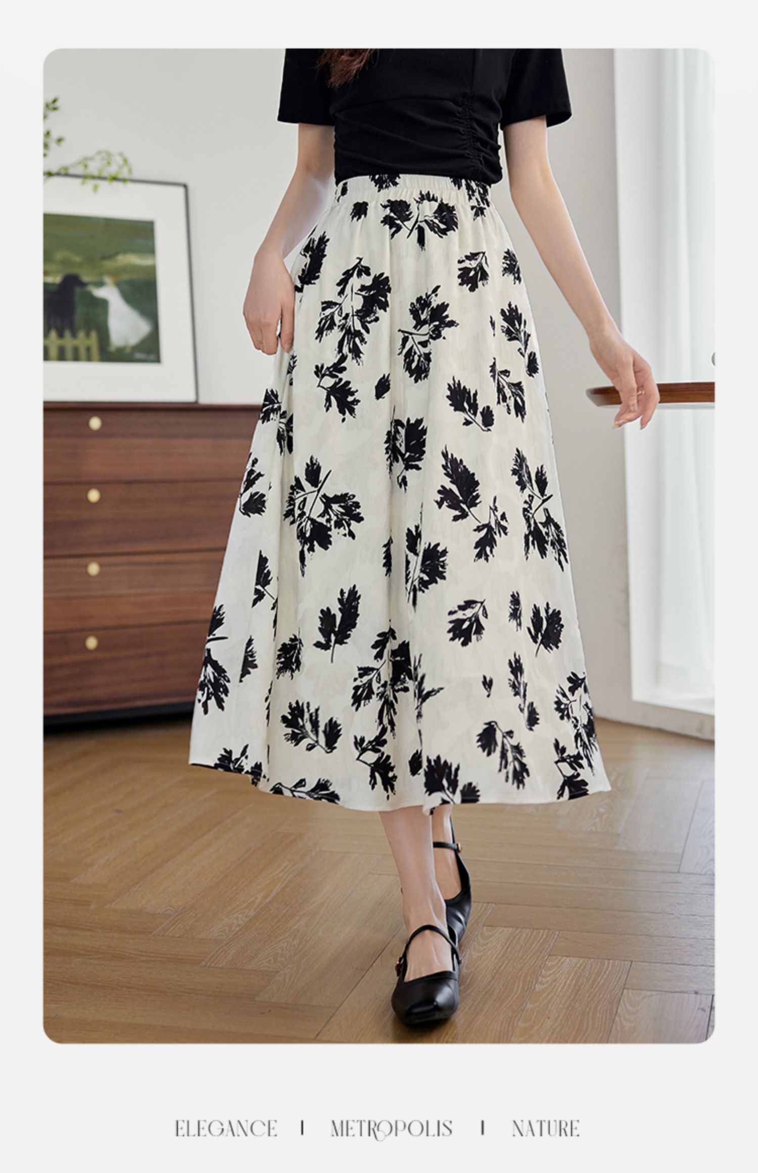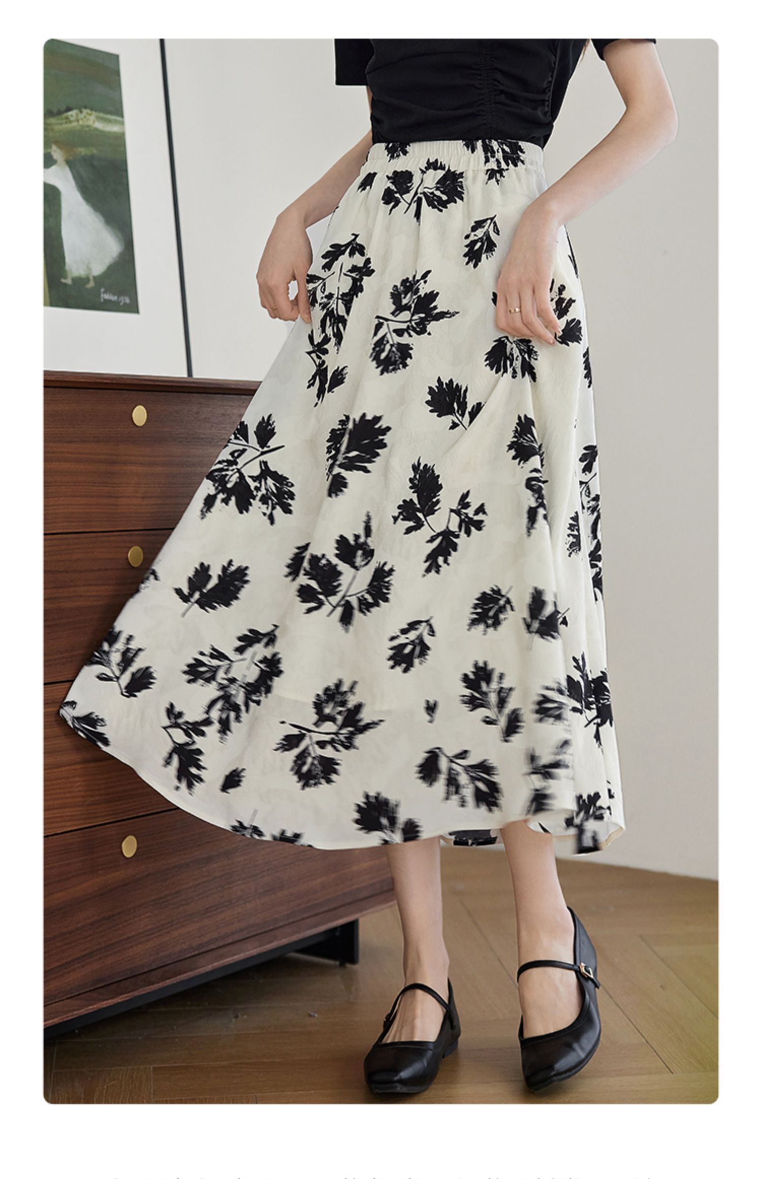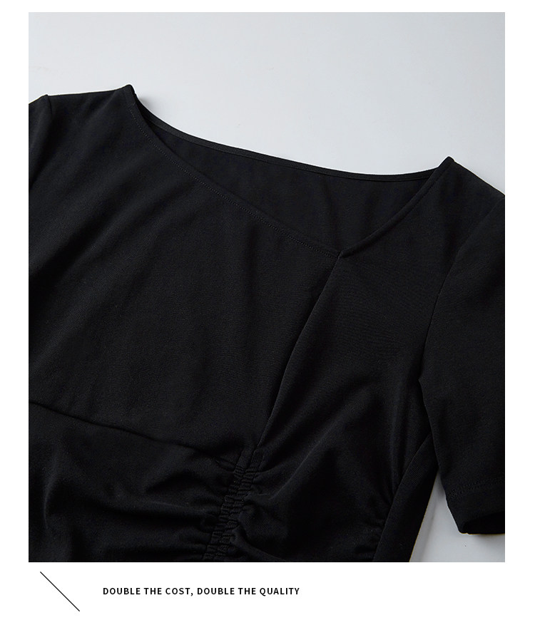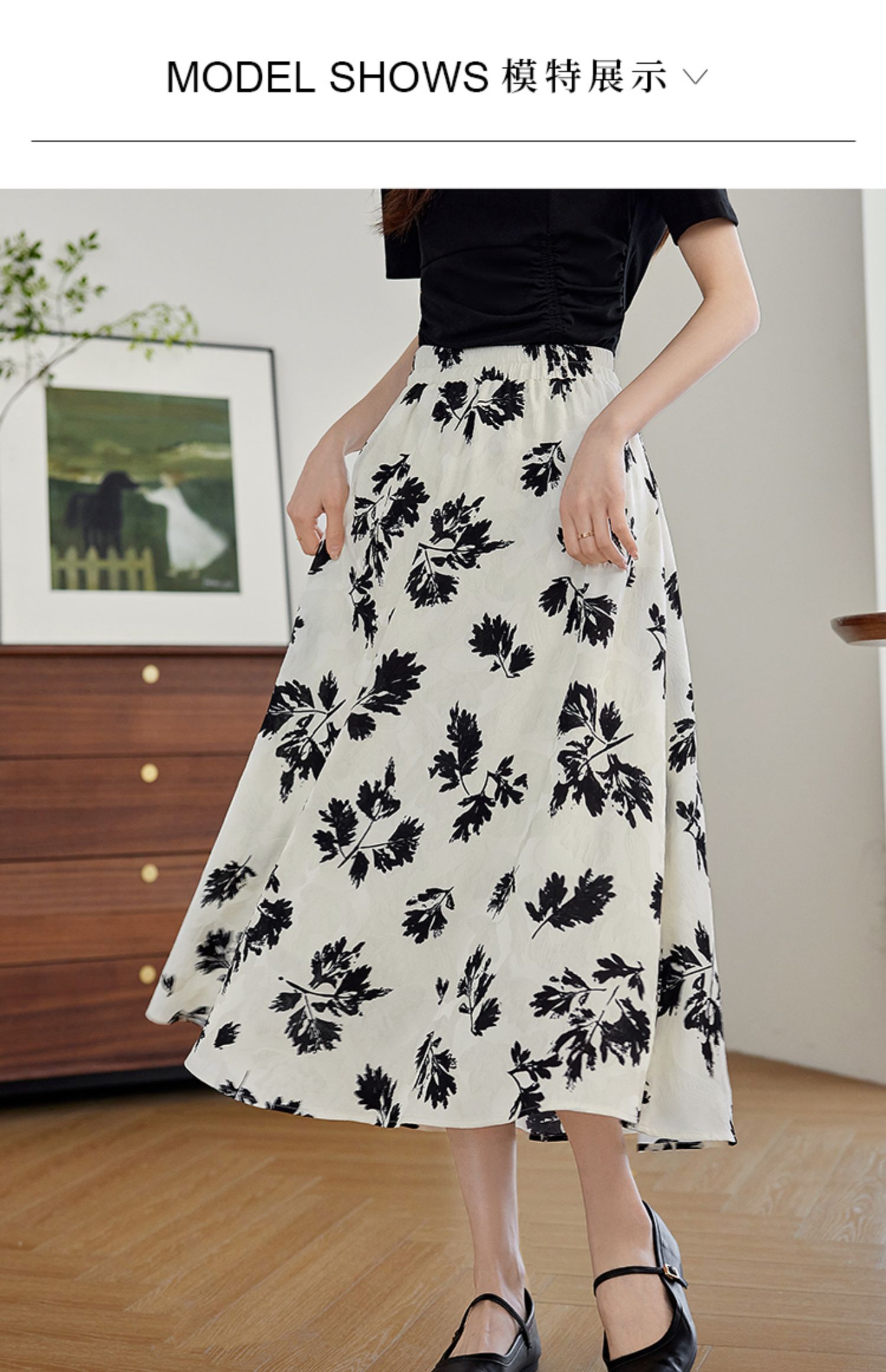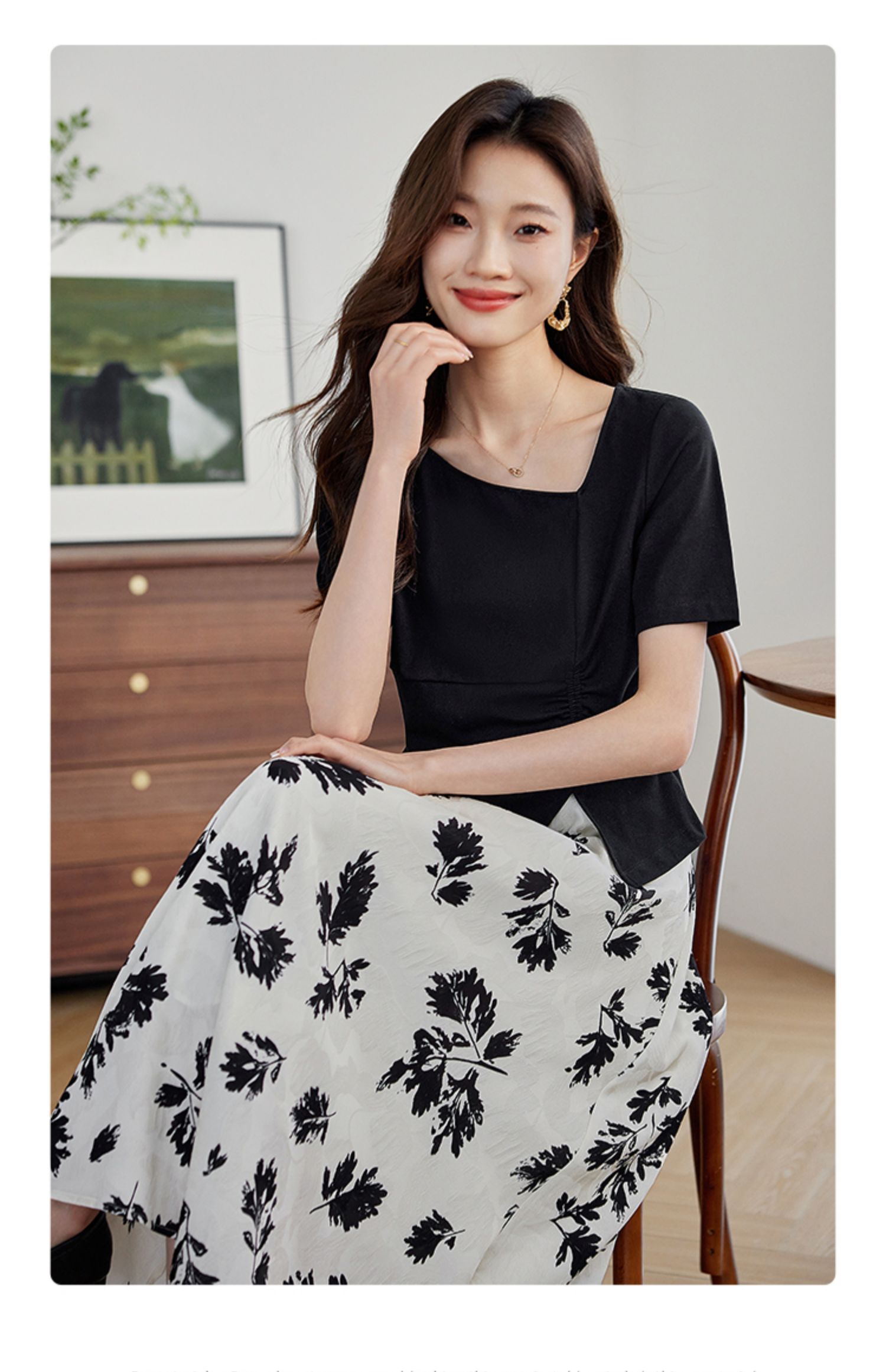 【专属特价】熙世界2025夏新款女装不规则褶皱V领短袖T恤碎花伞裙半身裙两件套