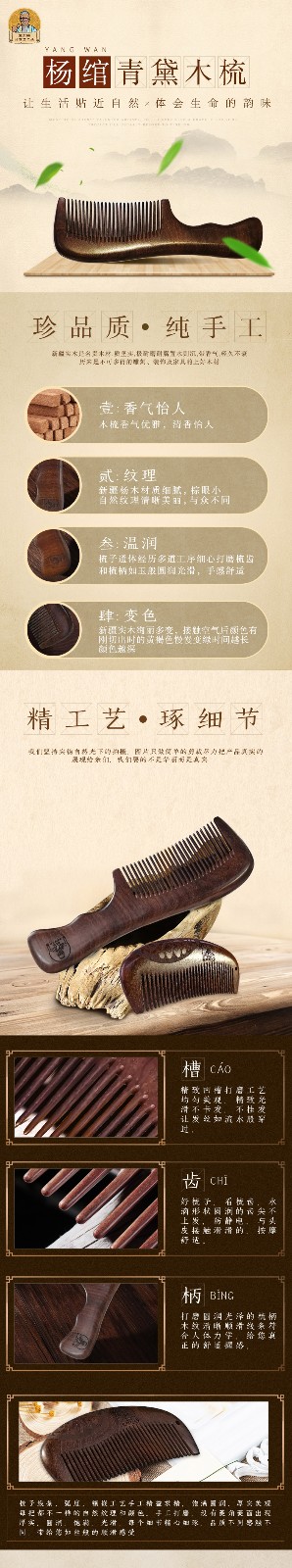 华喜好物 新疆库尔班手工坊杨绾青黛.木梳