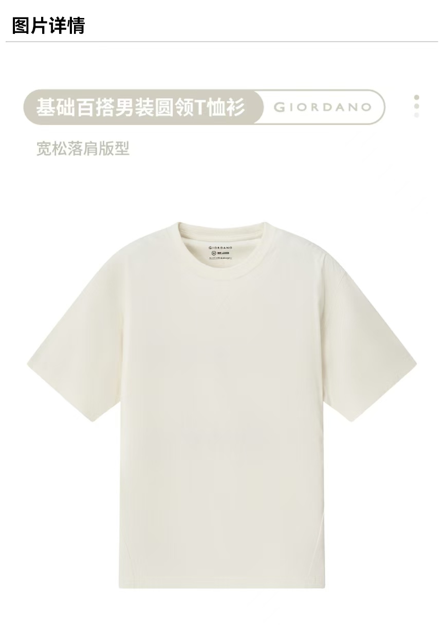 佐丹奴男装25年商场款基础百搭短袖圆领T恤衫01025240