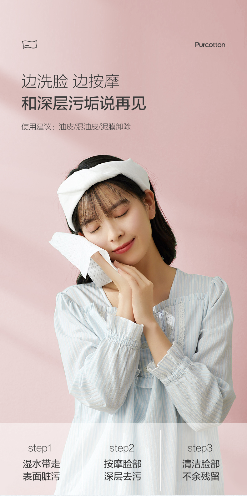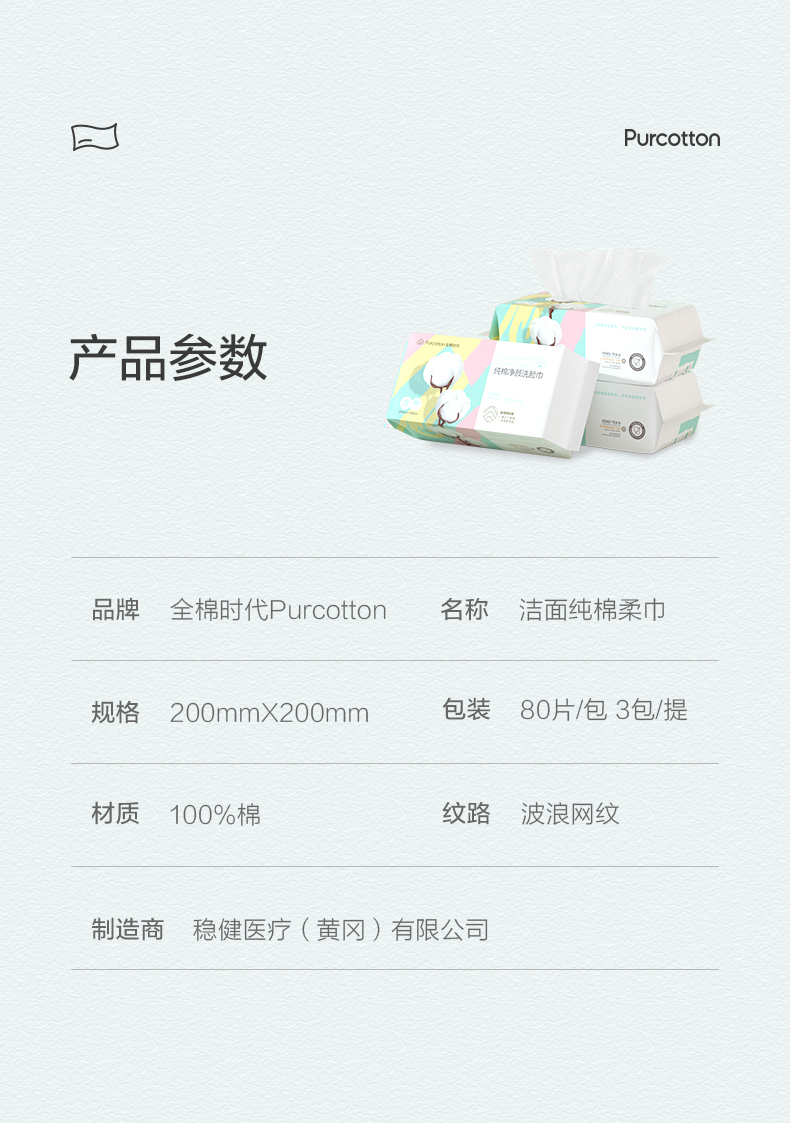 全棉时代 一次性洗脸巾20X20cm80片*3包