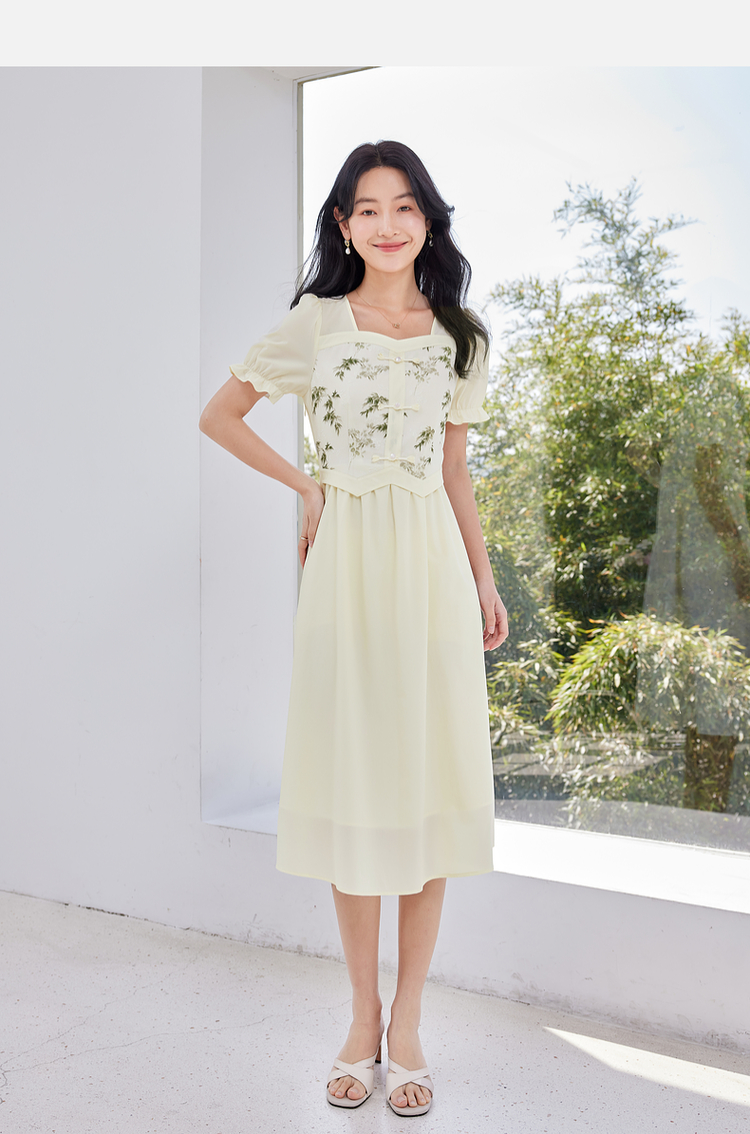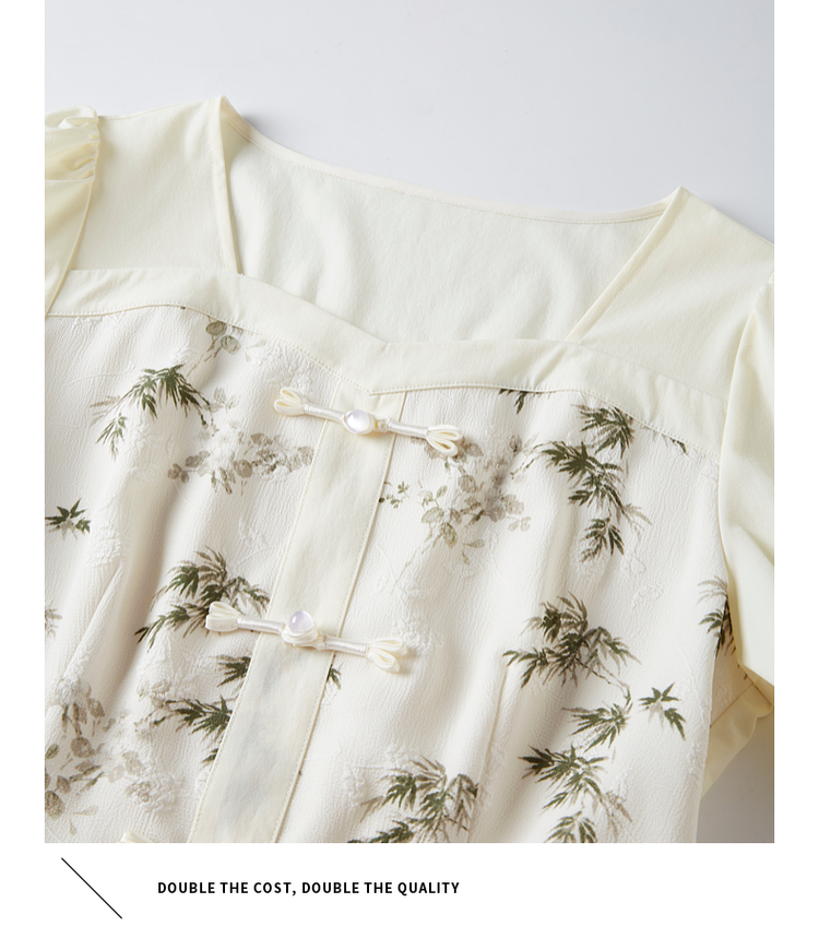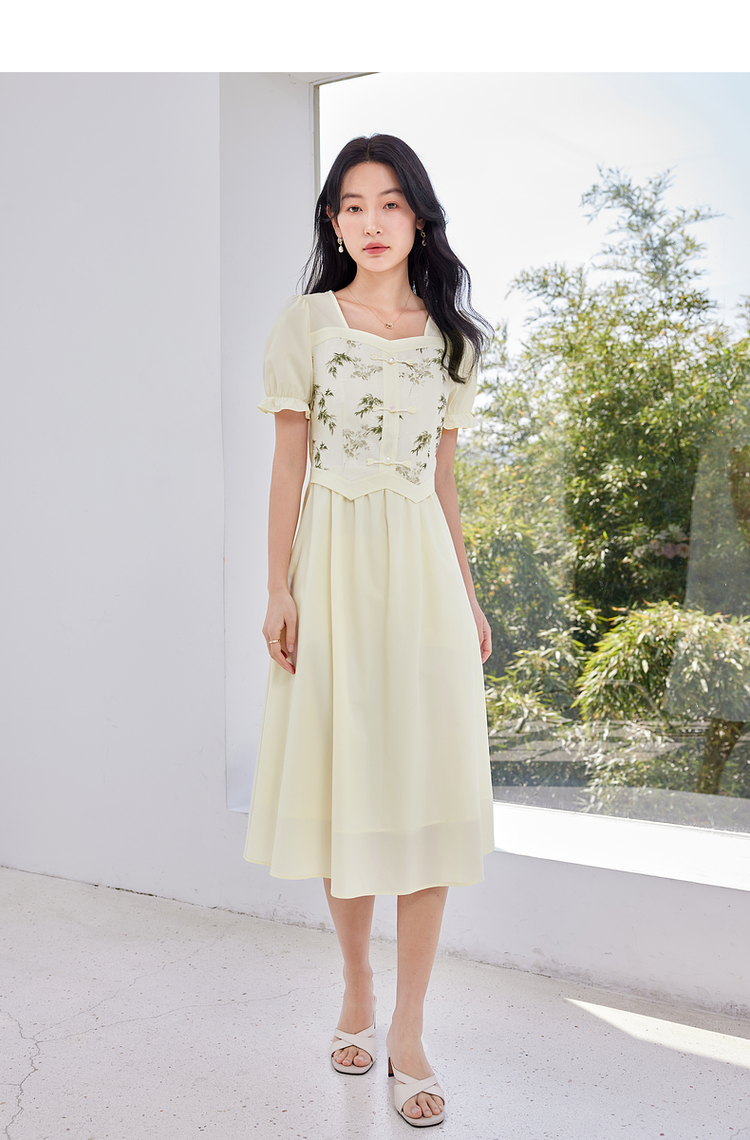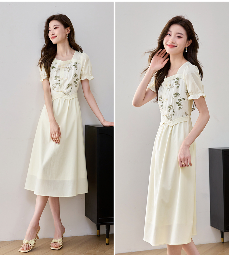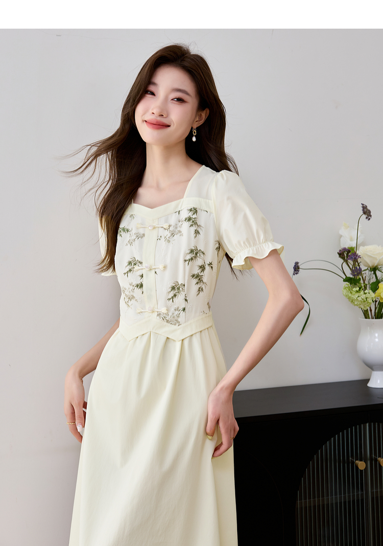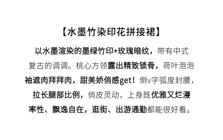 【专属特价】熙世界假两件新中式方领连衣裙夏季新款收腰显瘦水墨画国风长裙