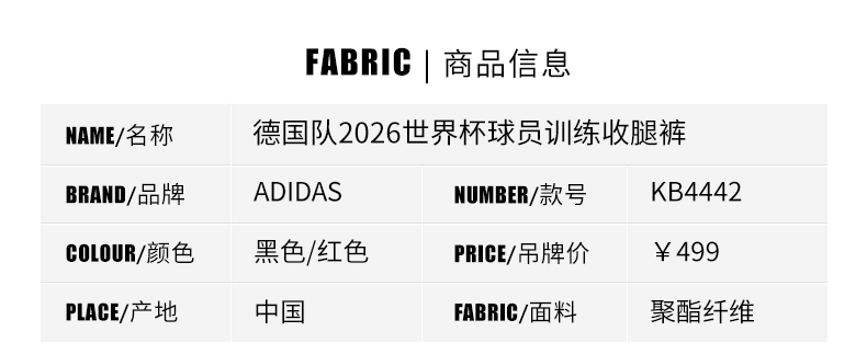 SFS阿迪达斯2026世界杯德国球员训练裤足球运动收腿裤男子KB4442