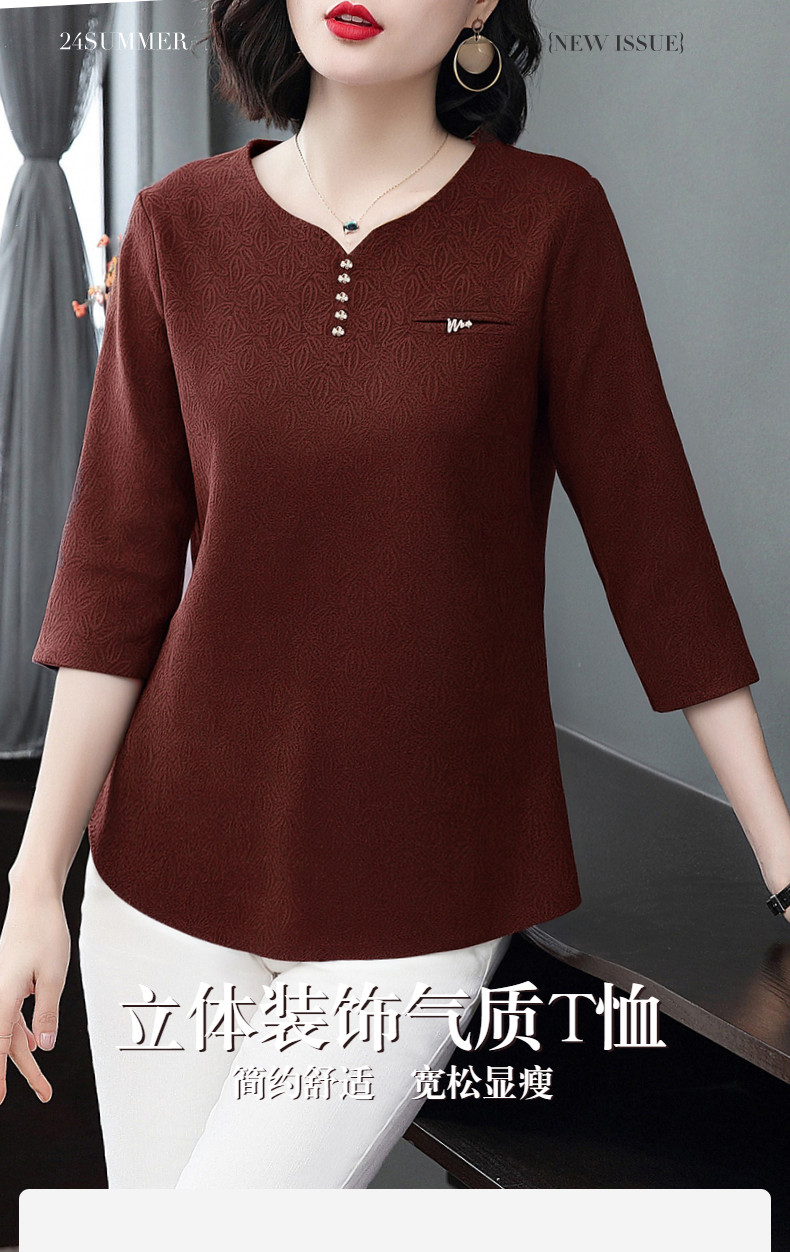 大码七分袖T恤女2026春季新款宽松洋气遮肚薄款小衫中袖减龄上衣