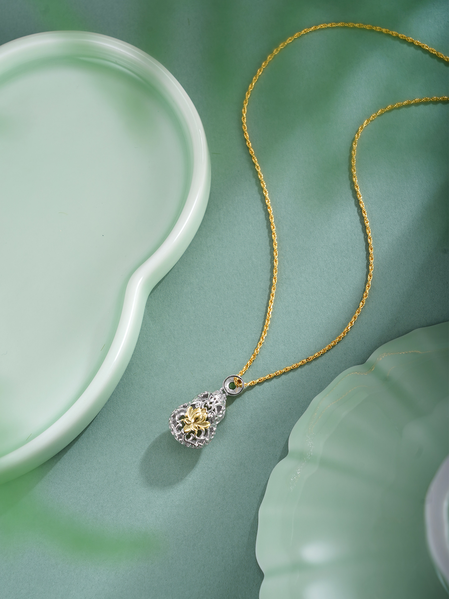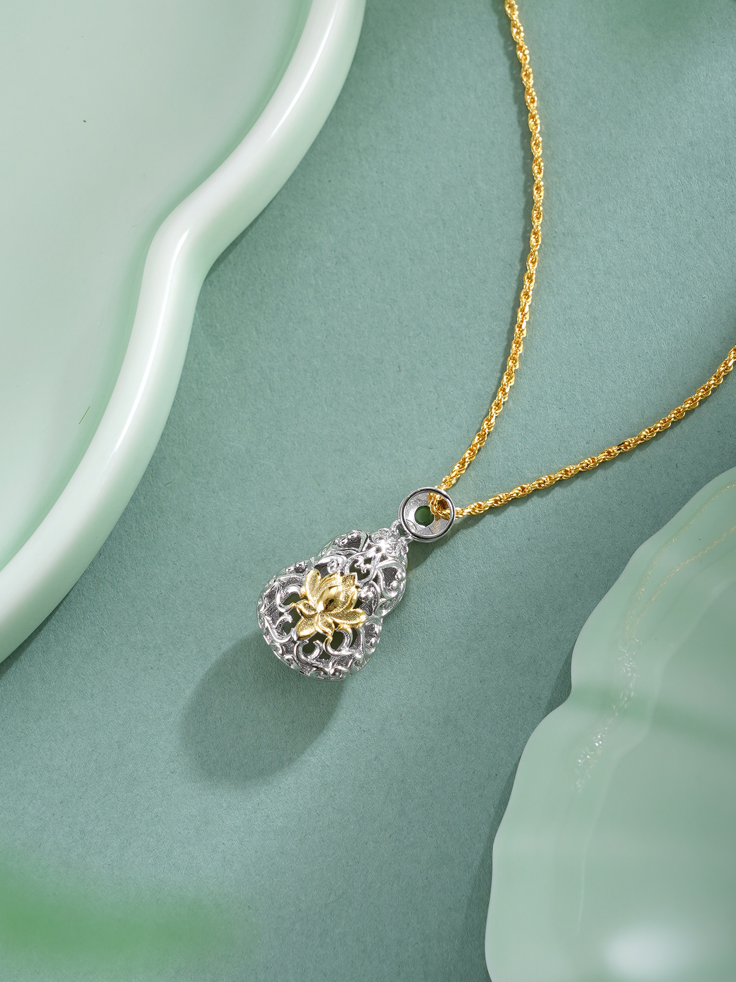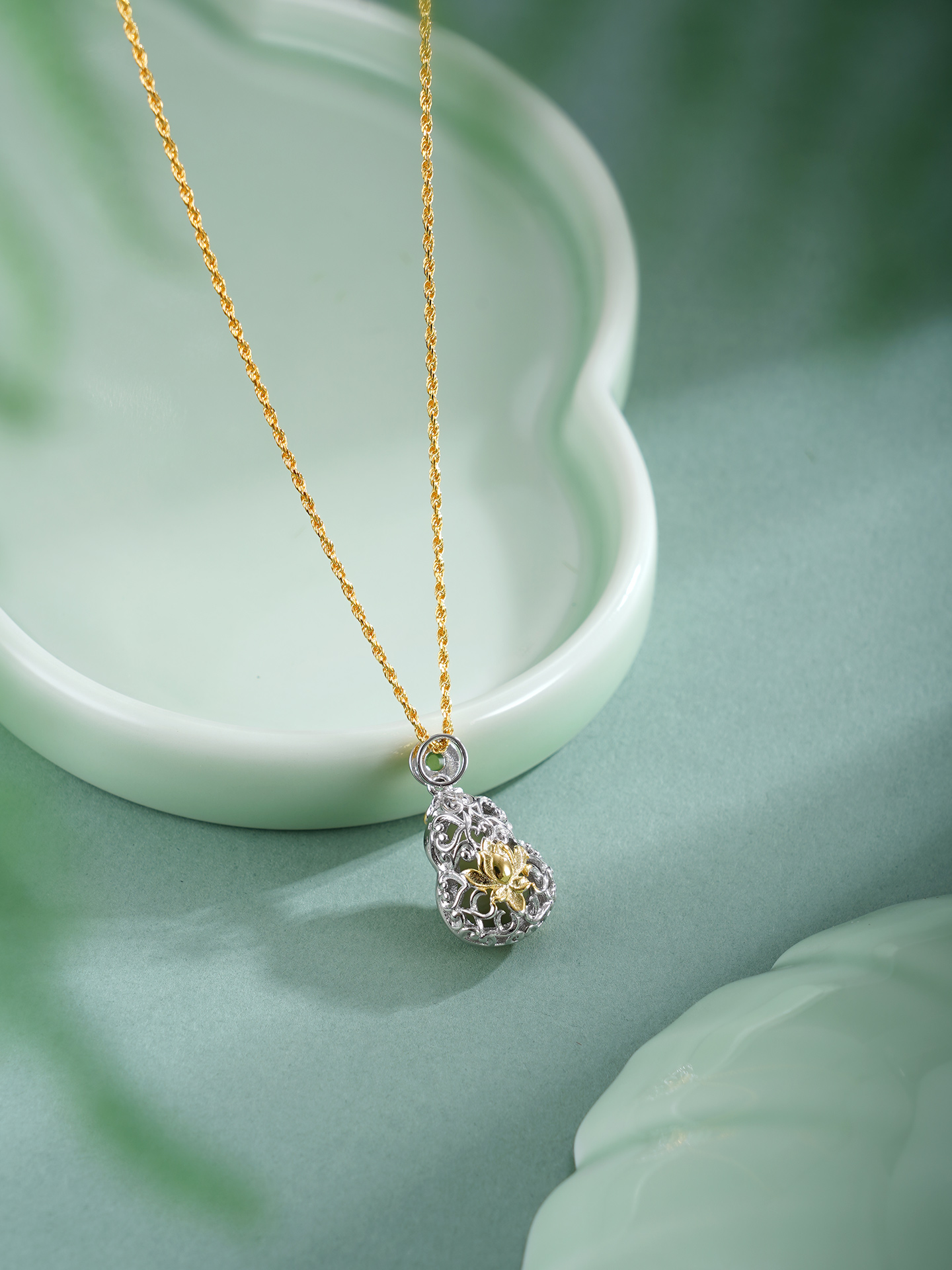 子佩集【福禄无尽】银S925套链【DZ07193】镀金葫芦晴水玉荷花项链古法银2511