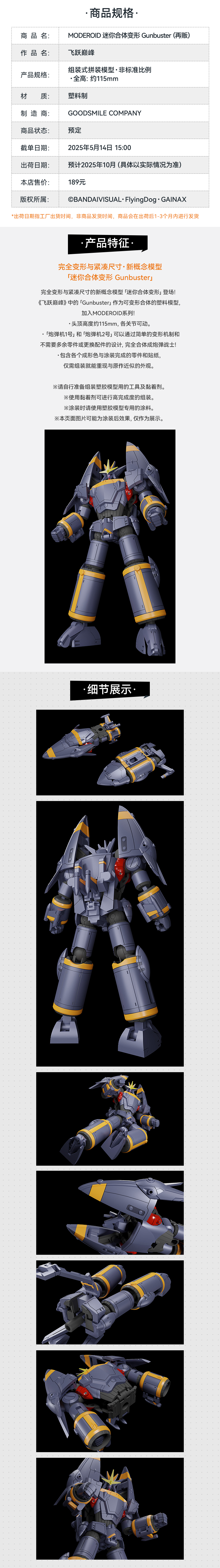 【GSC预售定金】MODEROID 迷你合体变形 Gunbuster 飞跃巅峰
