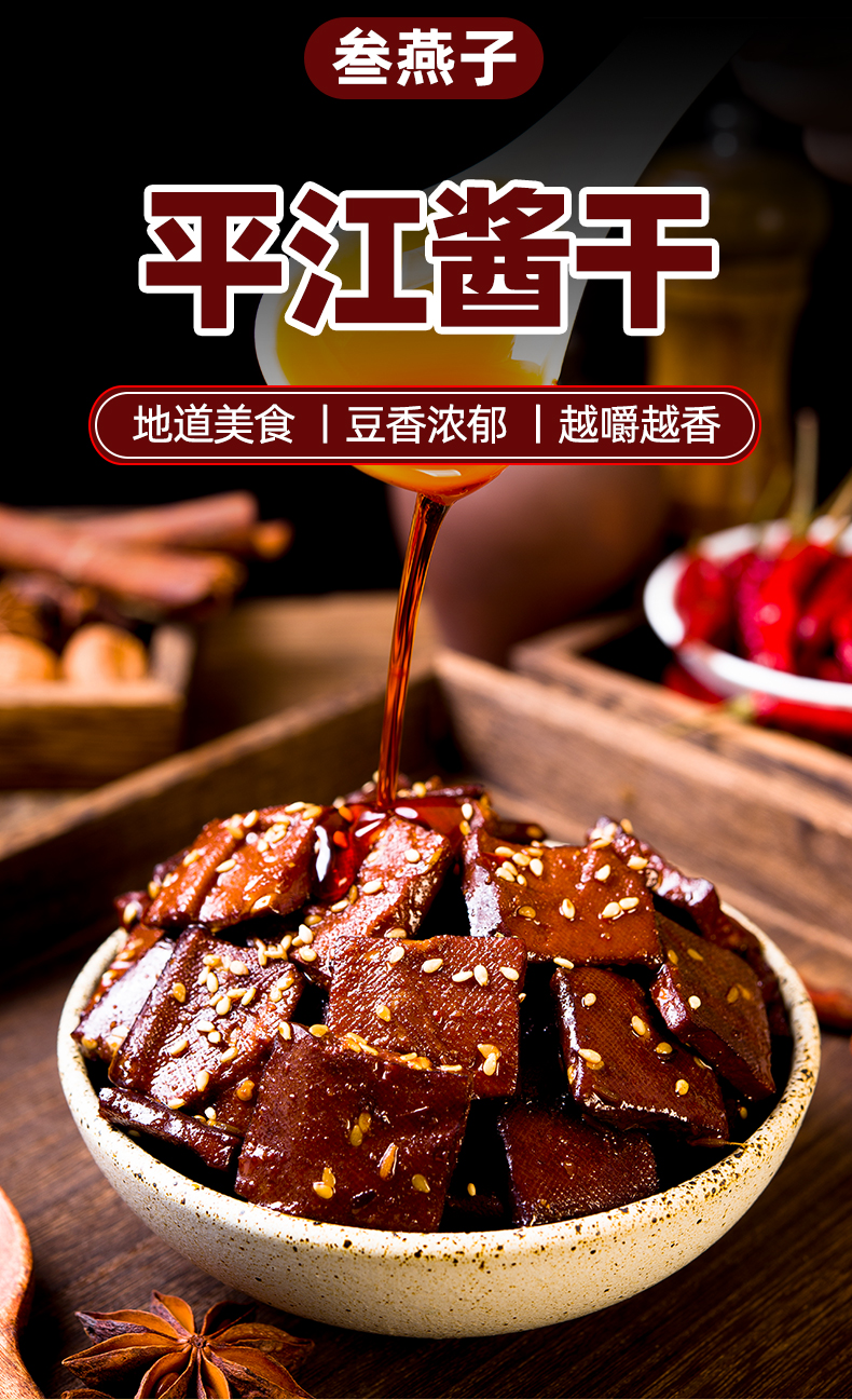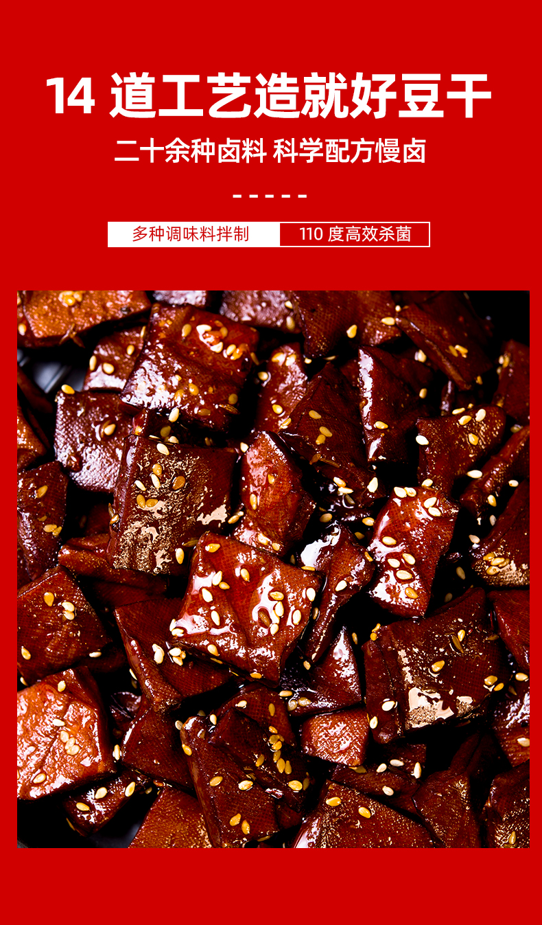 自营(月亮湾)-平江酱豆干100g*8袋 辣味卤盐干子 湖南特产小零食