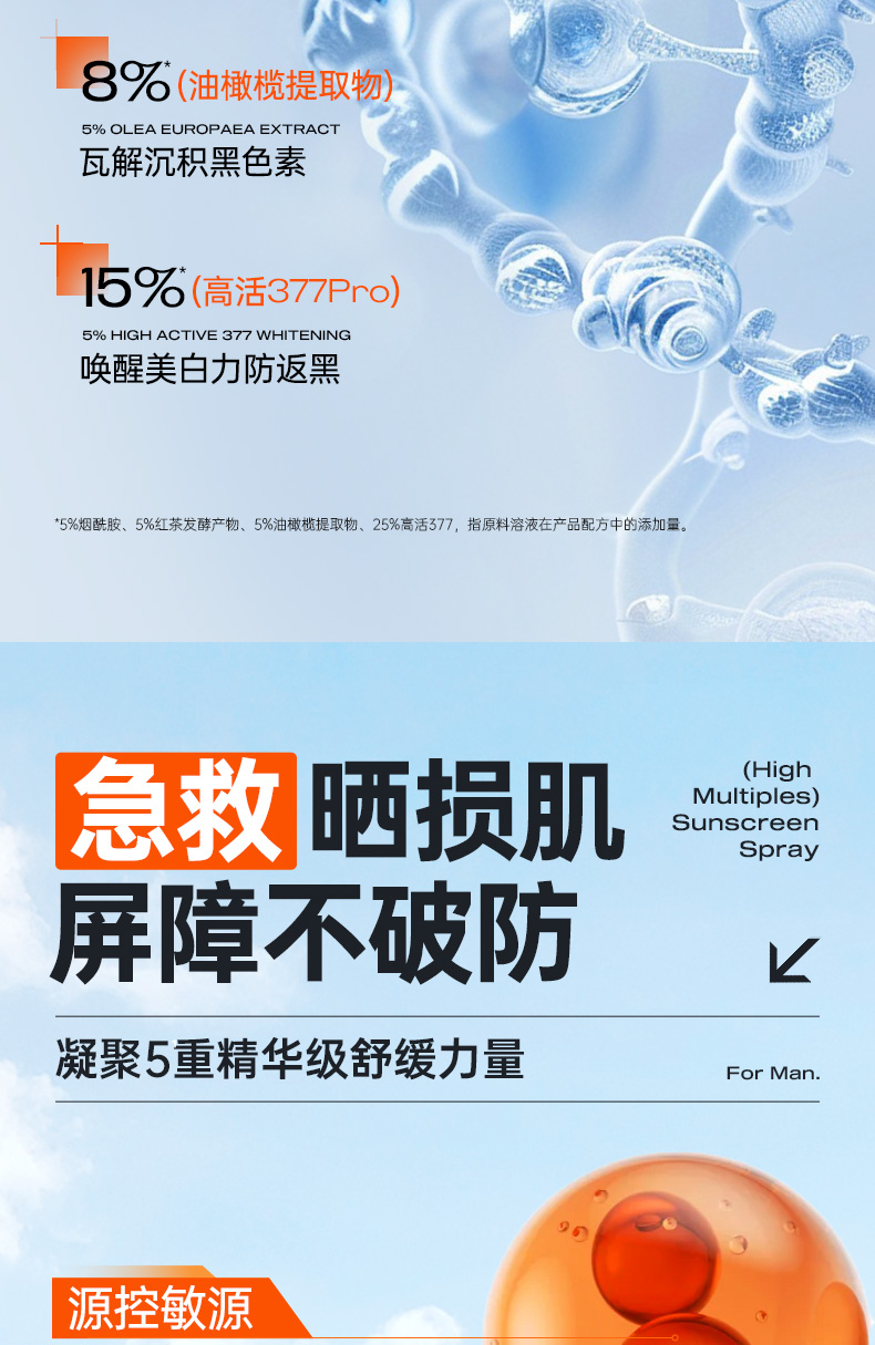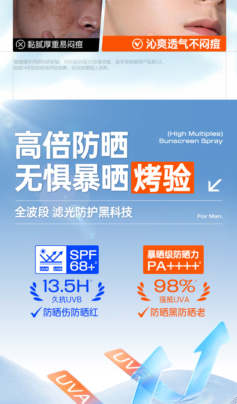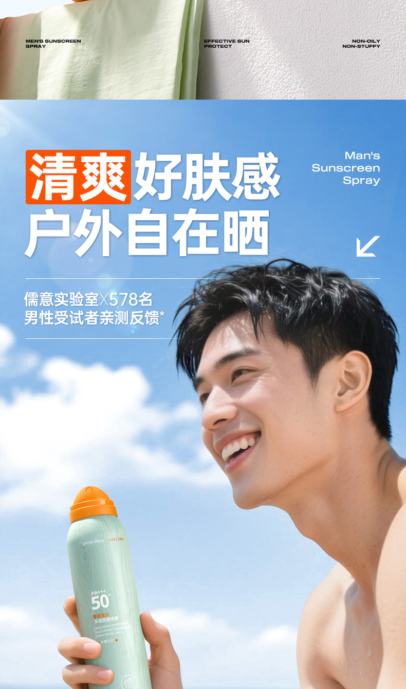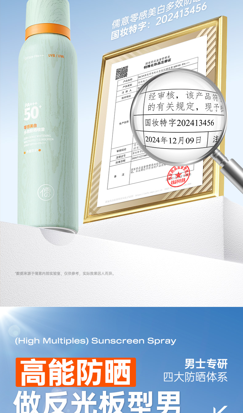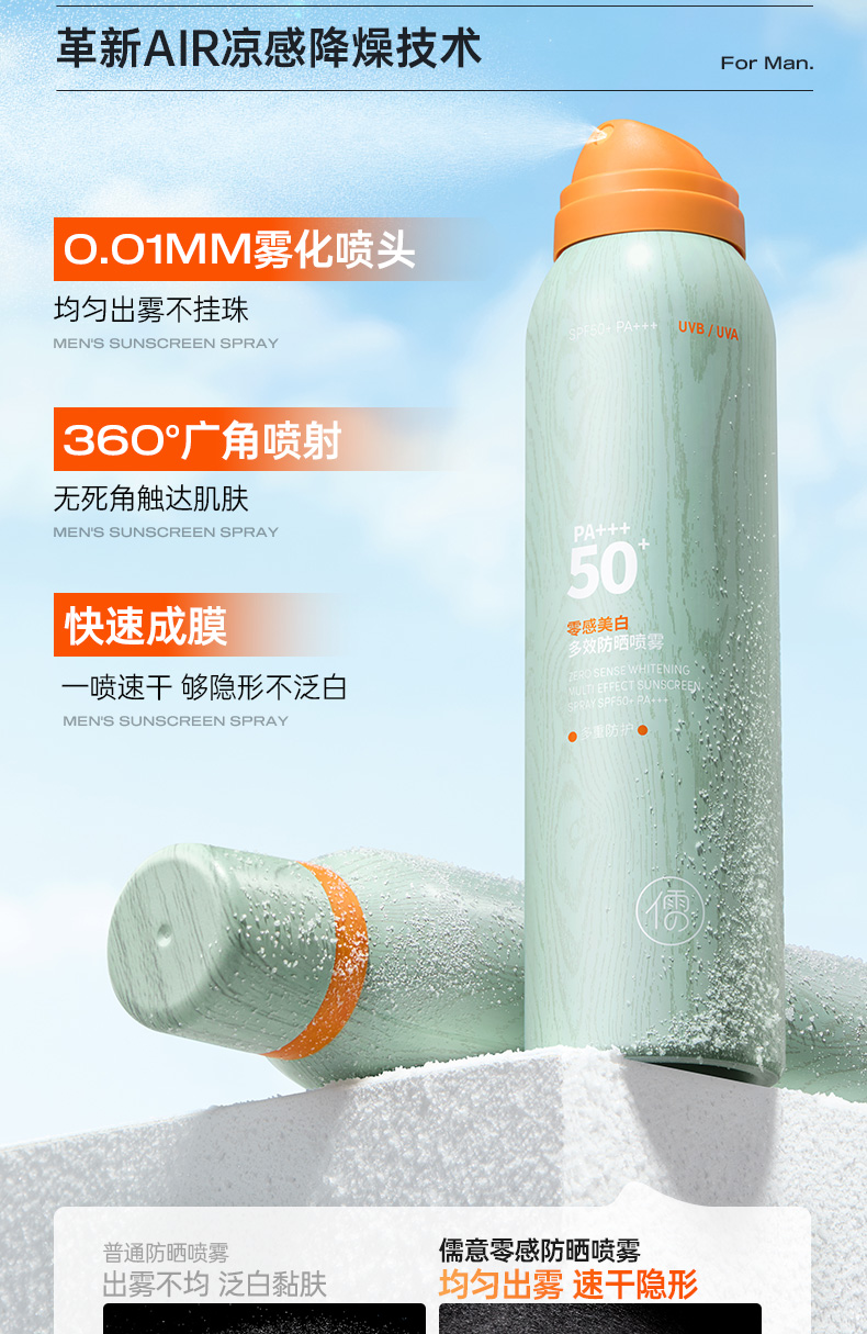 儒意零感美白多效防晒喷雾150ml 美白防晒喷雾男士户外出游专用运动50倍防紫外线防晒霜|儒意官方商城
