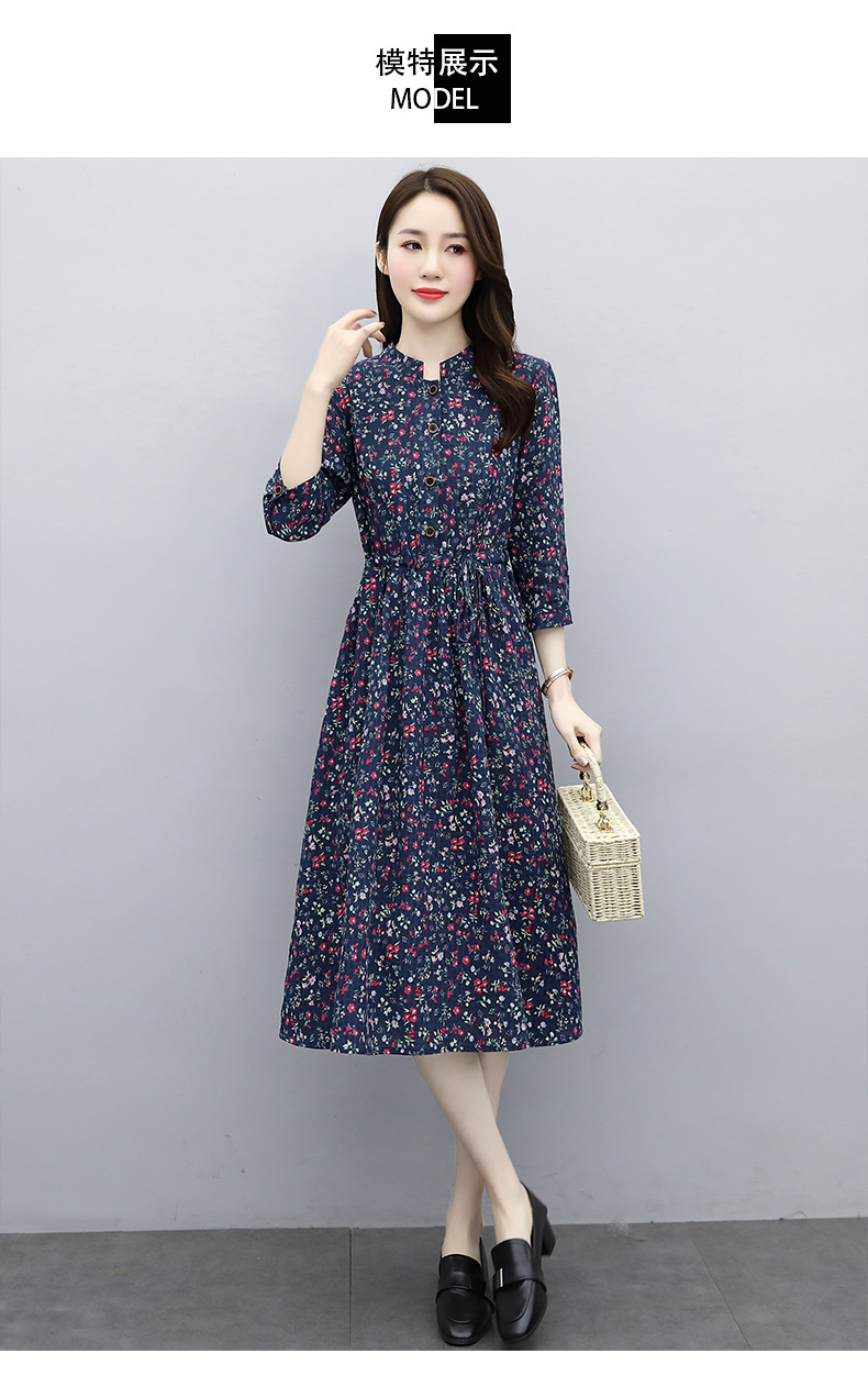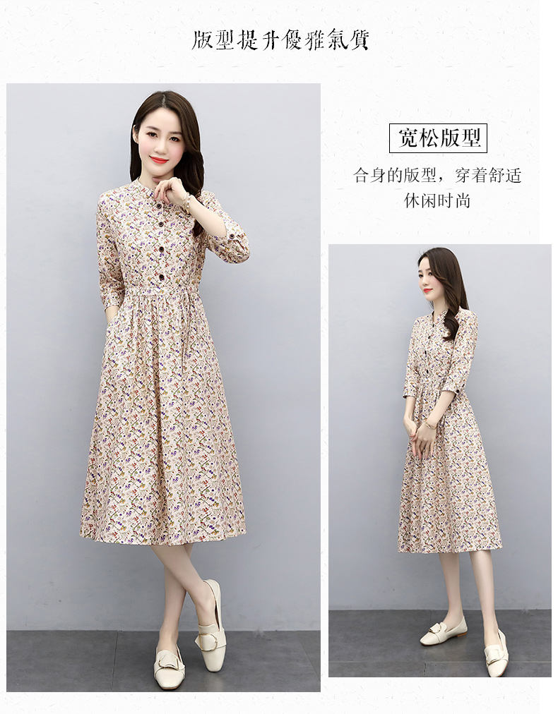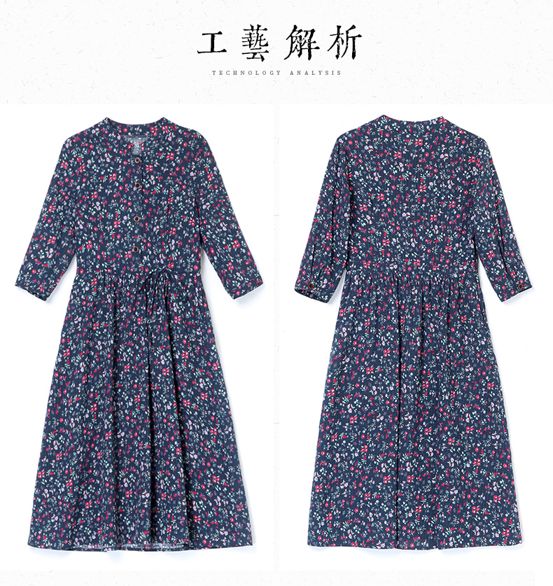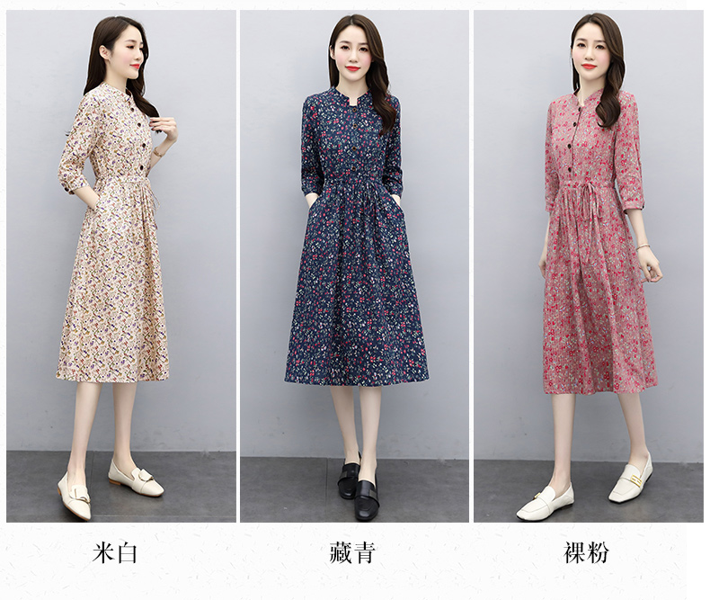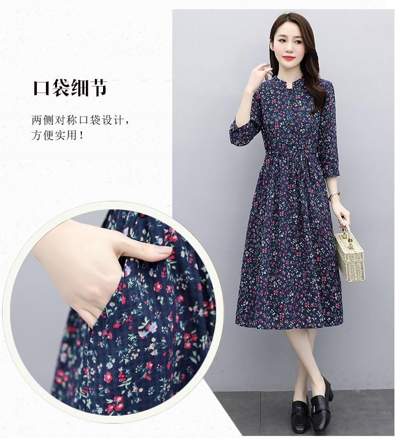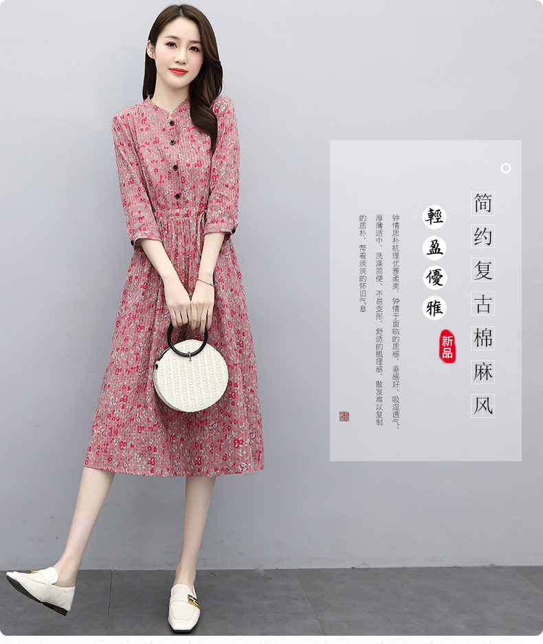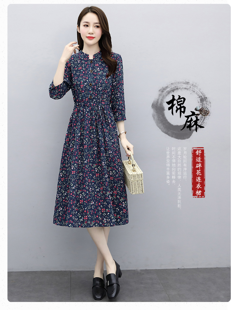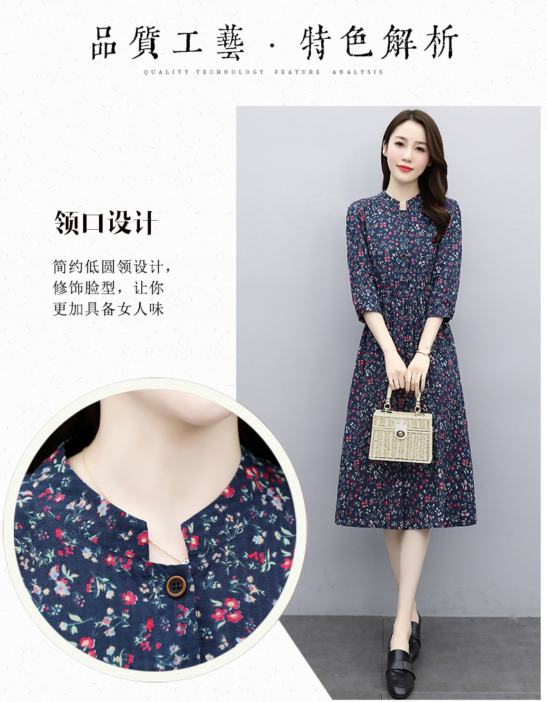 印花棉麻,修身时尚舒适连衣裙HR-XBLD13