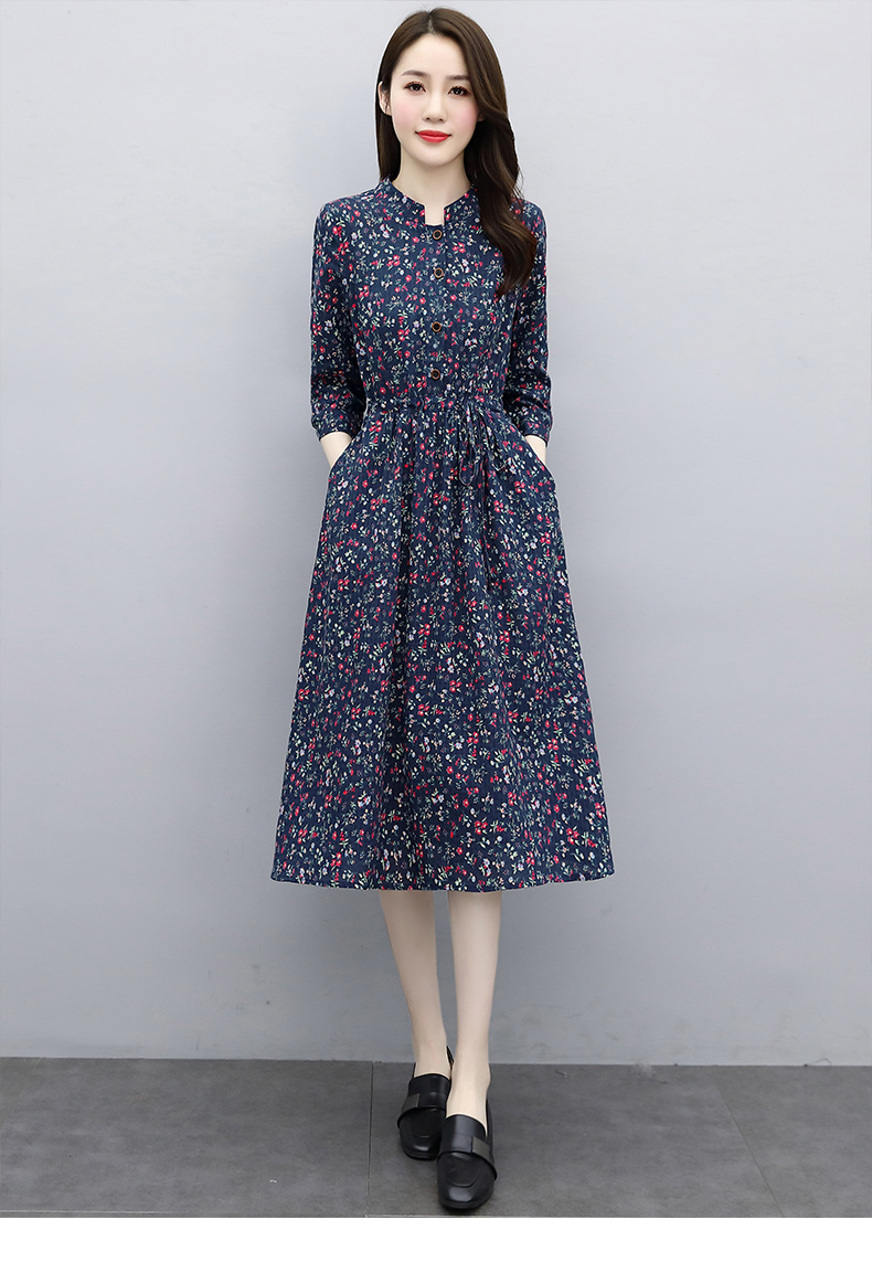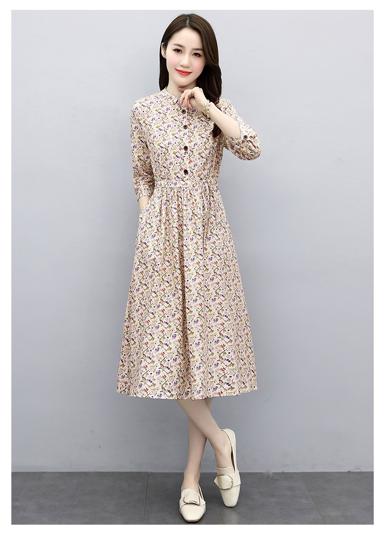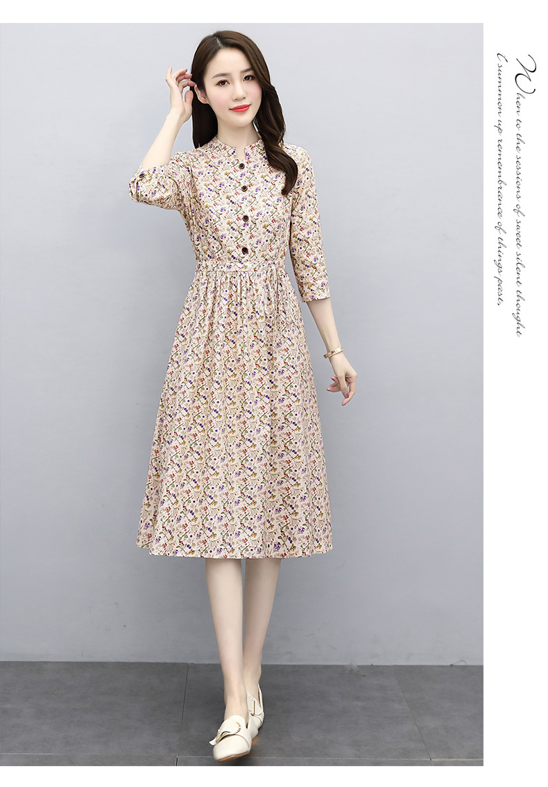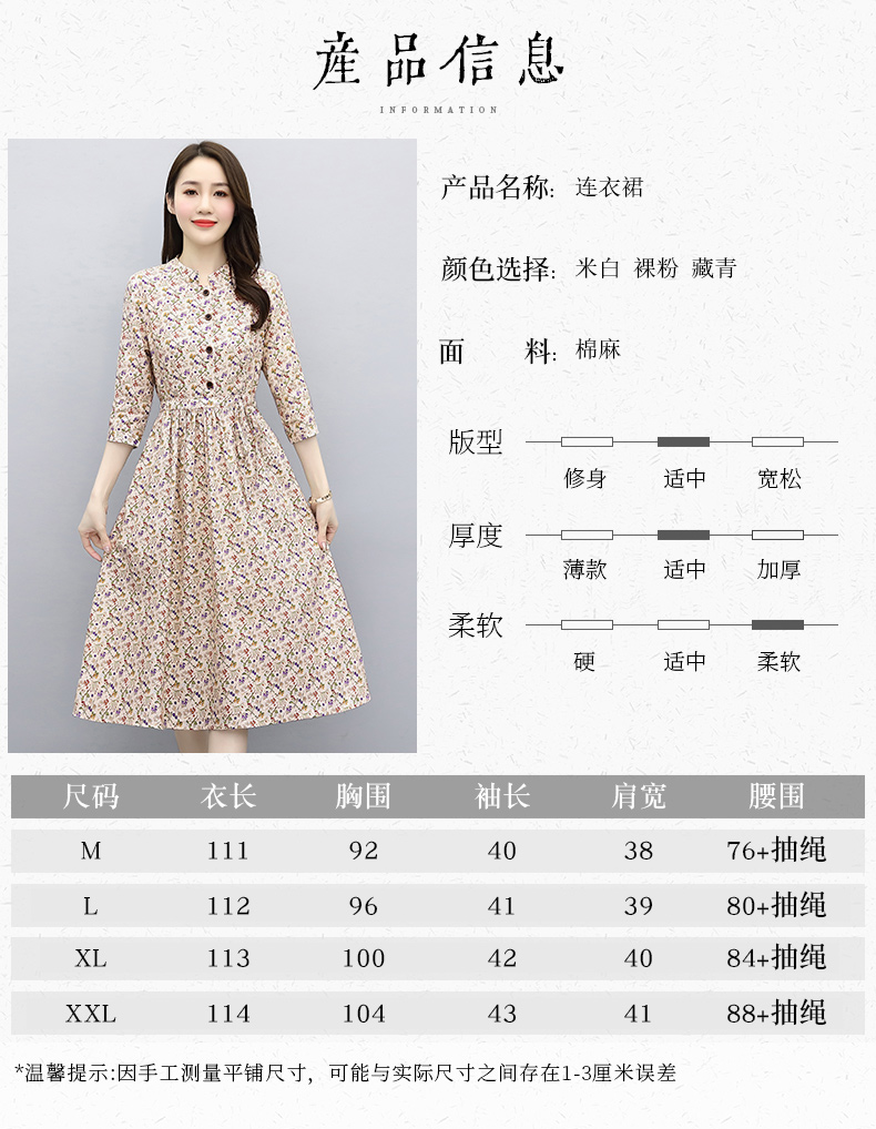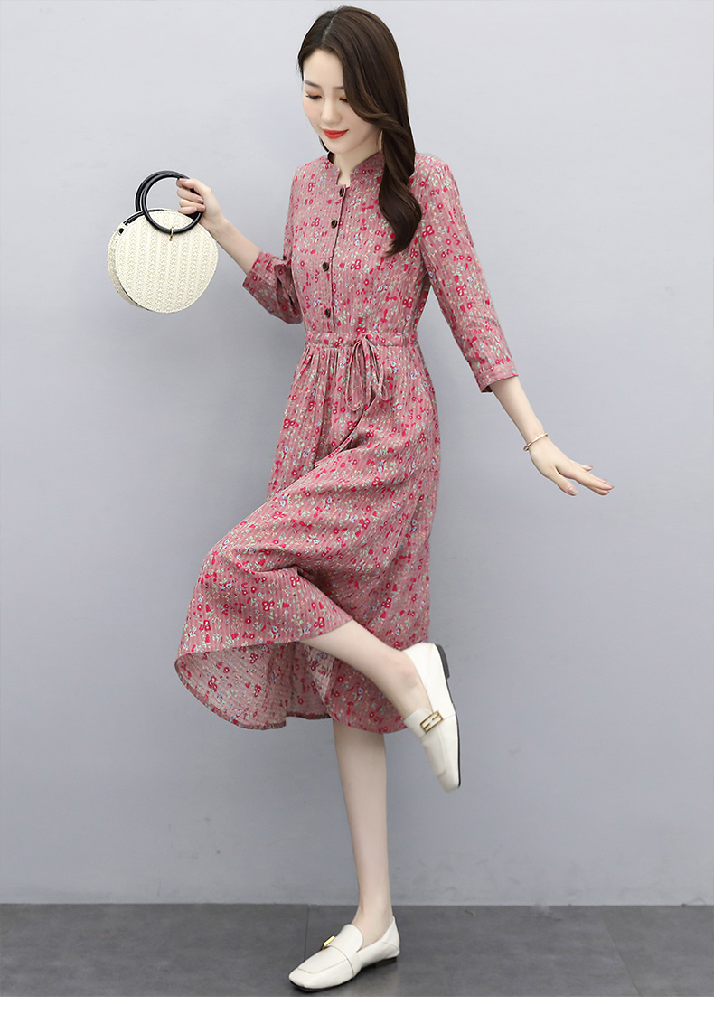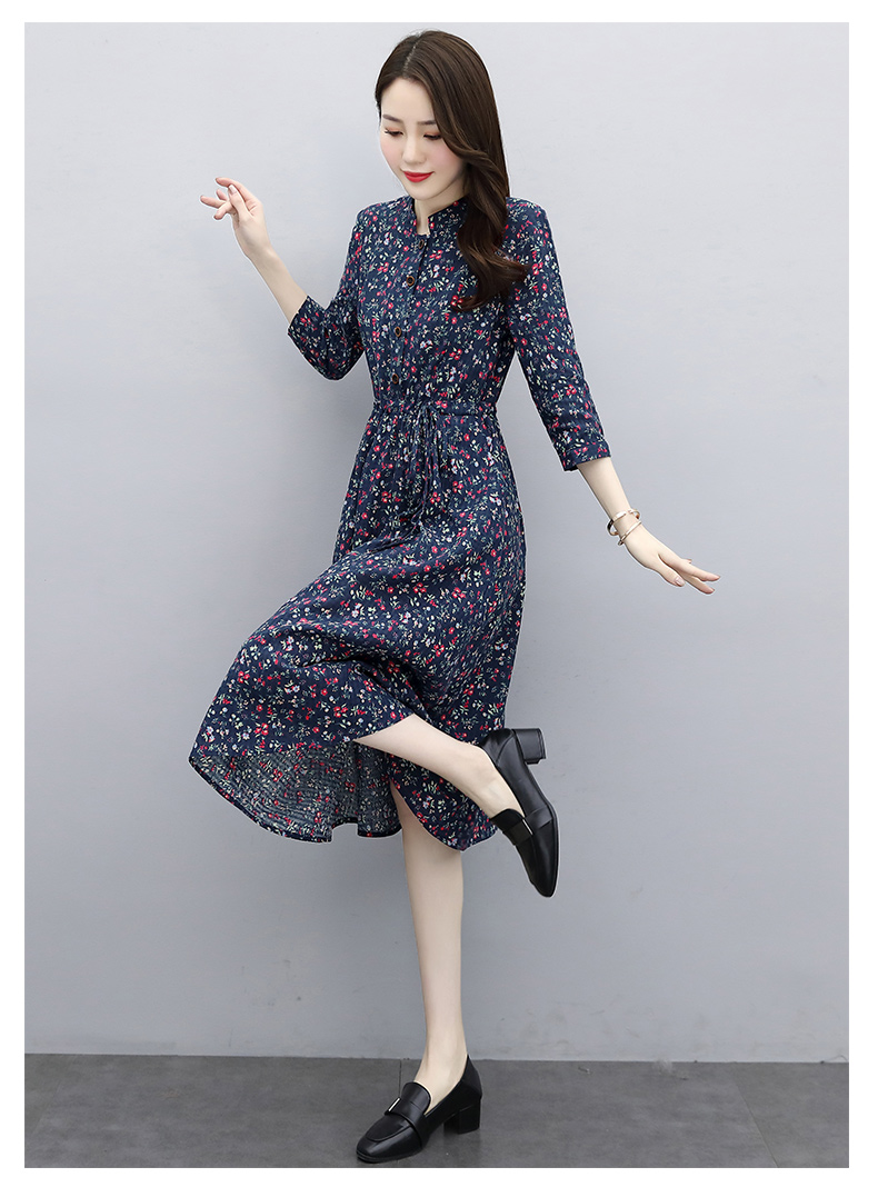 印花棉麻,修身时尚舒适连衣裙HR-XBLD13