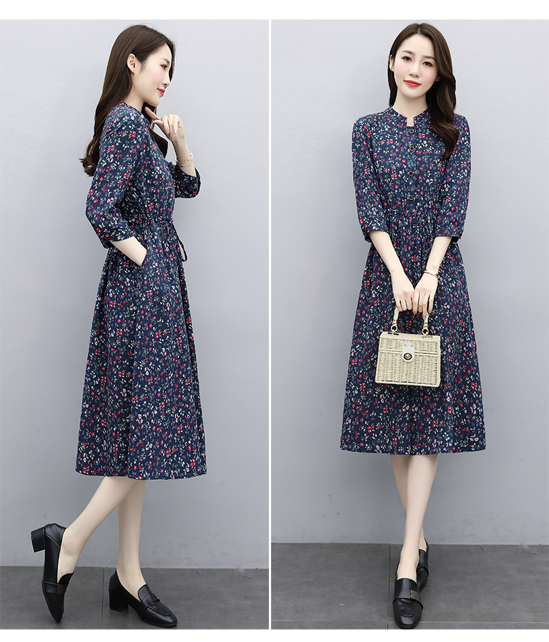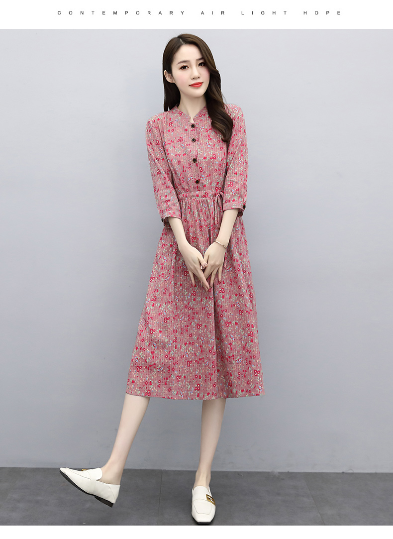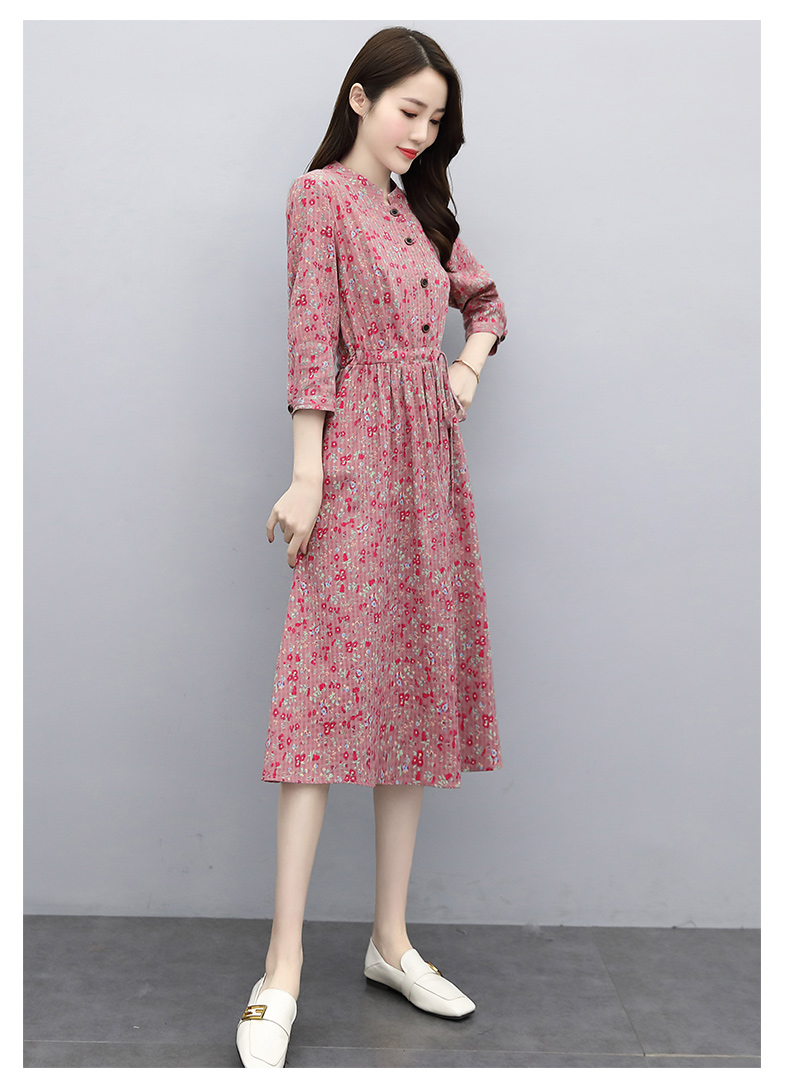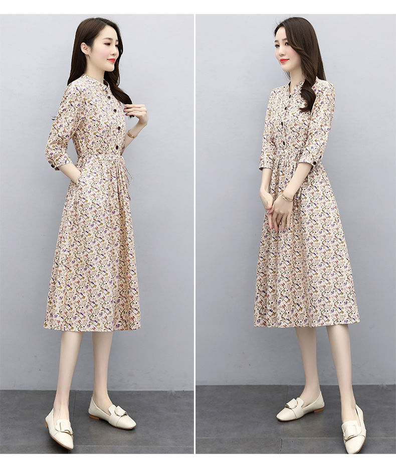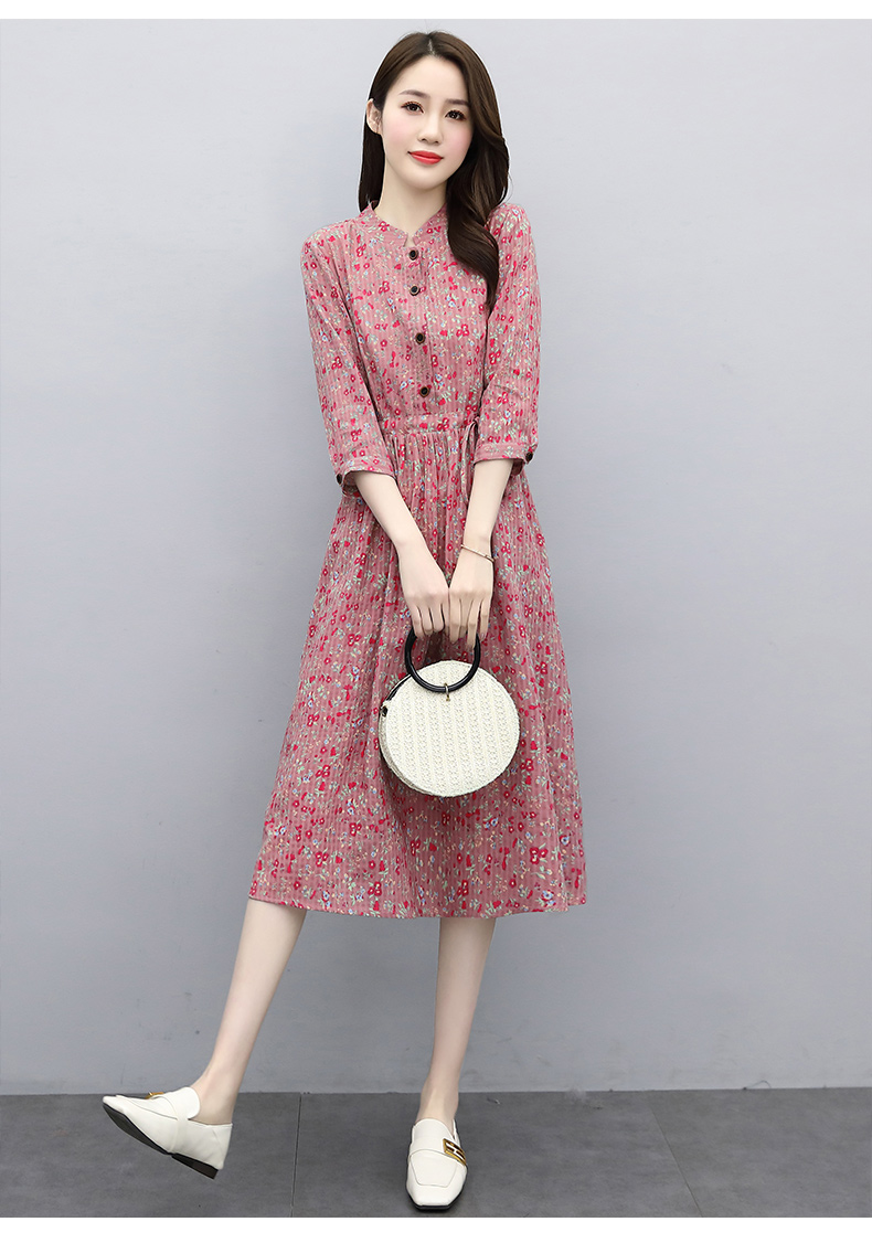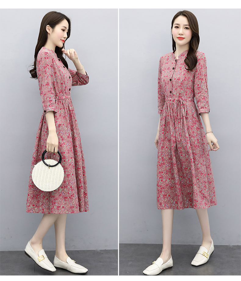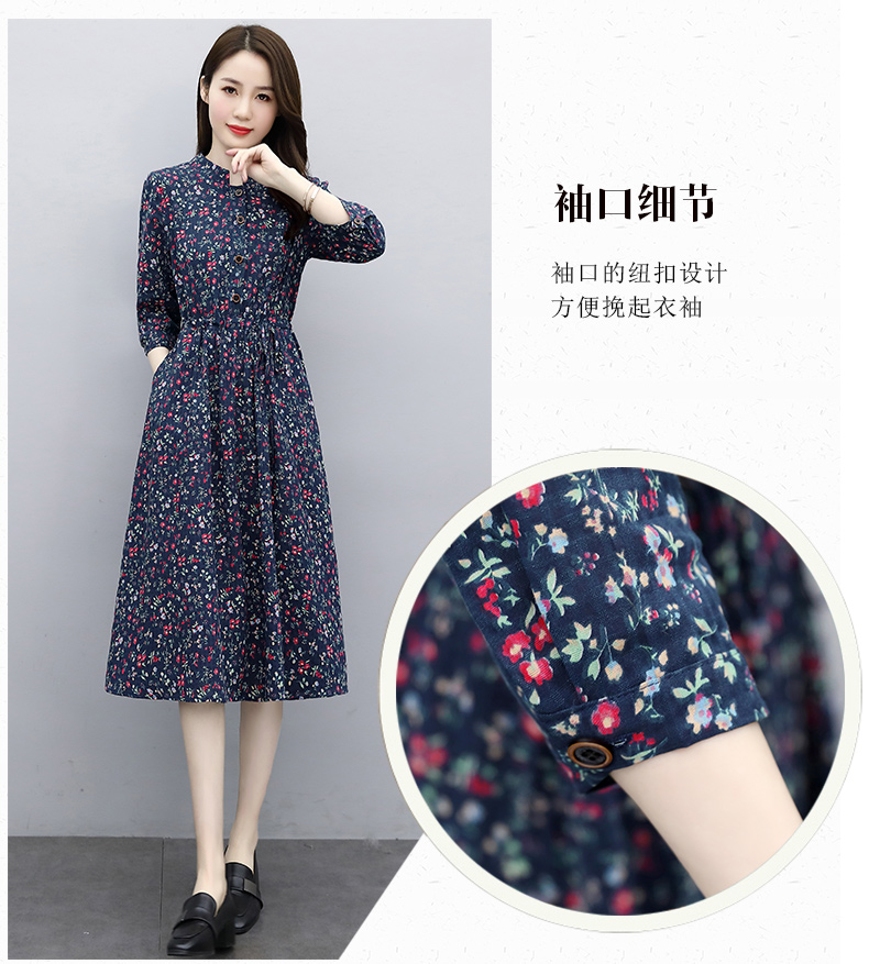 印花棉麻,修身时尚舒适连衣裙HR-XBLD13