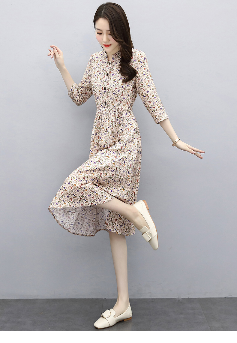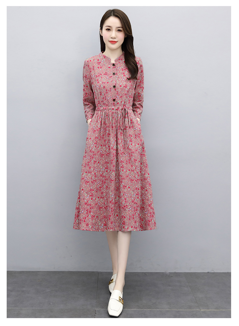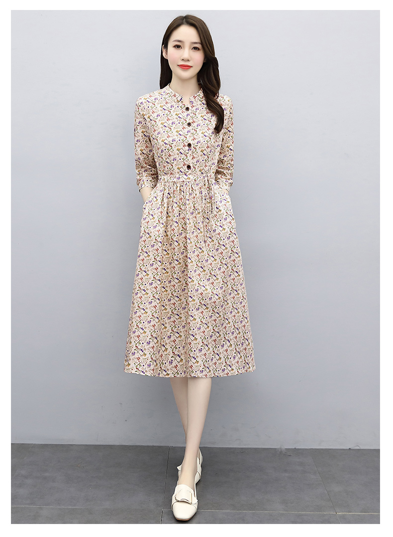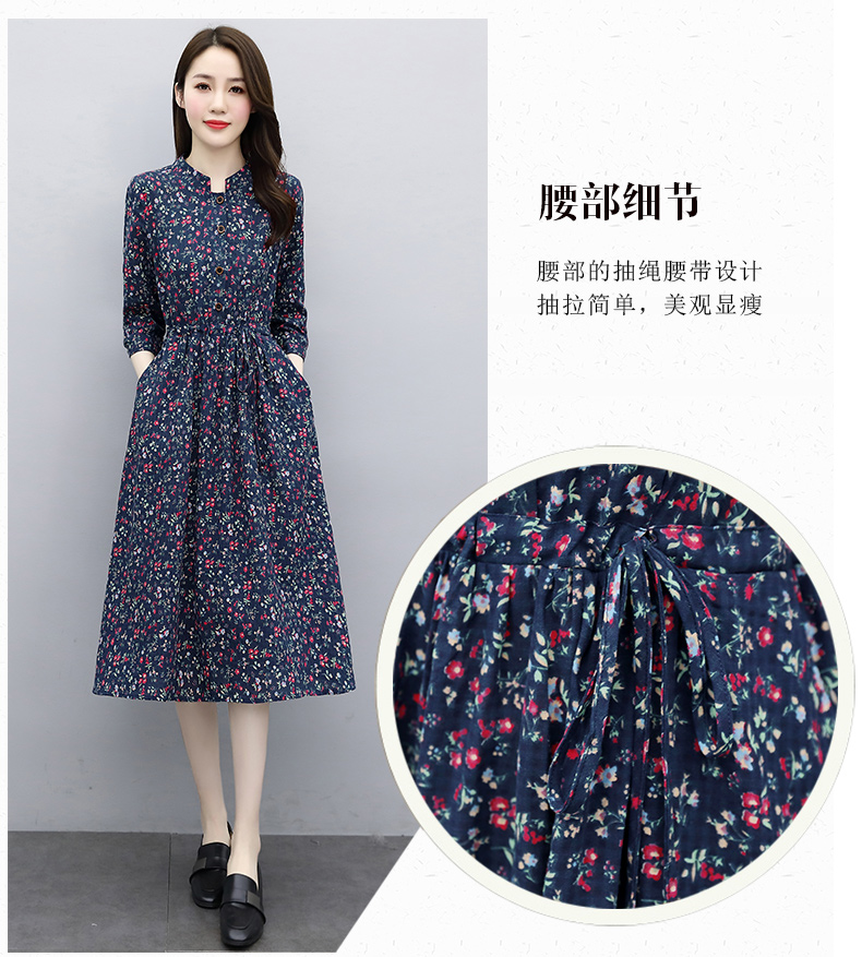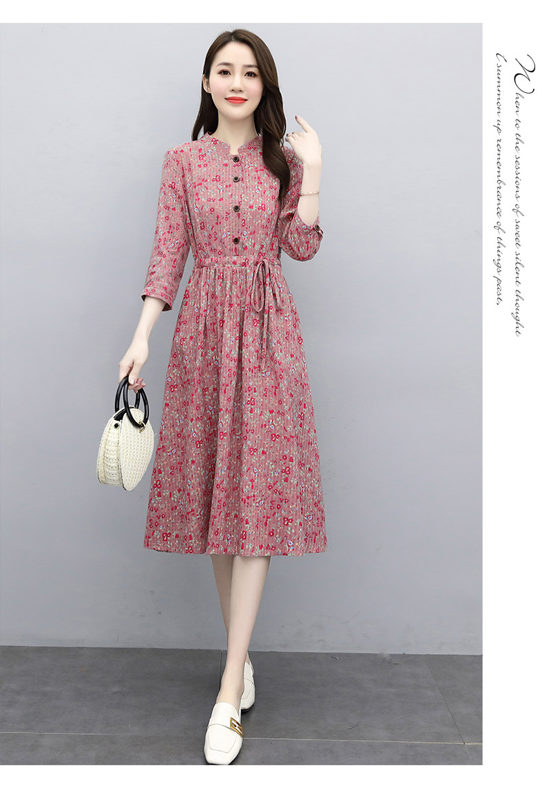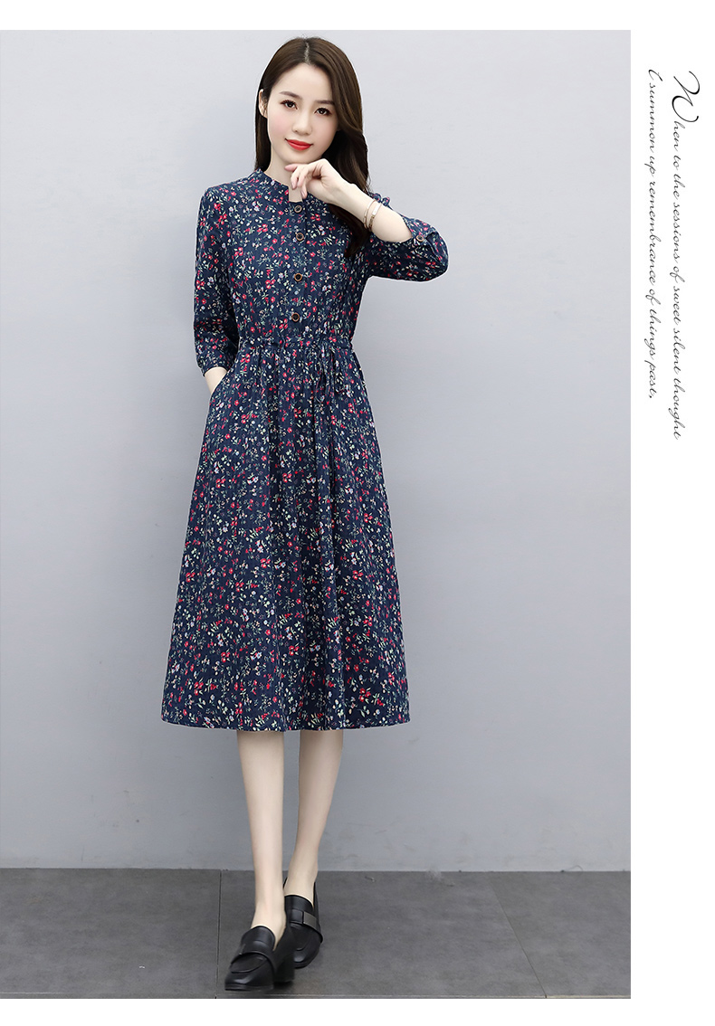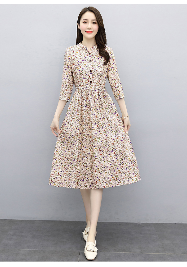 印花棉麻,修身时尚舒适连衣裙HR-XBLD13