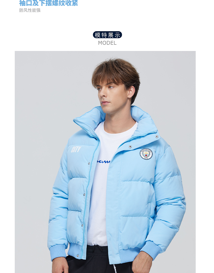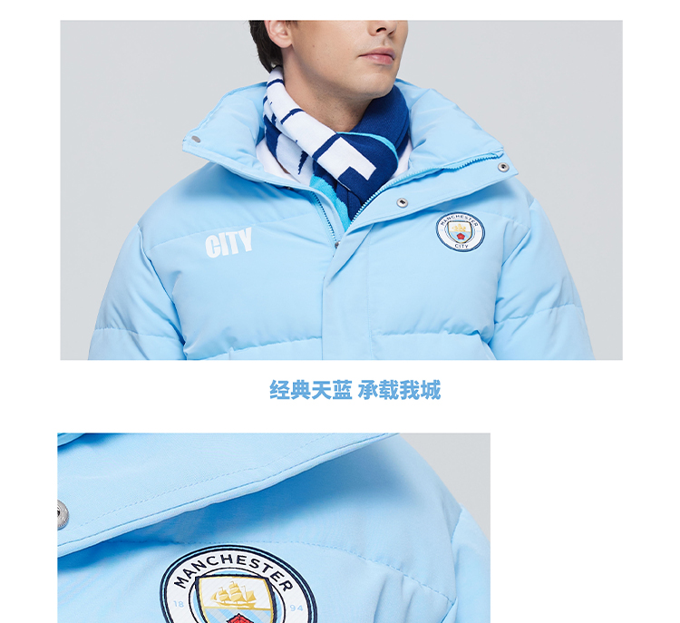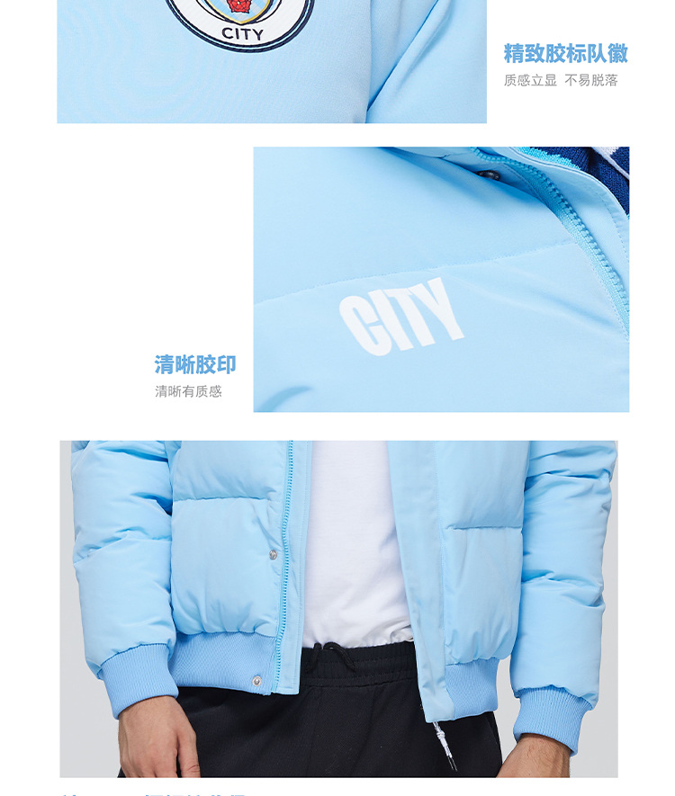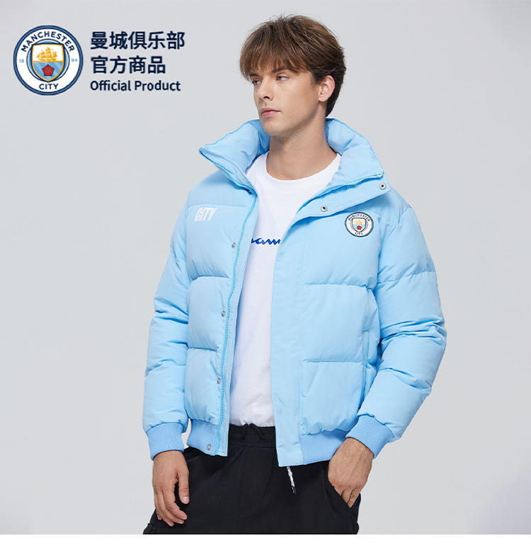 【官方正版】曼城俱乐部 | 胶印队徽运动休闲保暖浅蓝城民棉服