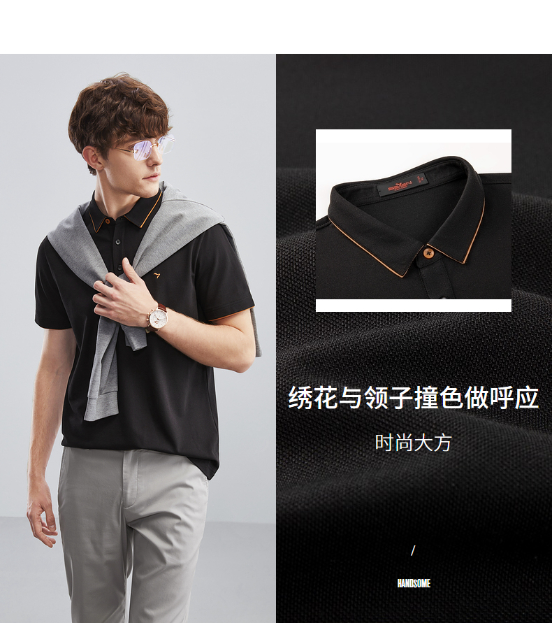 【特价】柒牌polo衫男士夏季薄款商务青年休闲百搭翻领短袖多色T恤衫 124T70010