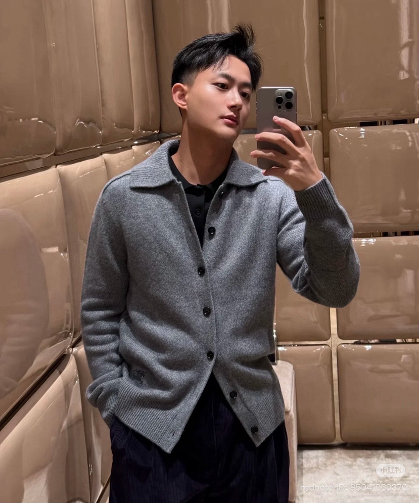 1117-4 老钱风 纯羊绒 儒雅气质 BBR 男士 翻领针织开衫 两色 老朱176/146穿xl宽松合适