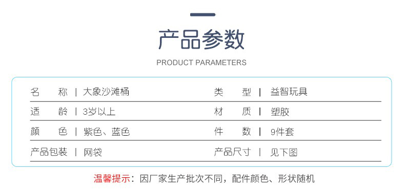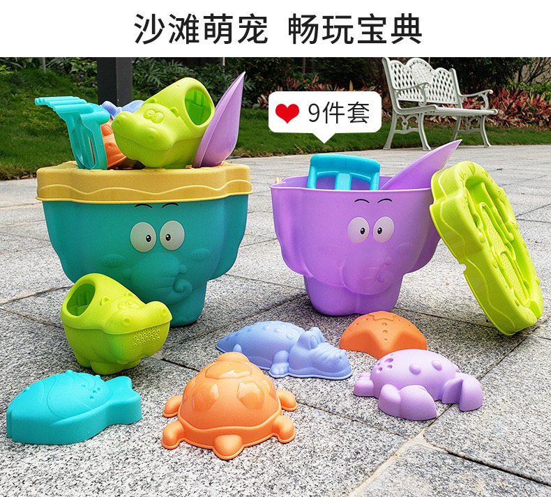 【博乐里】1005 大象沙滩玩具9件套 海边挖沙工具