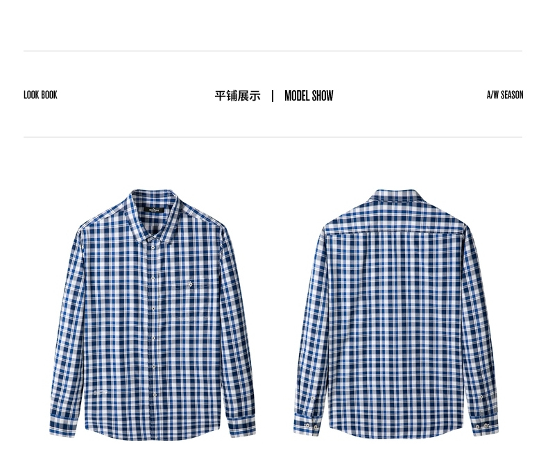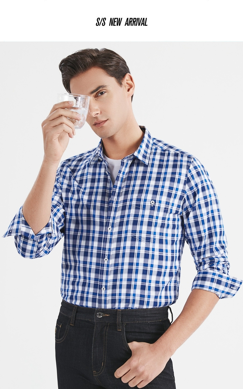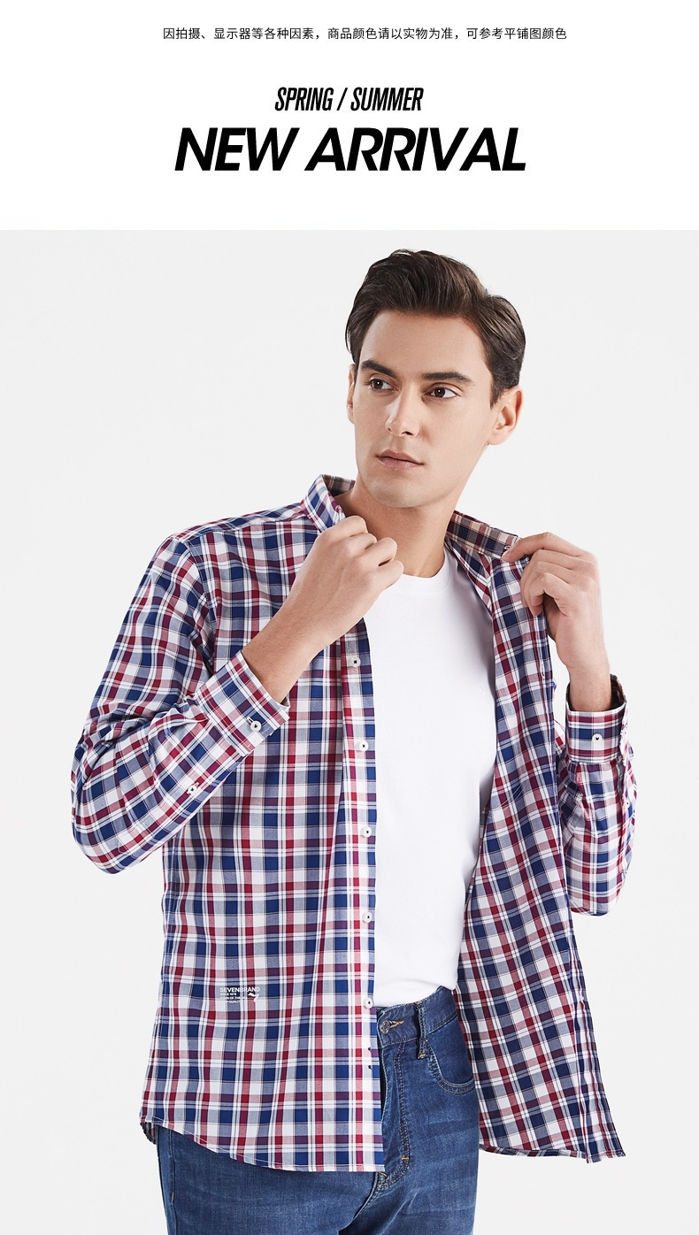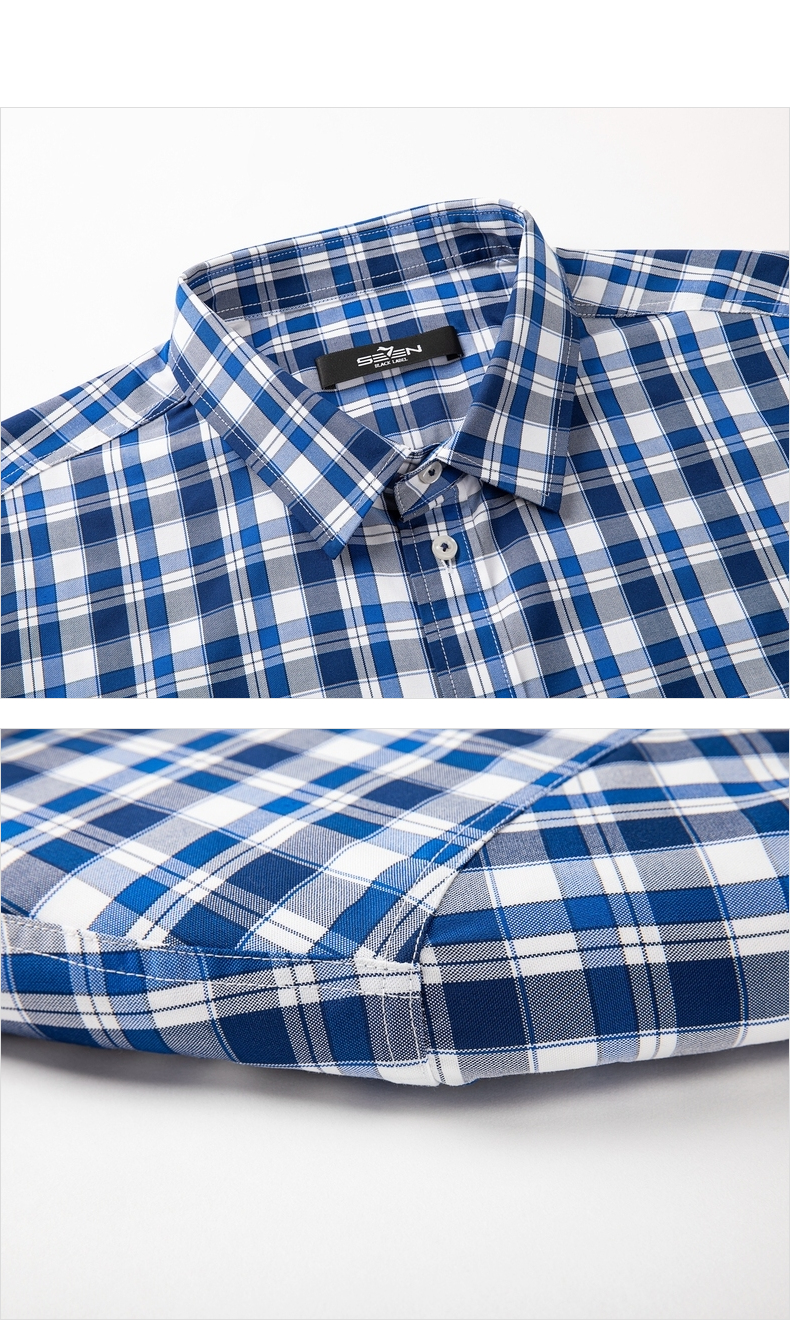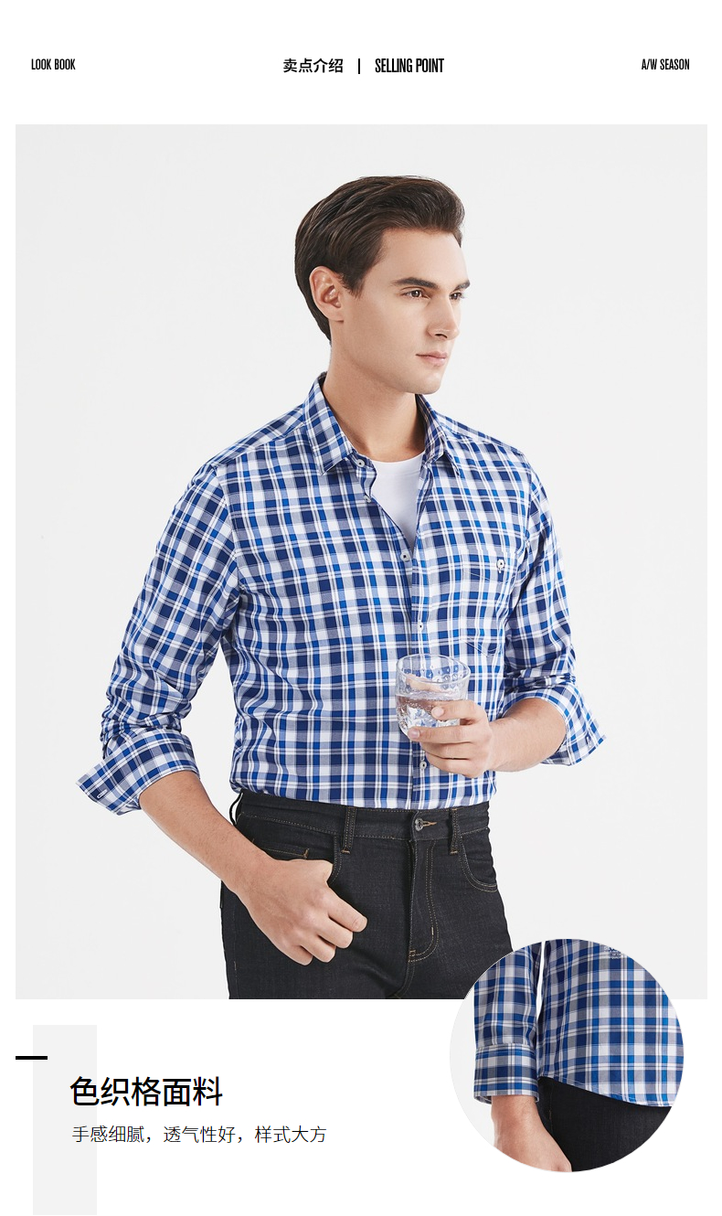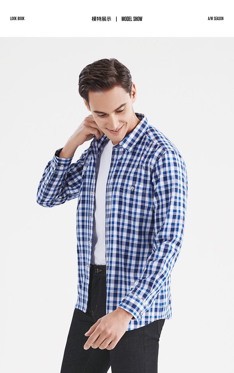 【特价】【竹纤维】柒牌男装长袖衬衫时尚潮流中青年百搭翻领格子贴袋衬衣 122A70750