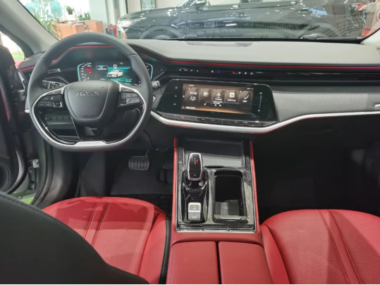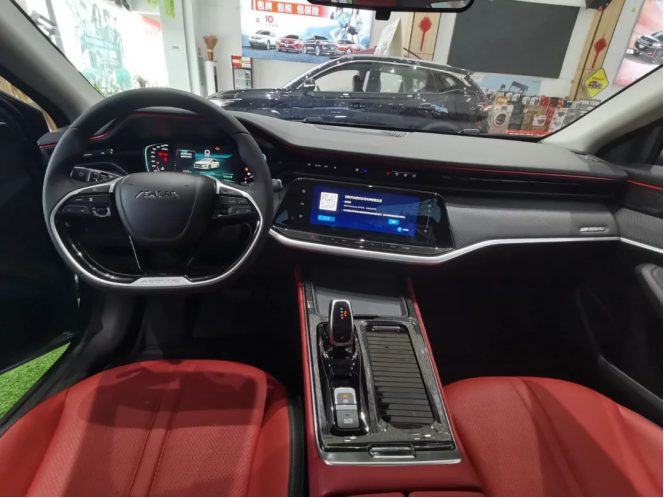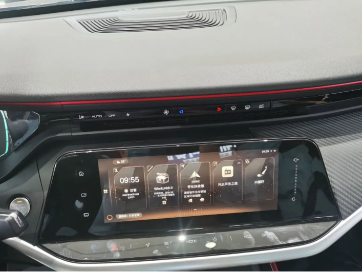 两块大屏尺寸都达到了主流的12.3英寸,但中控屏为3D曲面,成本更高。内部系统为最新的windlink,支持语音、互联,并且空调出风口的风向也可以在屏幕内滑动控制。下方没有手机无线充电,但储物面板设计了电源线的走线口,还是比较用心的。