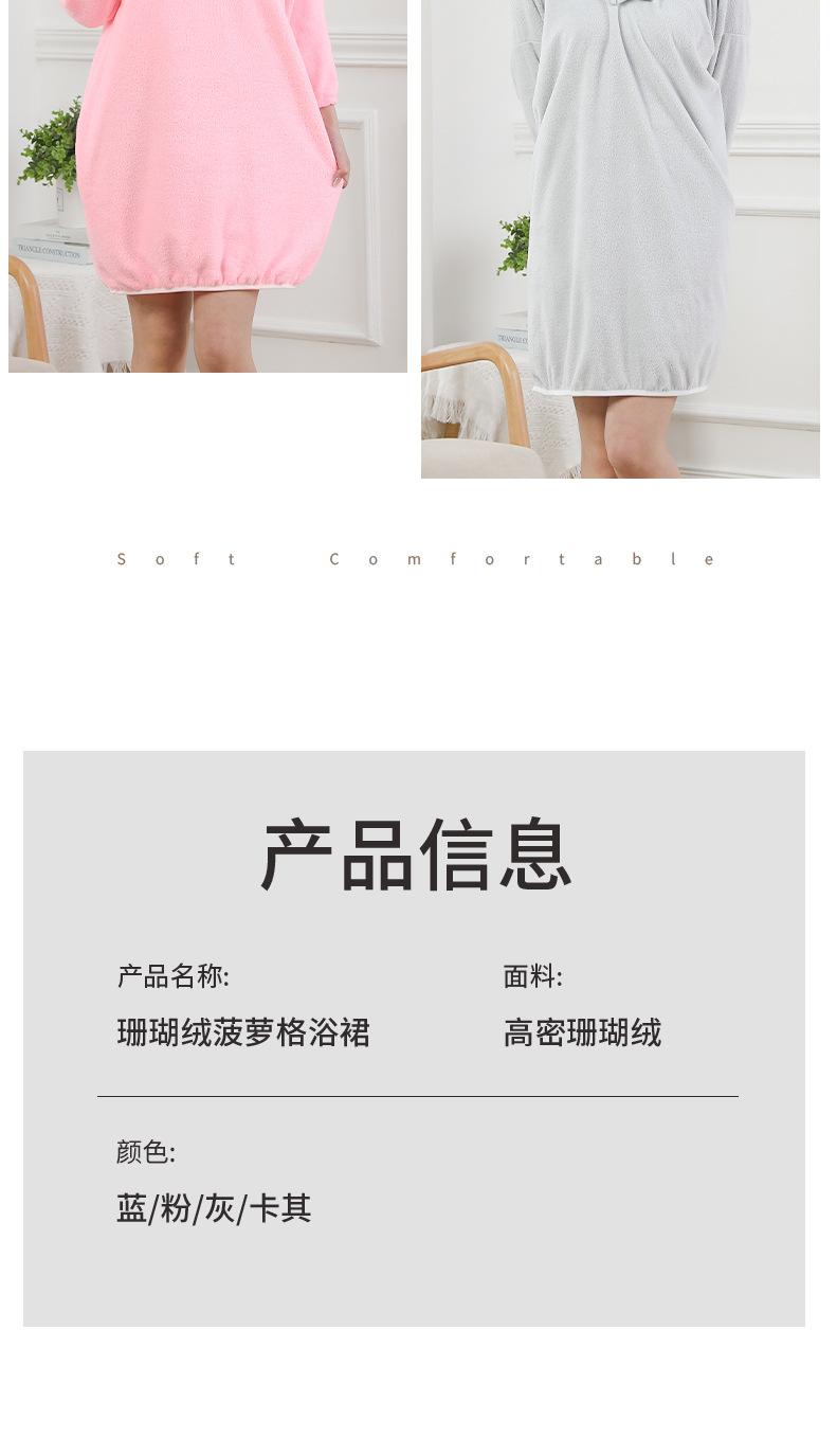 【可穿式浴巾!柔软亲肤】双层加厚,吸水更快,全面包裹,长款居家浴袍女士浴巾珊瑚绒加厚家用连帽长袖浴裙。rc