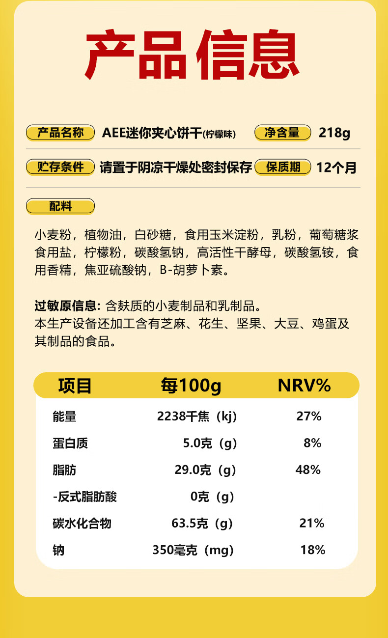 Aee迷你混合口味夹心饼干(牛奶味+巧克力味)218g