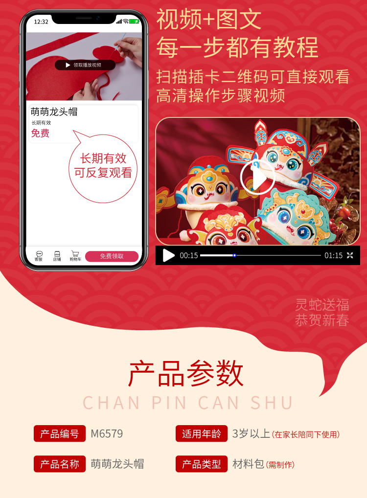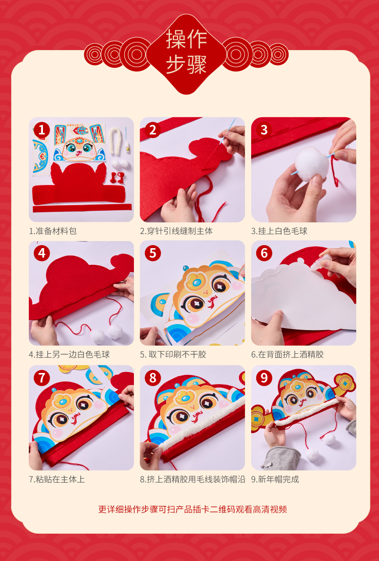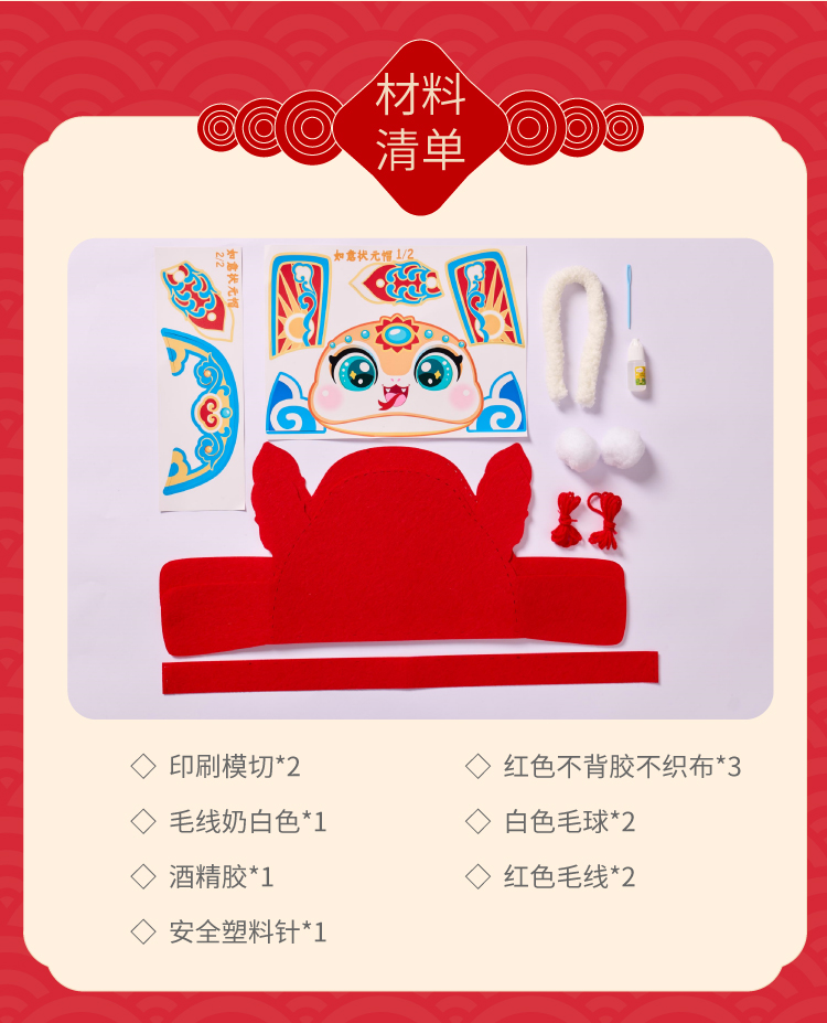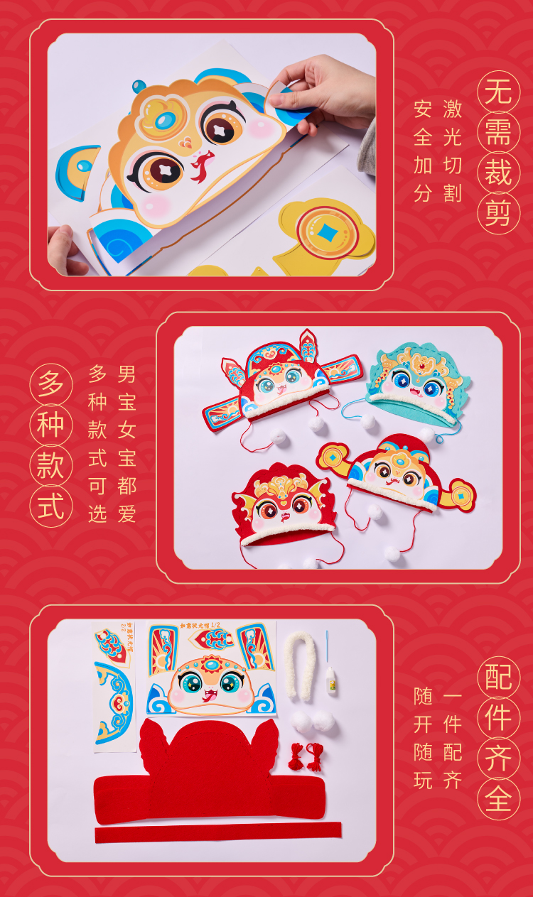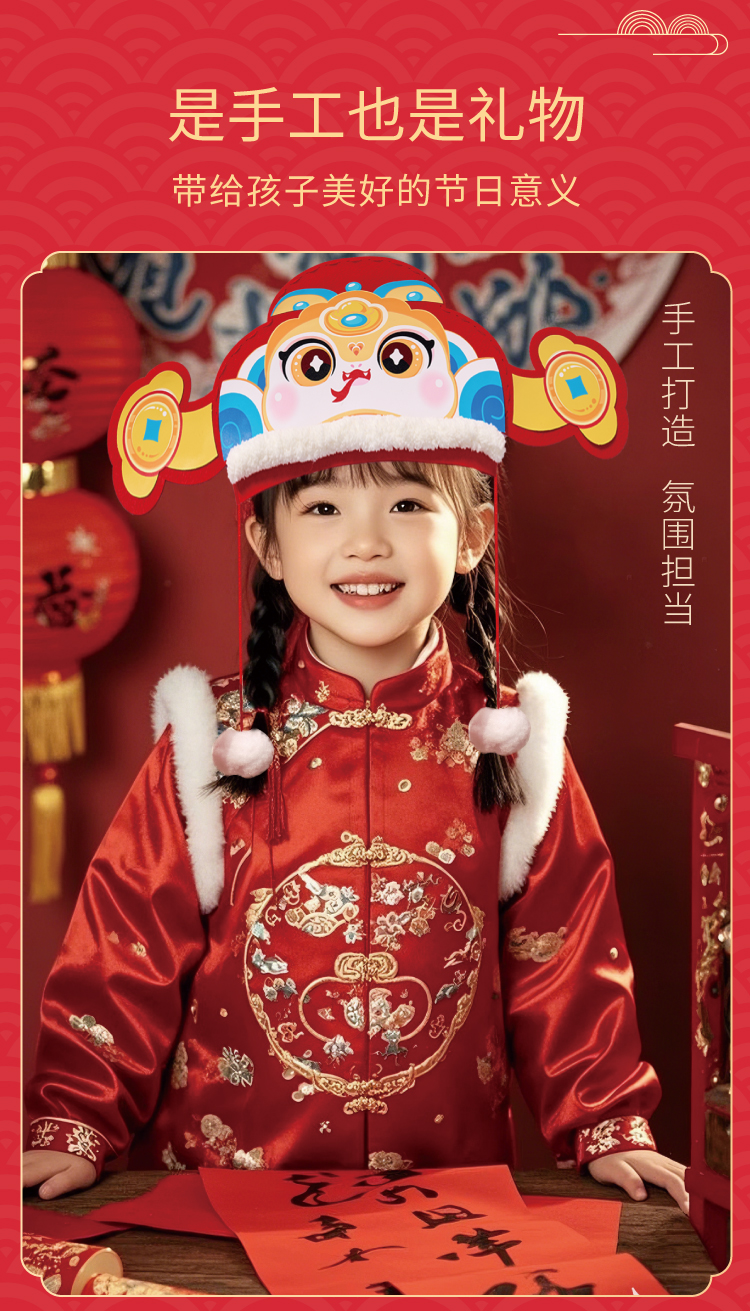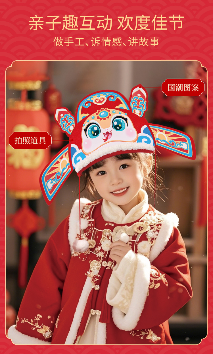 春节元旦蛇年国潮新年蛇头帽子手工diy儿童制作材料包幼儿园蛇帽