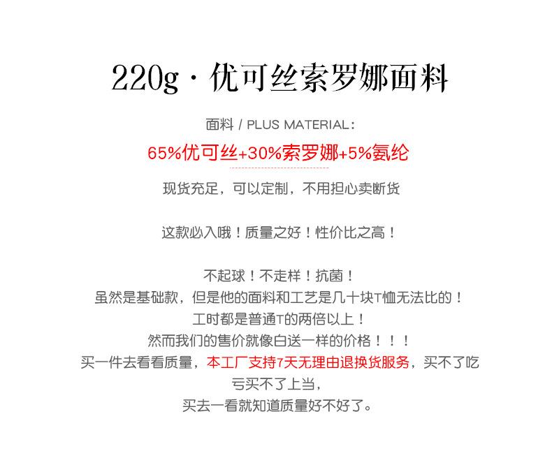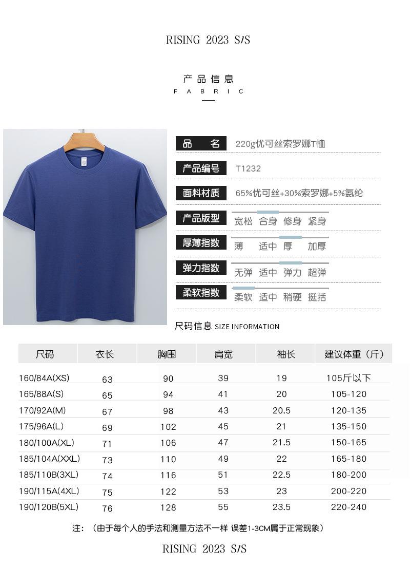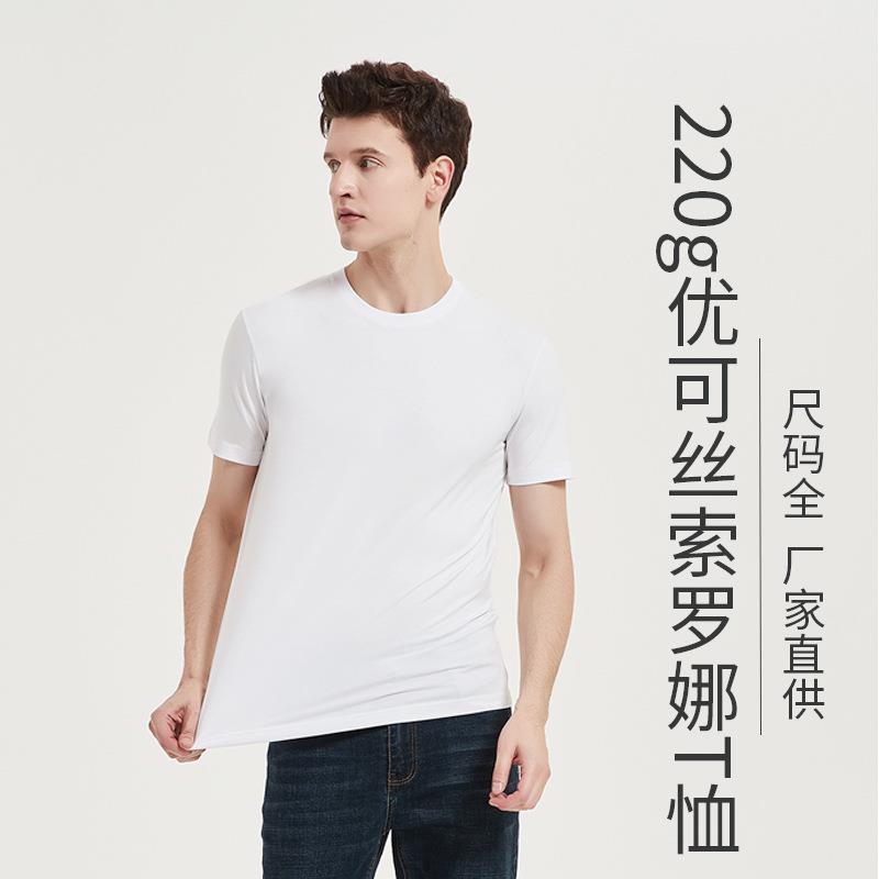 高端优可丝索罗娜t恤男半袖220g青年莫代尔t恤女圆领短袖男士t恤