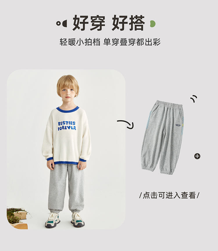fx-【速干抗菌】咕噜日记儿童弯刀裤2025新款男女童休闲卫裤轻量长裤PQK2516