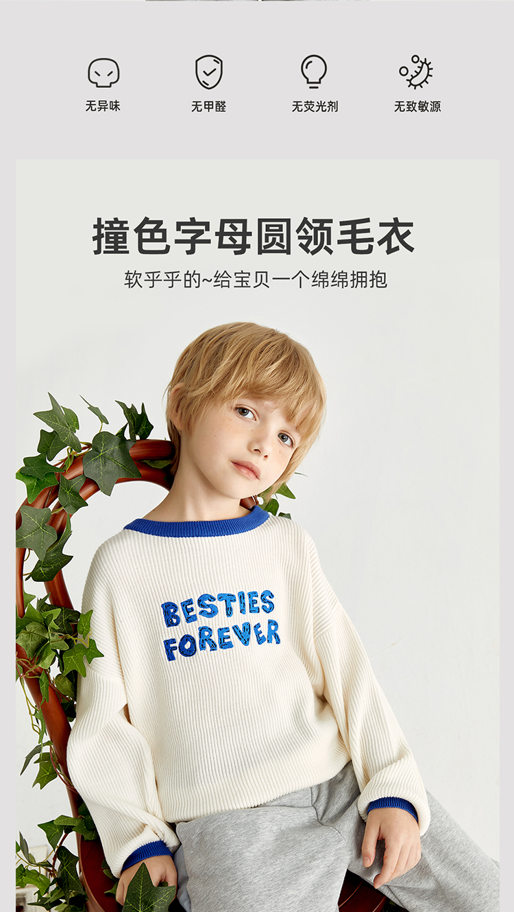【绵软舒适 抗起球】时尚字母圆领毛衣PCMY2305