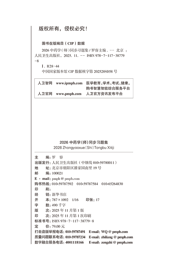 2026中药学(师)同步习题集 全国卫生专业技术资格考试习题集丛书 罗容 适用专业中药学(师)代码202 9787117387798人民卫生出版社