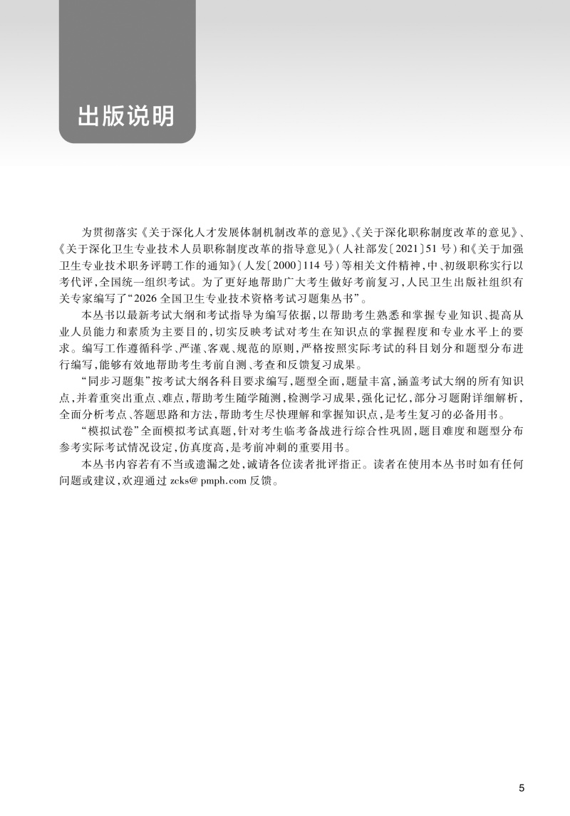 本书为2026年版“全国卫生专业技术资格考试习题集丛书”中医药类品种之一,以新考试大纲和考试专家委员会编写的“考试指导”为编写依据,针对考试大纲各科目有针对性地编写练习题,题型全面,题量丰富,涵盖考试大纲的所有知识点,并着重突出重点、难点,帮助考生随学随测,检测学习效果,强化记忆。部分习题附详细解析,全面分析考点、答题思路和方法,帮助考生尽快理解和掌握知识点,是考生复习强化的必备用书。
