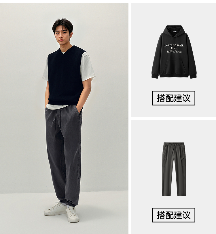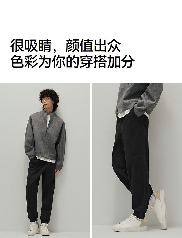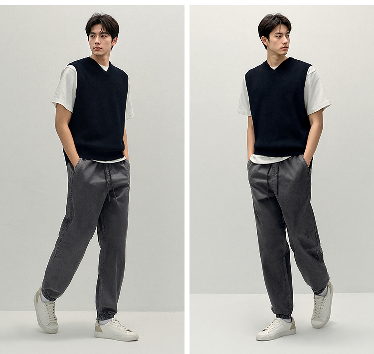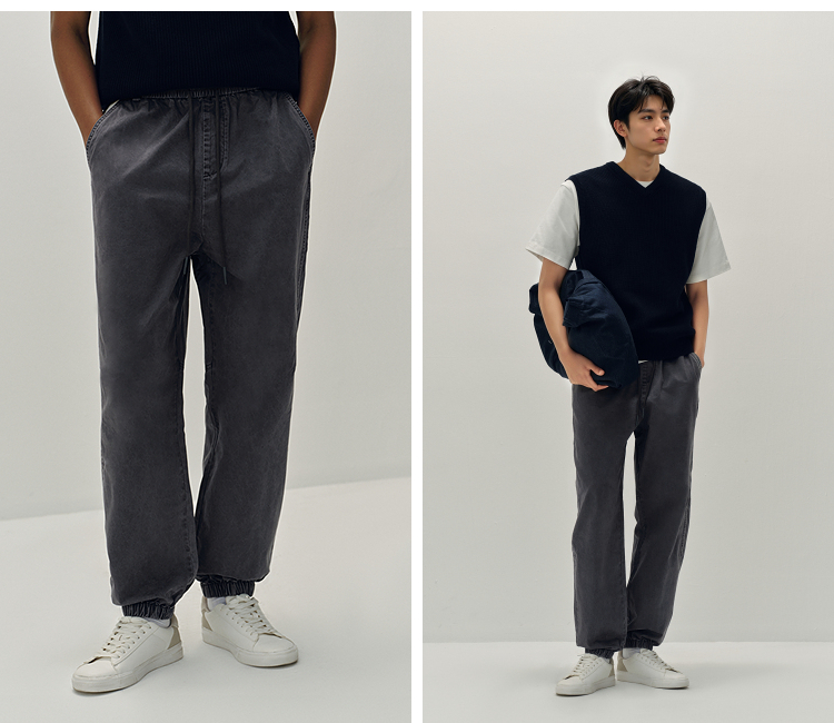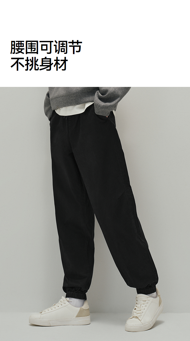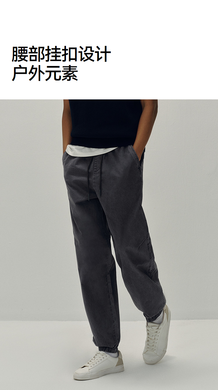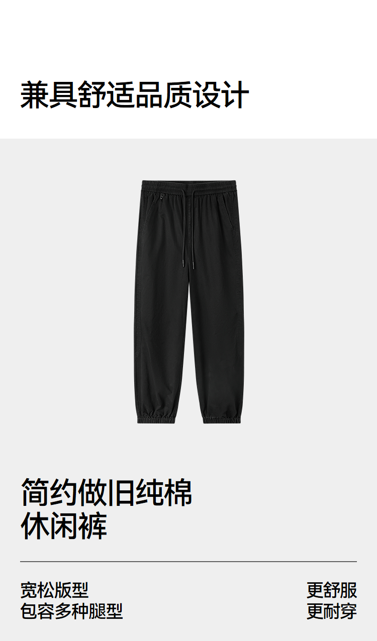森马休闲裤男纯棉宽松锥形裤做旧2025秋季新款松紧腰长裤基础百搭