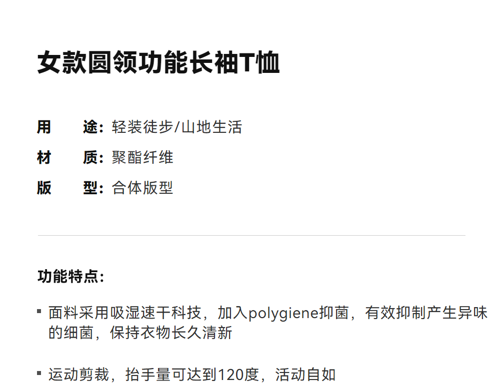 KAILAS凯乐石 户外运动 女款圆领功能长袖T恤 KG2437204【Z】