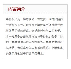 小学生的家长可能都有过帮孩子画手抄报的经历,无论南北方的小学,手抄报似乎成了家庭作业的一种常见形式。在孩子入学前我也不理解为什么这么多家长对手抄报如此热衷,当孩子上了一年级以后,我才真正亲身体会到了原来在小学校园里手抄报这么重要、这么常见。不仅是学校和班级的宣传栏要用到手抄报,家庭作业也经常是以手抄报的形式出现。为了拯救枯竭的绘画想象力,不得不去搜索手抄报的资源和作品。可是网上搜来的作品往往过于简单粗糙,某些书上搜来的作品虽然精美却过于复杂难以模仿。 n这本手抄书图书,征求了大量小读者和家长的意见,作者的绘制过程中也进行了多次改进,从版面布局到某个标题字,怎样画才漂亮,怎样写才不能误导学生写错,作者可谓费尽了心思。书中的100张手秒报范例可以说每一幅都是精品佳作,是在重复画了无数次、无数张之后精心筛选出来的。 n为了让孩子们不止是简单地模仿范例,书中除了列举了100张手抄报实例外,对手抄报的设计技巧也进行了讲解,从笔材到纸张,从配色到构图,从花边到插图,每一部分内容都有精彩的讲解。授人以鱼不如授人以渔,正是本着这样的态度,作者创作了这样一本内容全面又丰富的手抄报图书,相信它可以满足不同孩子和家长的不同需求。 n |