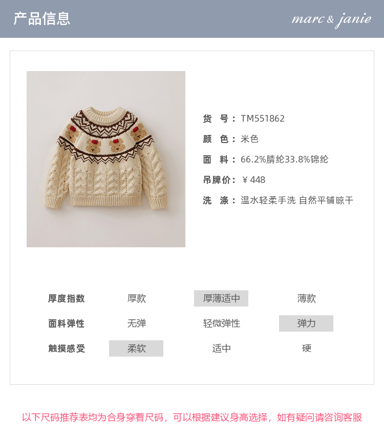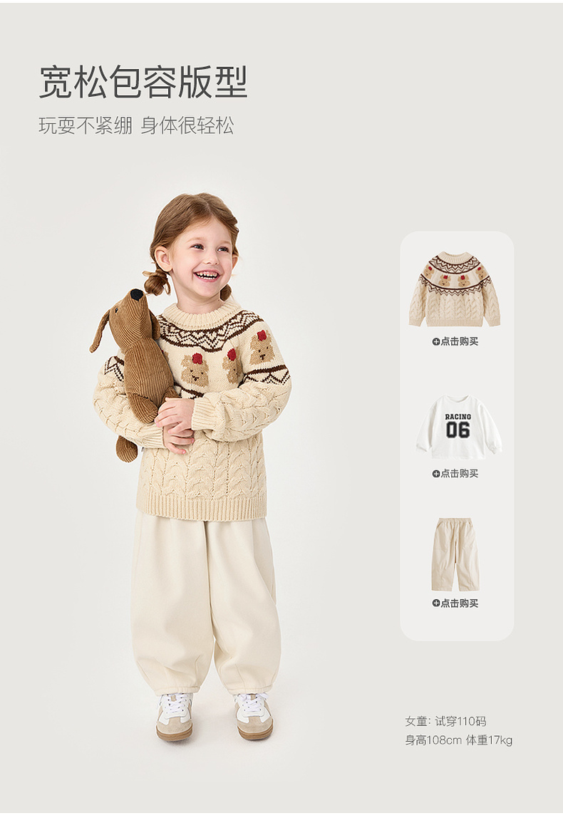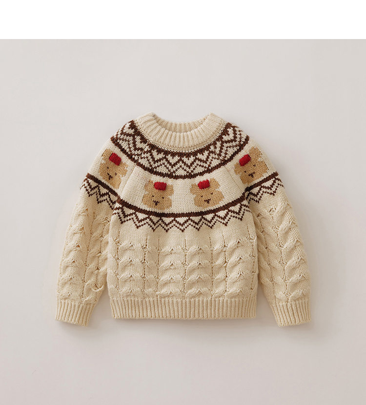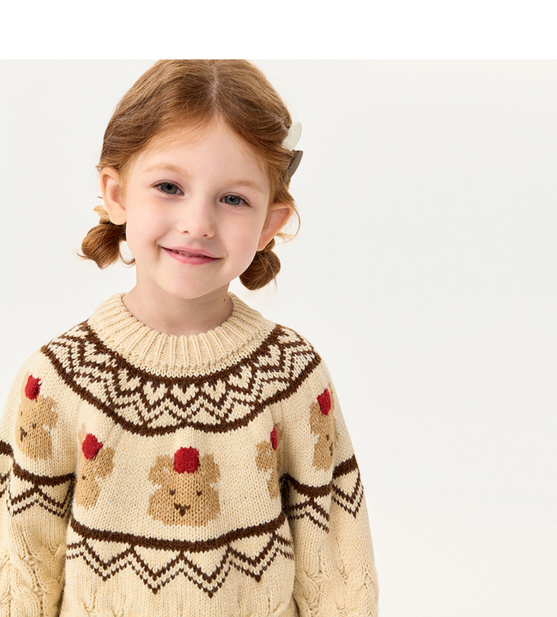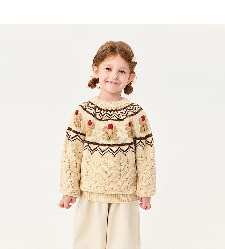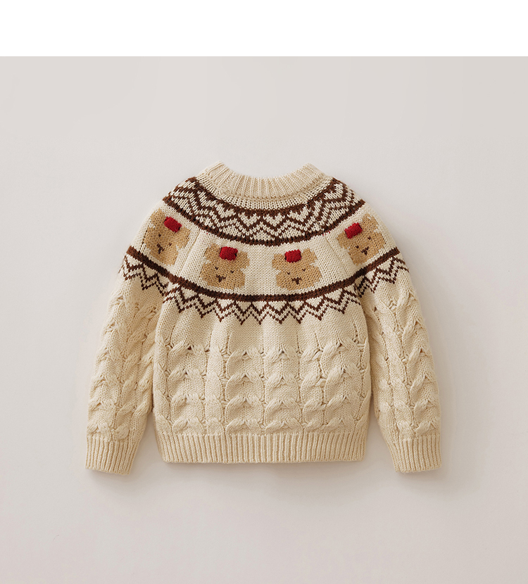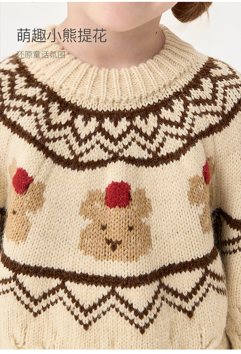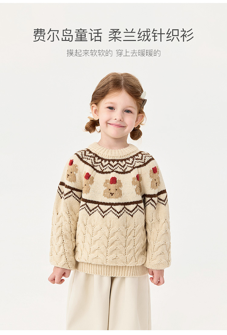 【柔兰绒】马克珍妮男童费尔岛风小熊针织毛衣2025秋冬新款551862