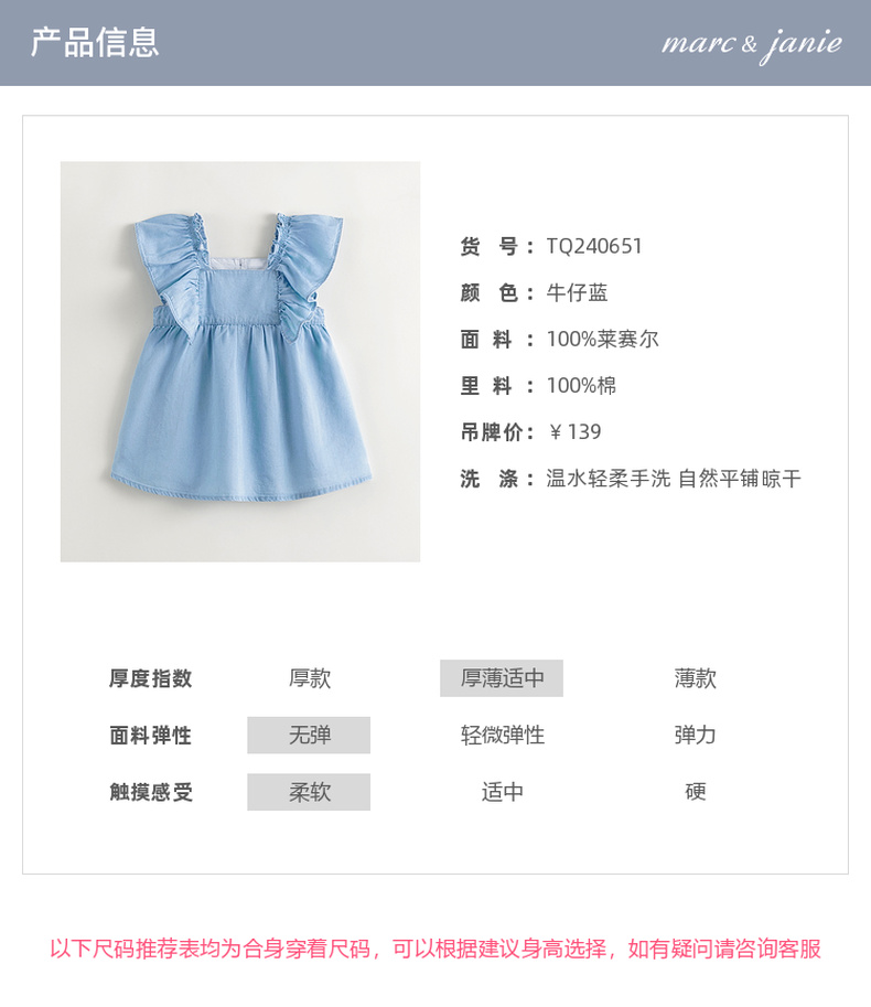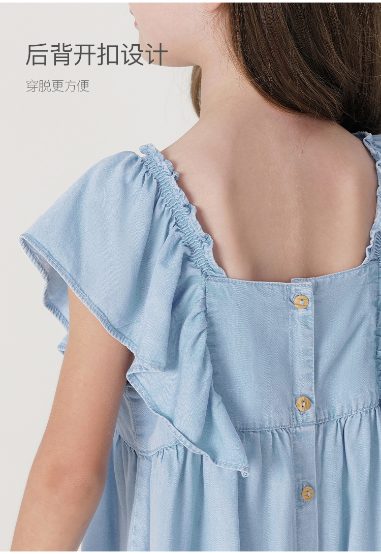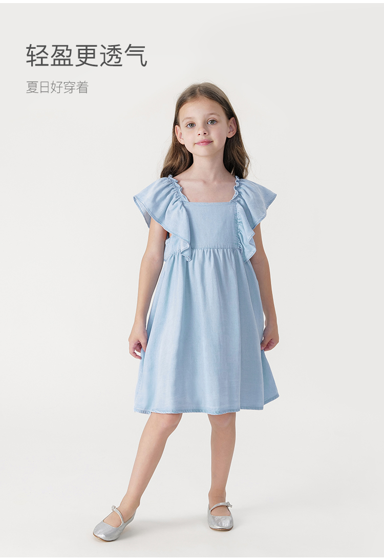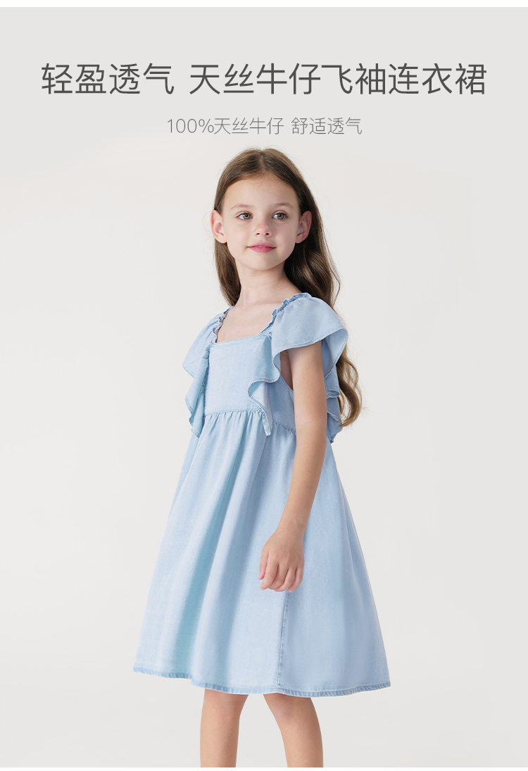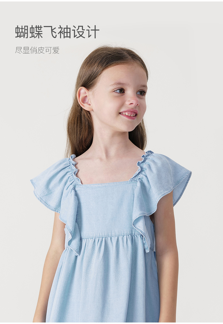 马克珍妮女童凉感透气天丝飞袖连衣裙背心裙儿童裙子夏装240651
