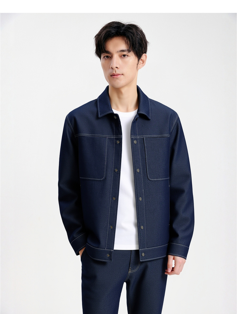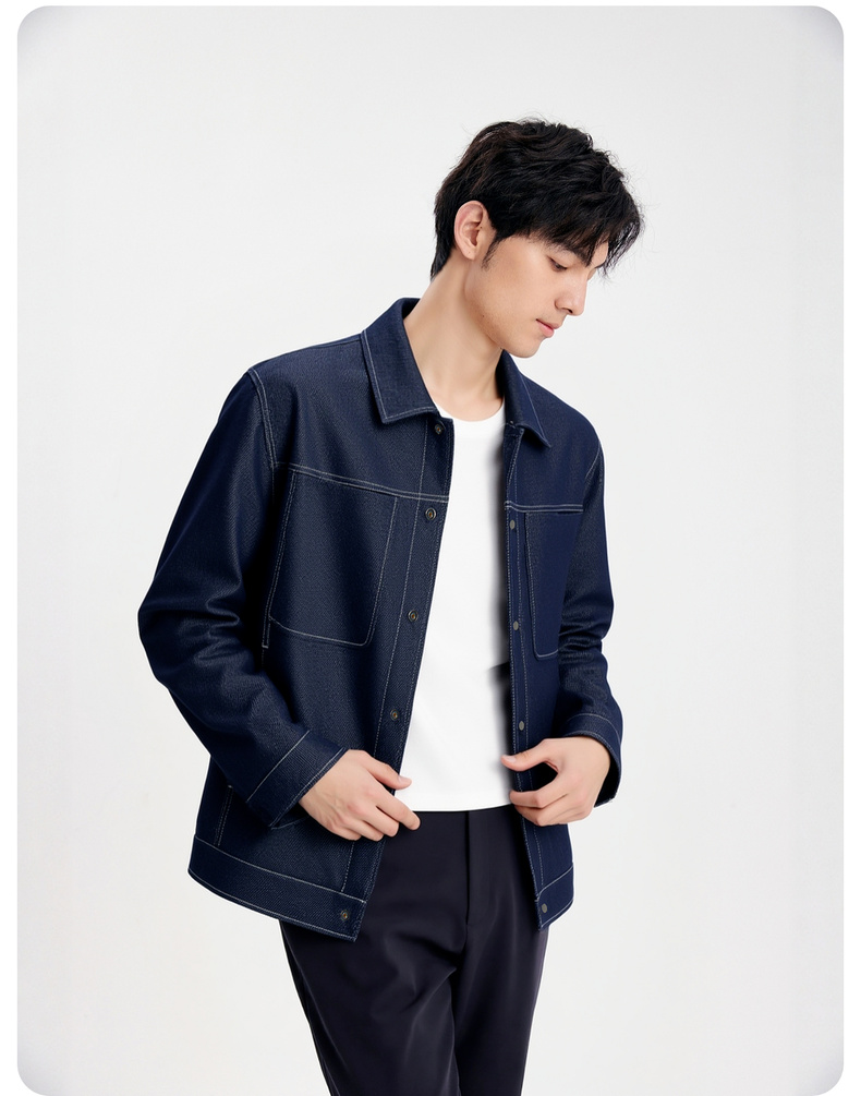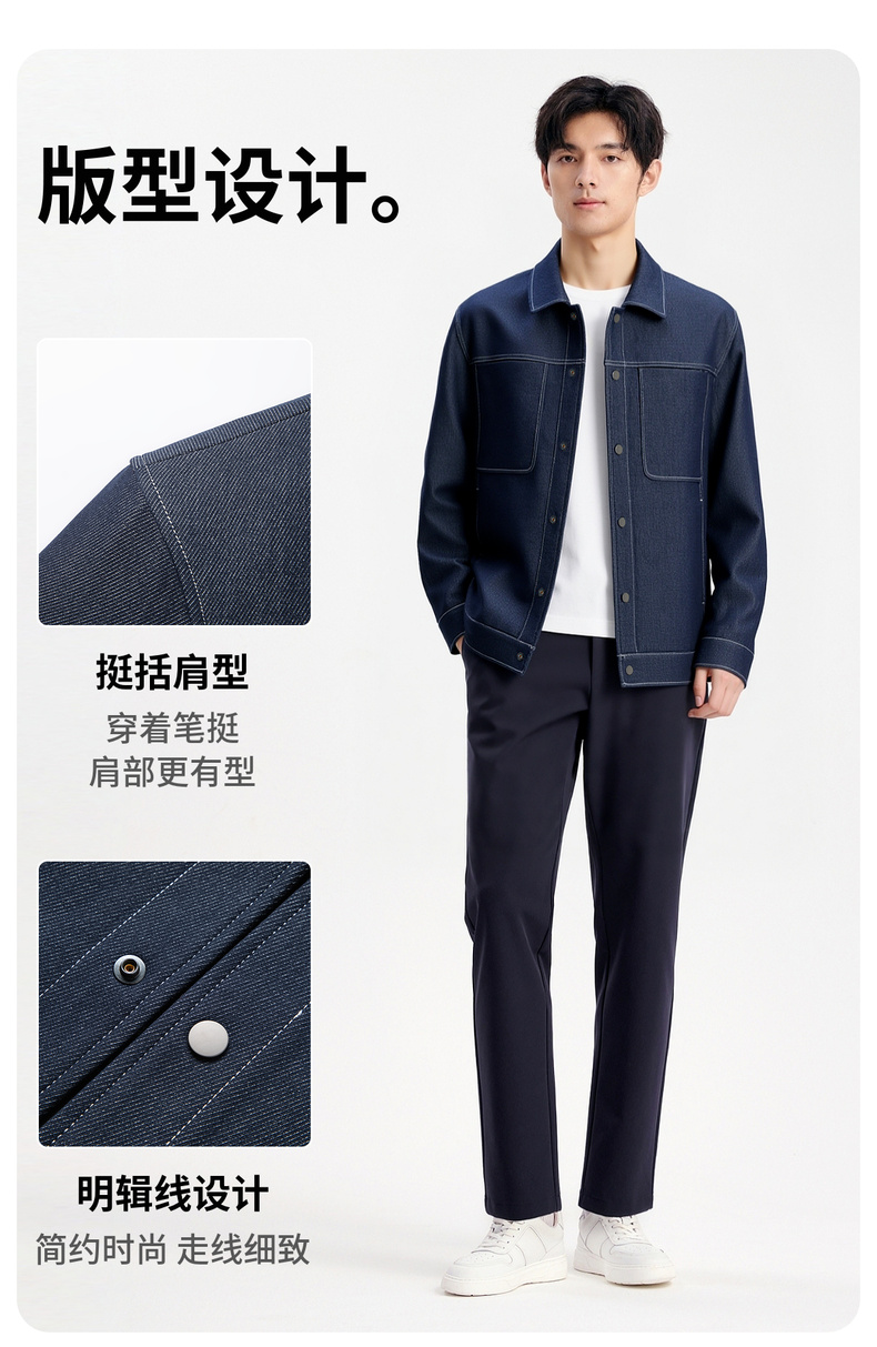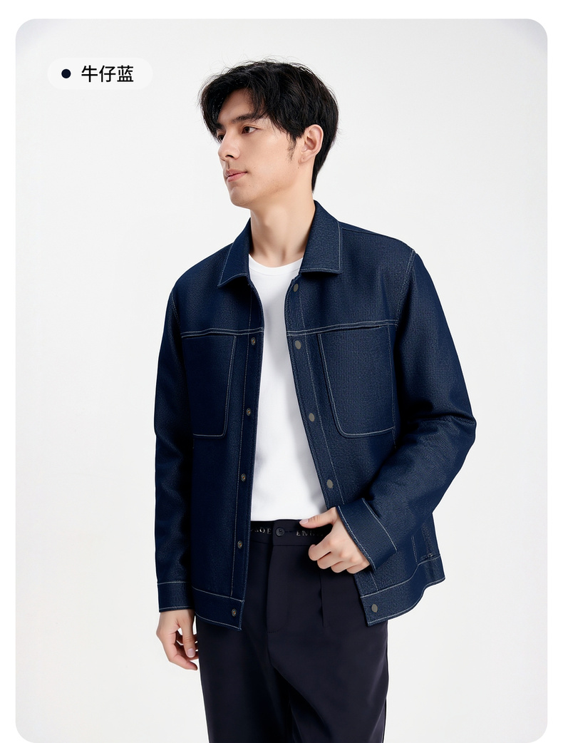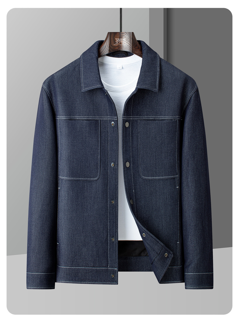 圣得西男士工装牛仔翻领夹克2025年秋季新款时尚潮流休闲外套