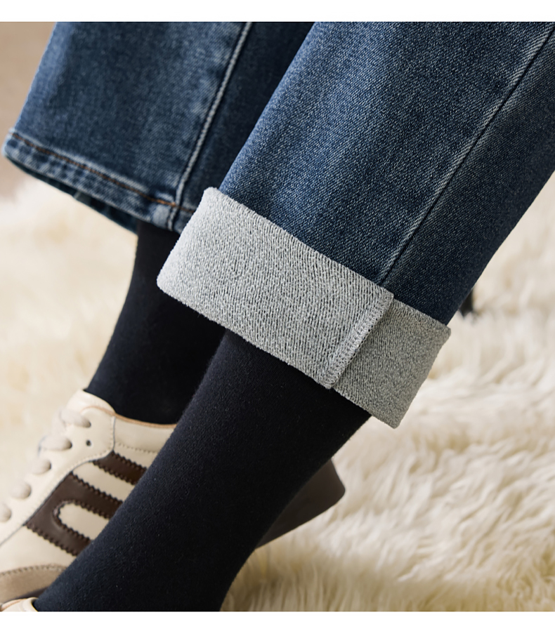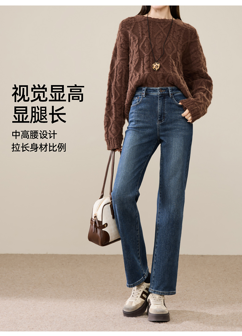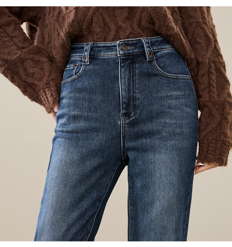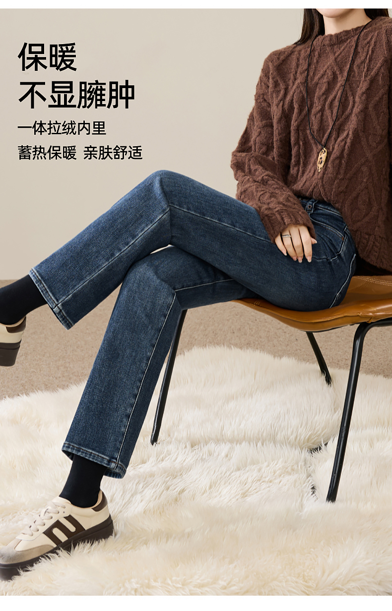 【加绒-修容直筒裤】逸阳冬保暖拉绒修饰腿型、小个子牛仔裤0322R