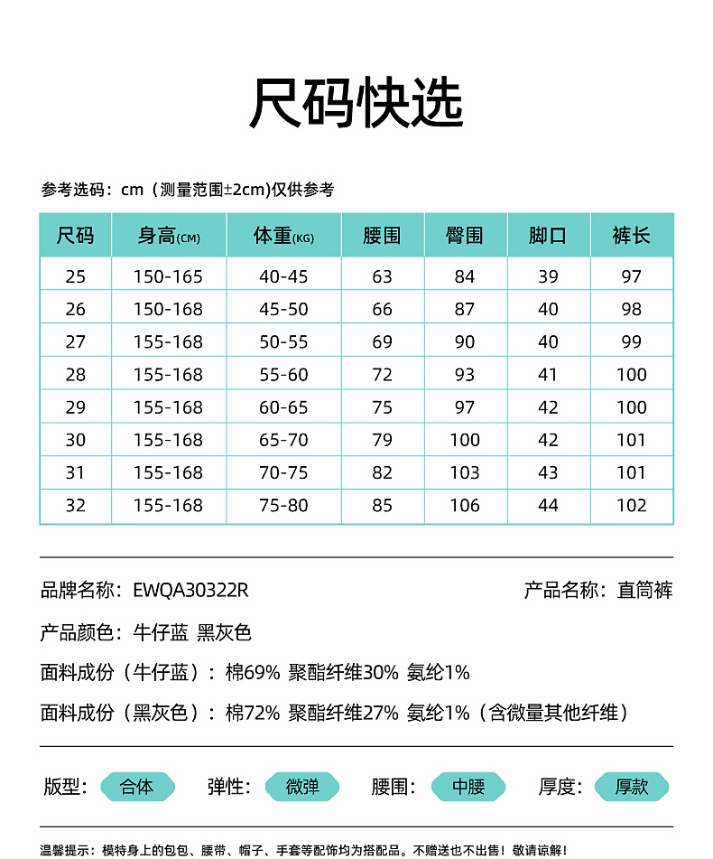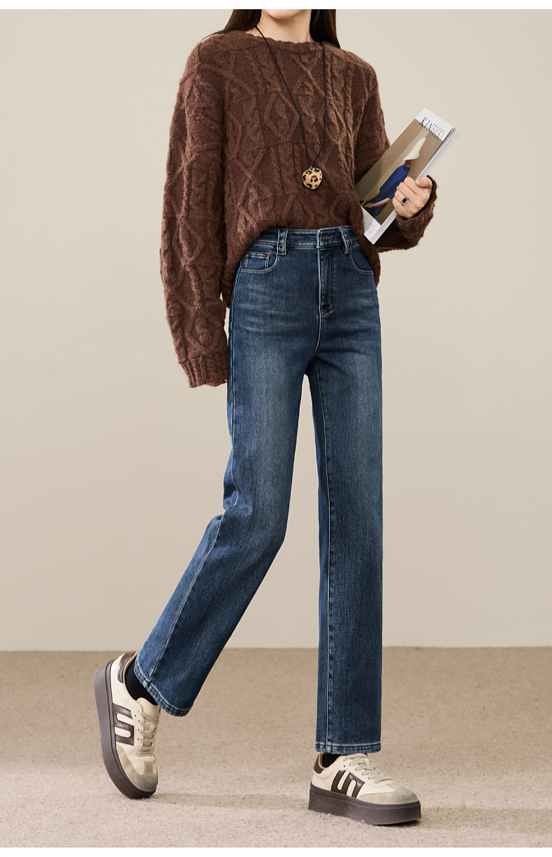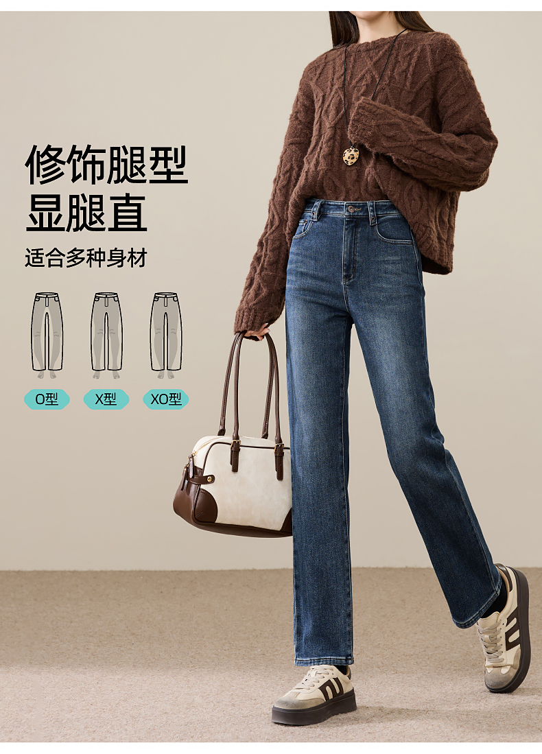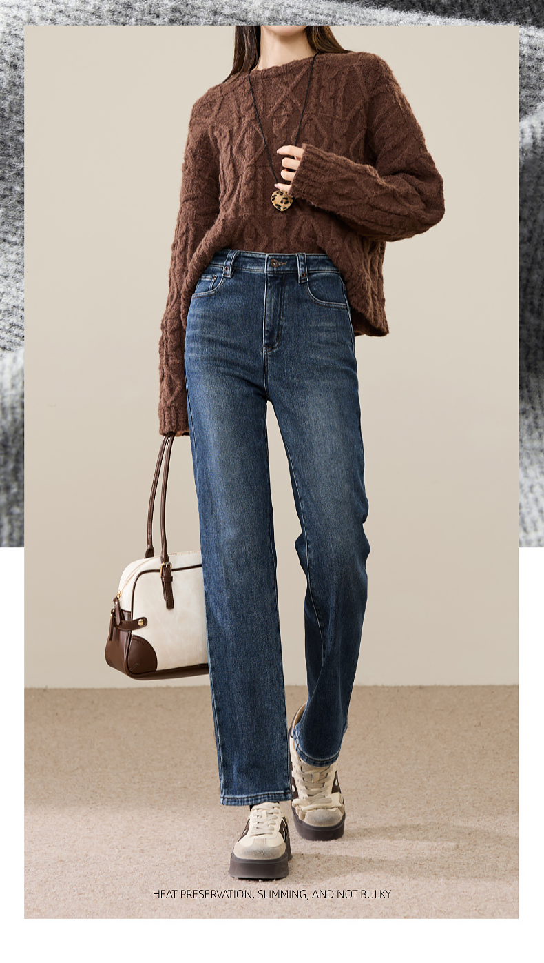 【加绒-修容直筒裤】逸阳冬保暖拉绒修饰腿型、小个子牛仔裤0322R