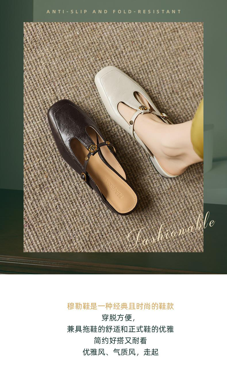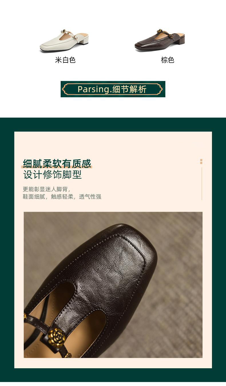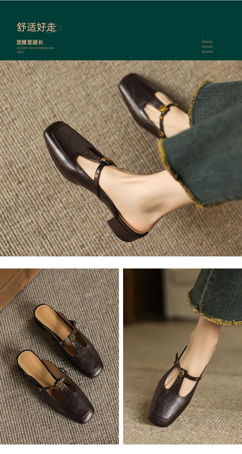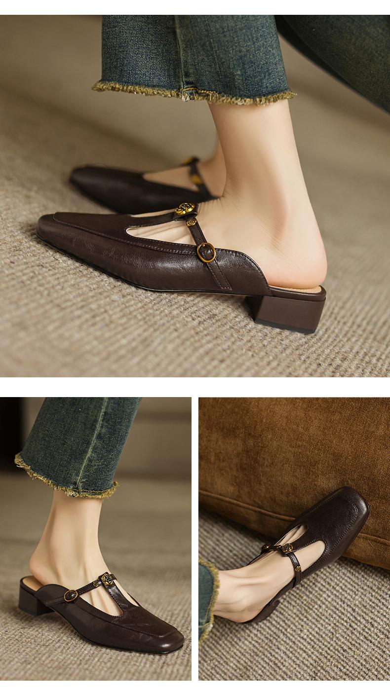 手工女鞋复古丁字扣包头穆勒鞋夏季外穿粗跟拖鞋软底软面3CM 商品图4