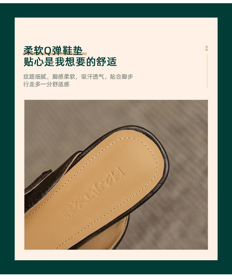 手工女鞋复古丁字扣包头穆勒鞋夏季外穿粗跟拖鞋软底软面3CM 商品图3