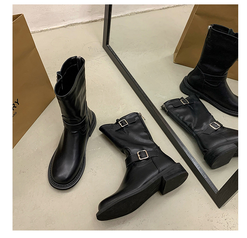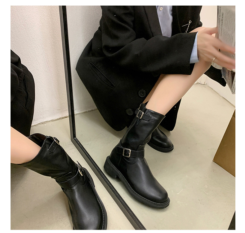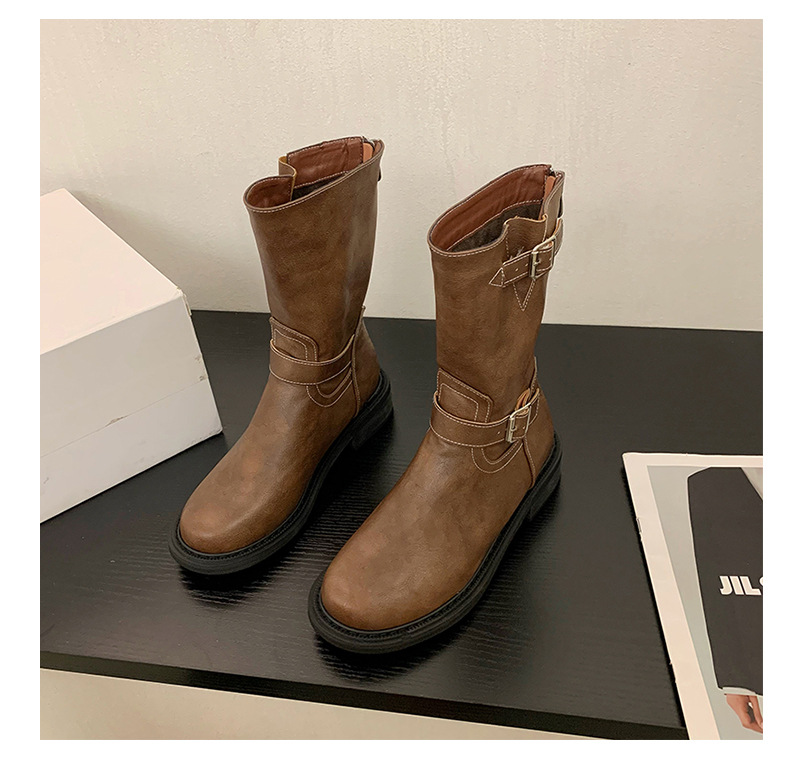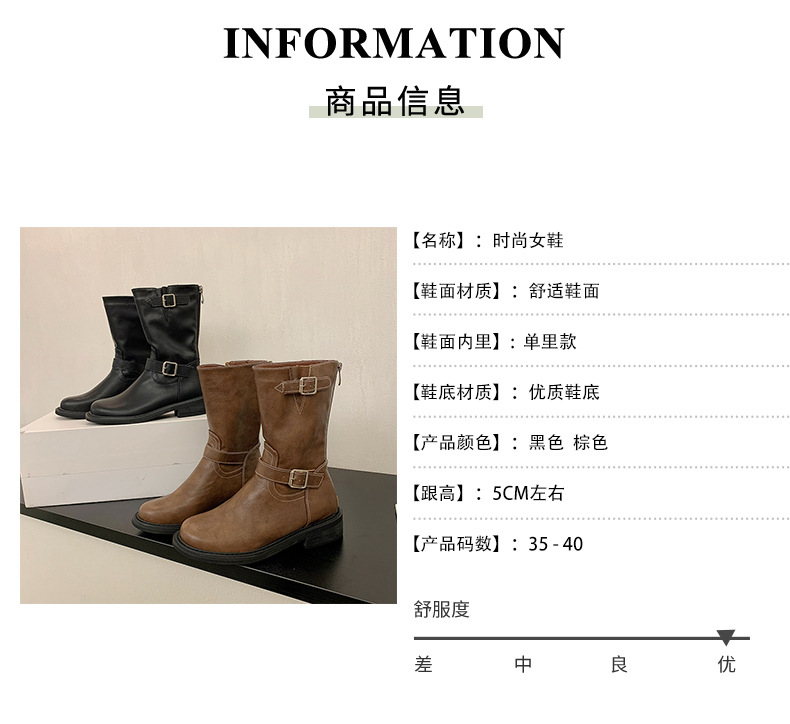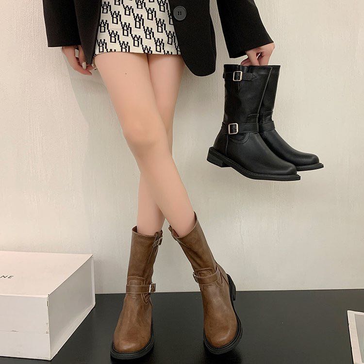 【YW】无忧购 粗跟时装靴秋季美拉德风中筒西部靴马丁靴女F55(截单后3-5天发货)