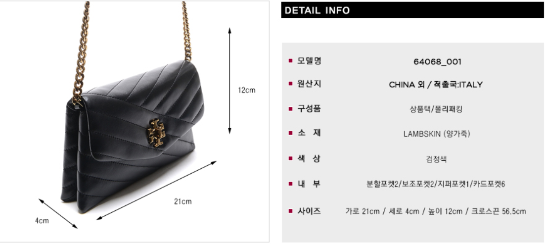 奥莱[Tori Burch] 20SS女士Kira雪佛龙链交叉包(64068_001_20S)JPY带授权招加盟代理