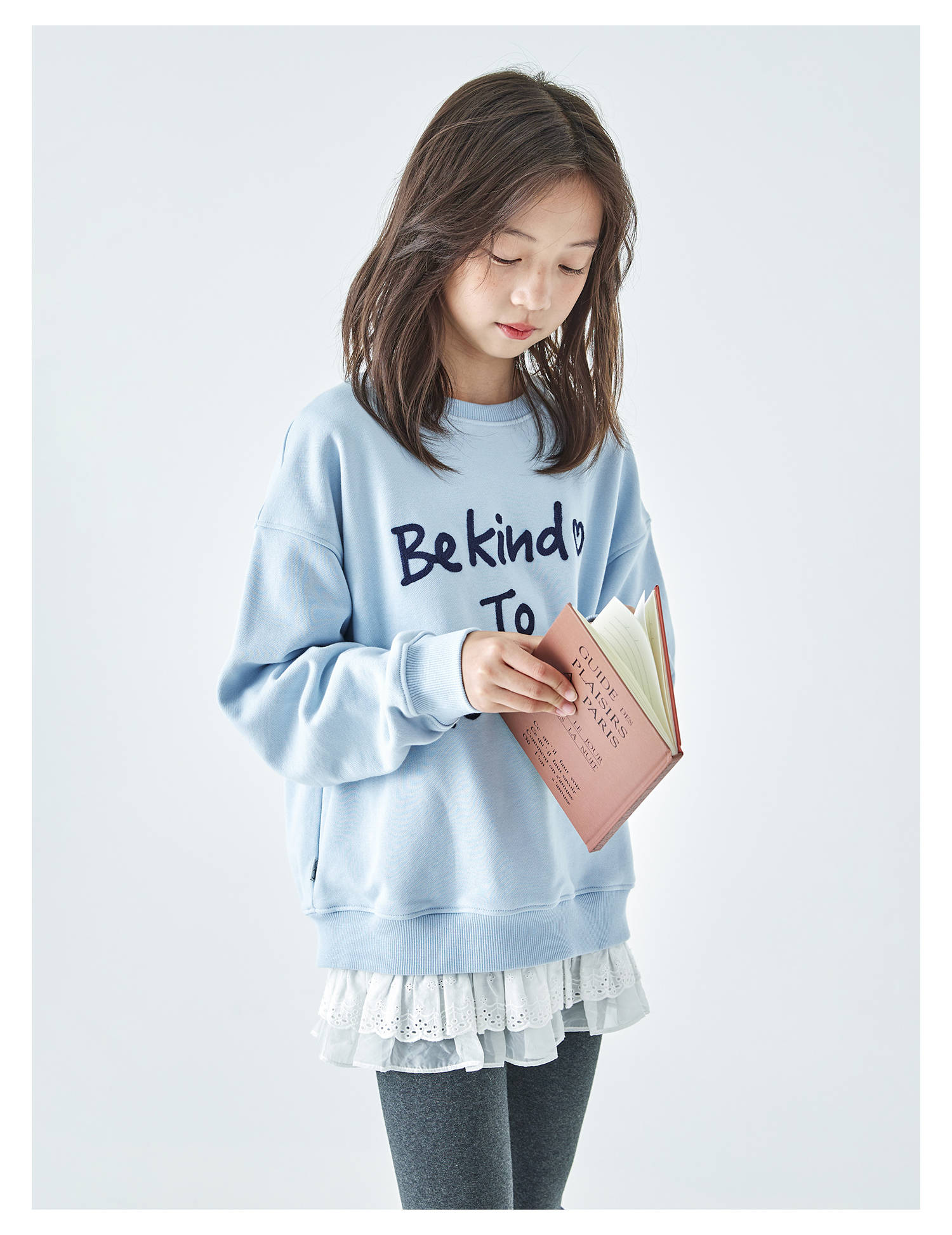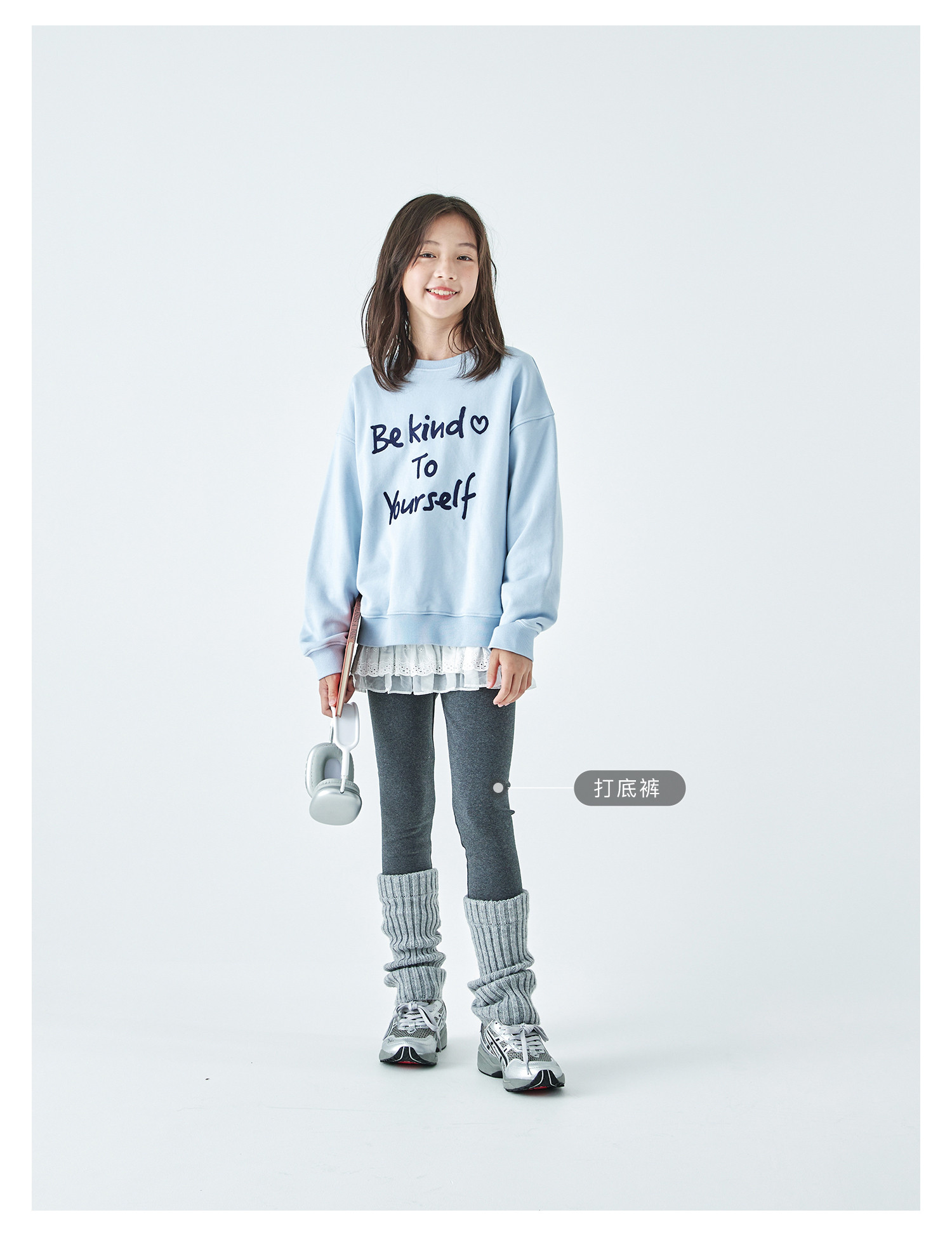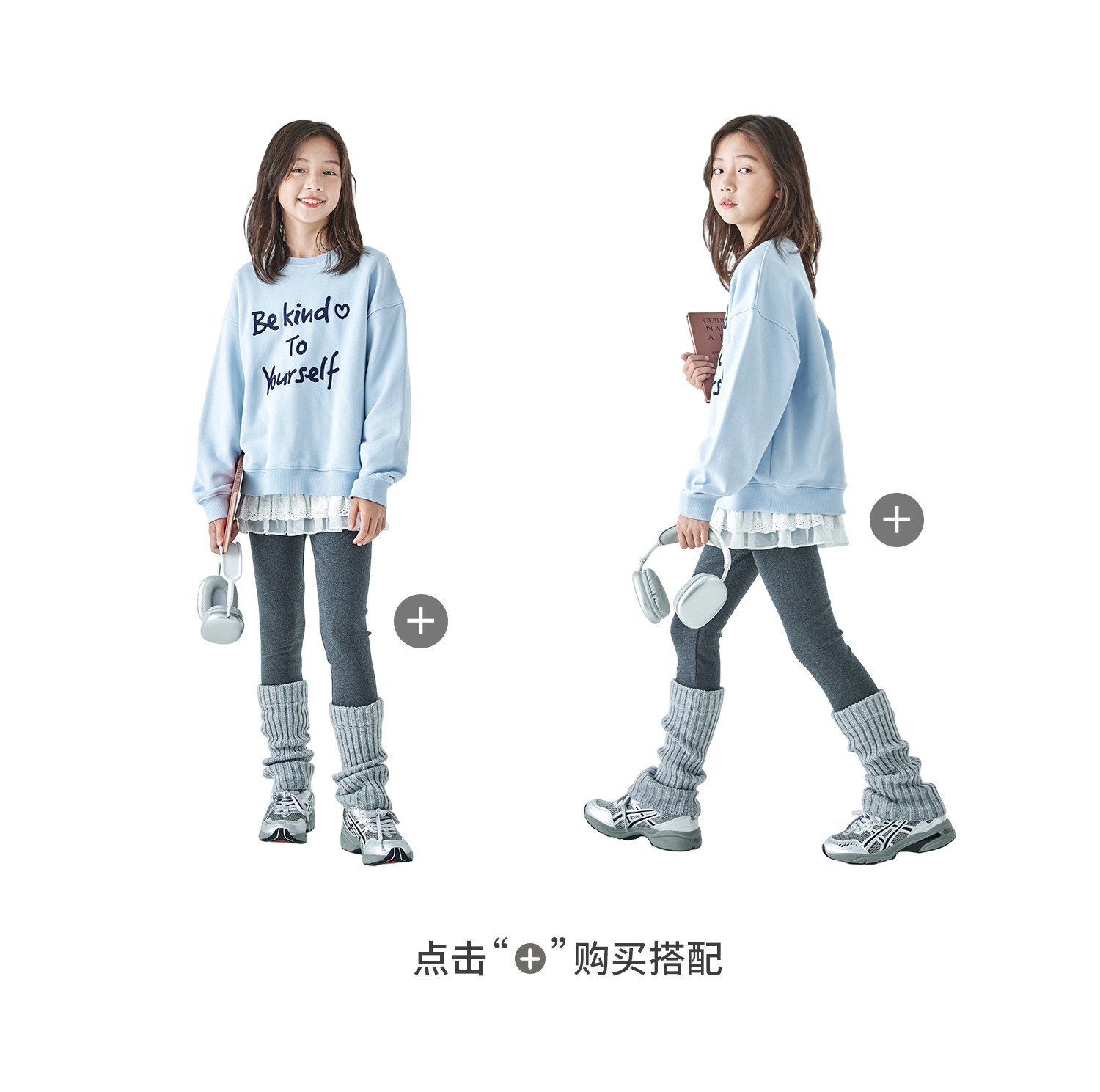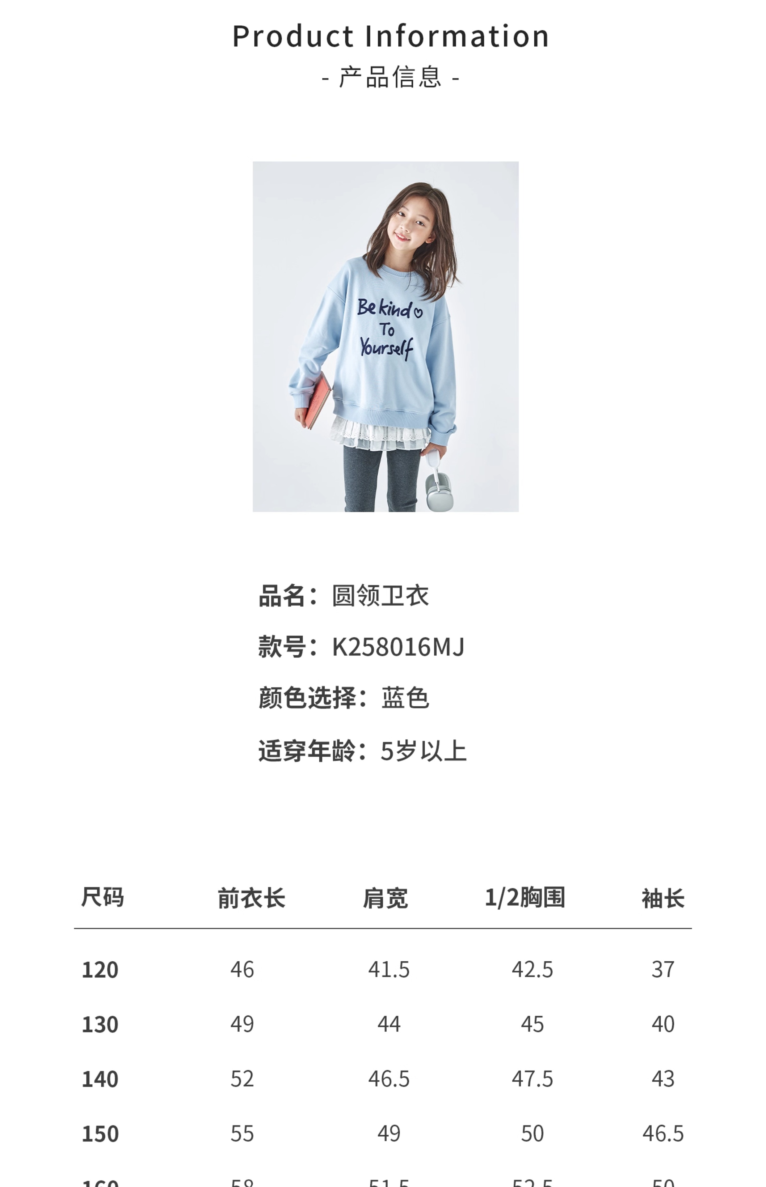 棵初2026春季新款亲子中大女童撞色圆领卫衣宽松简约字母印花上衣