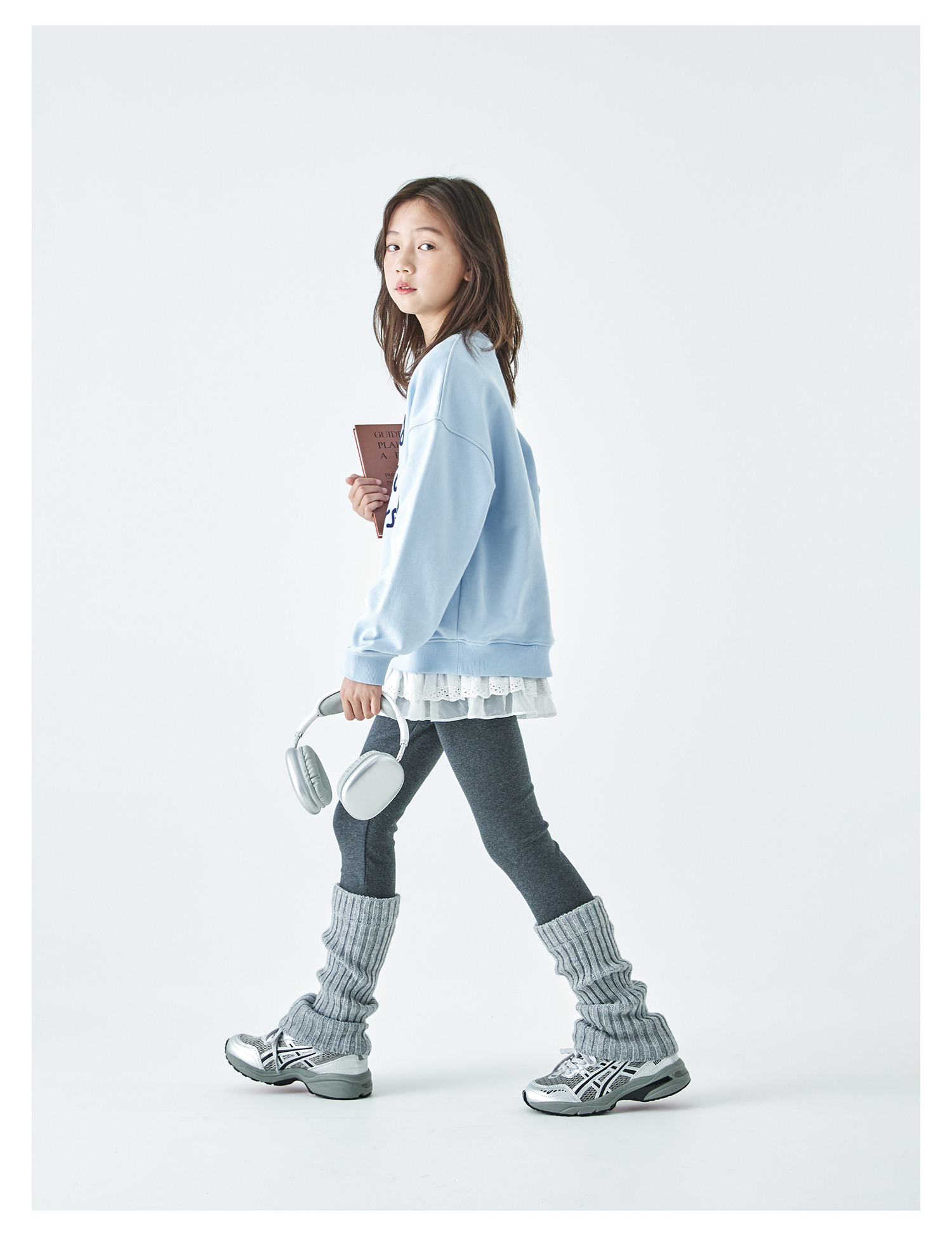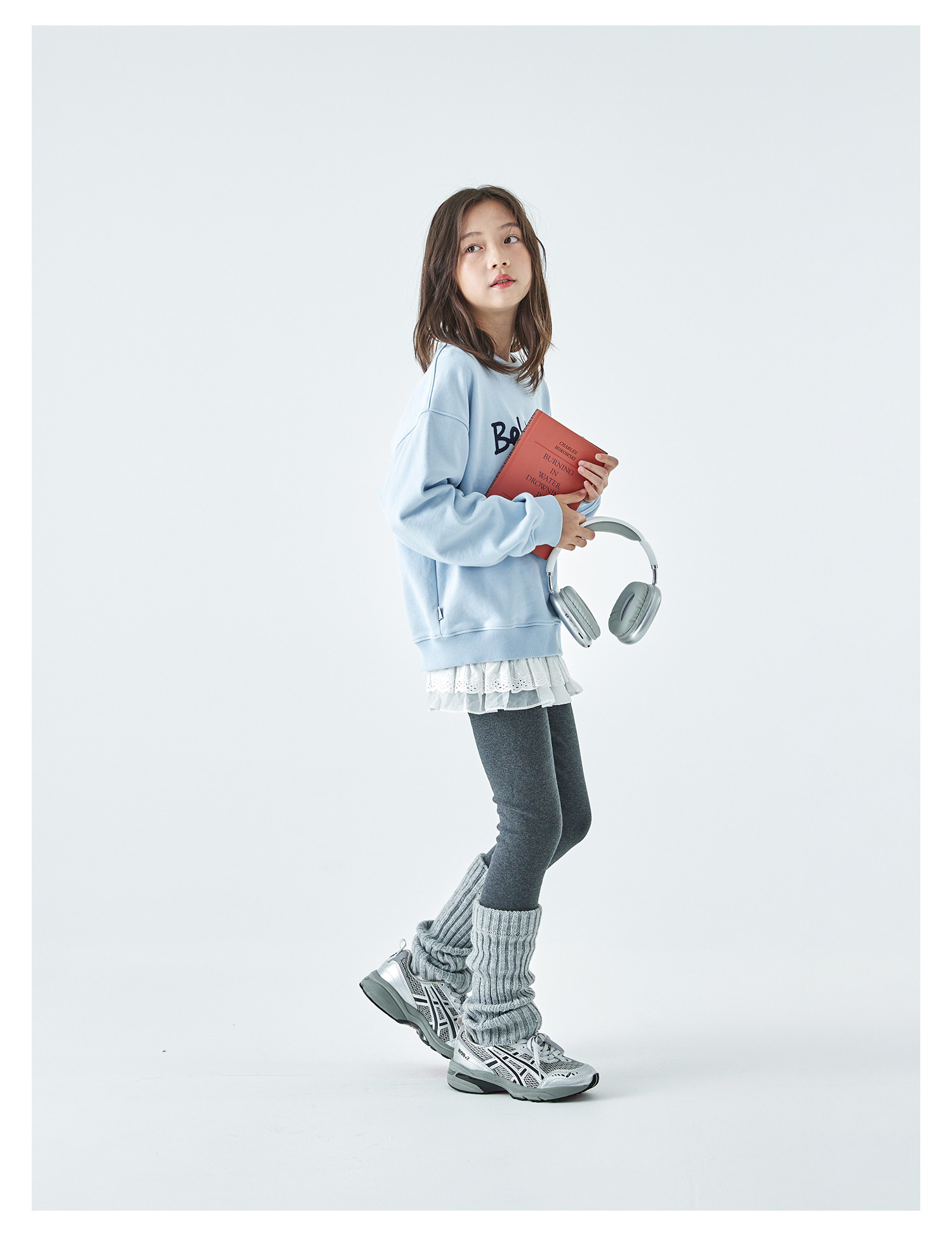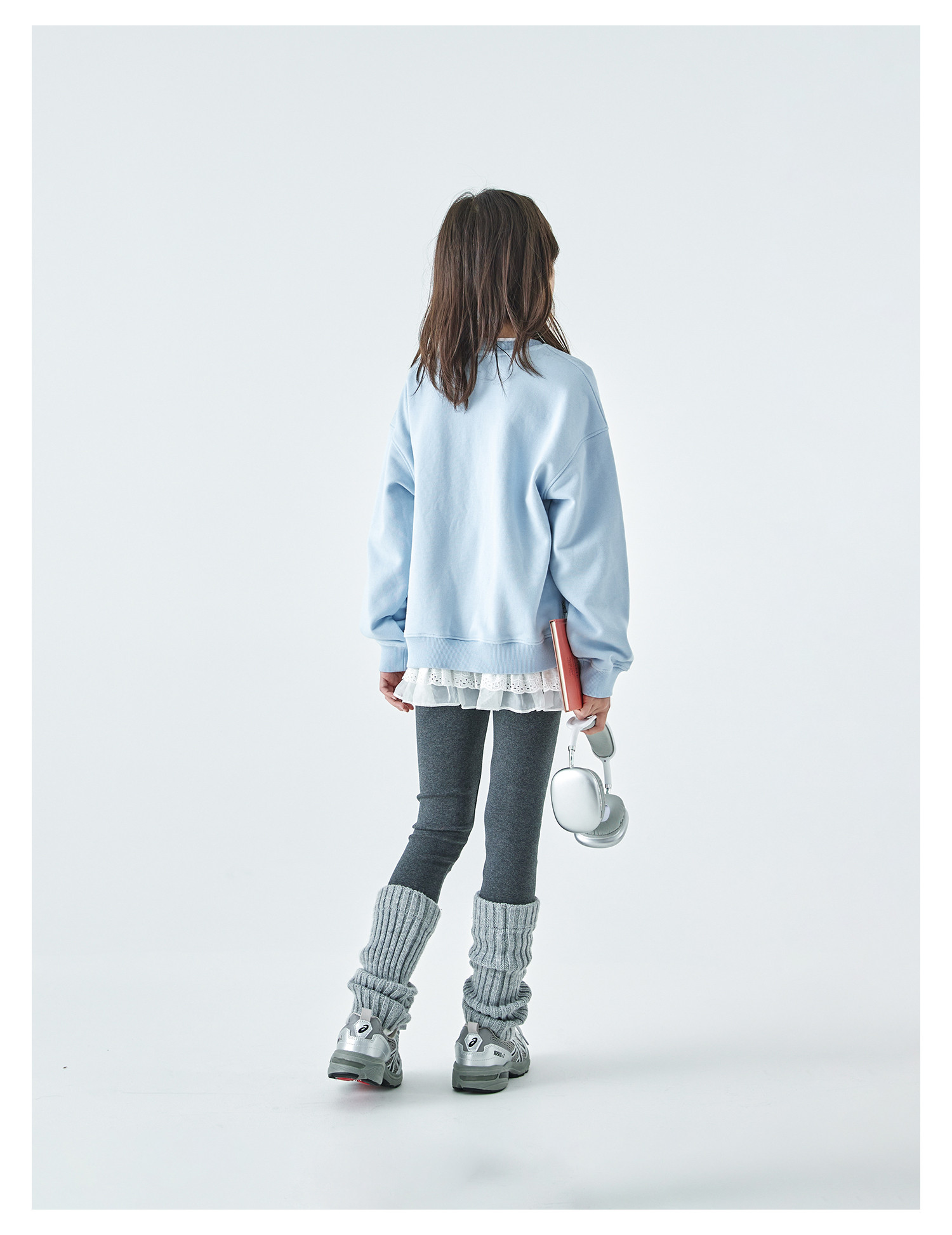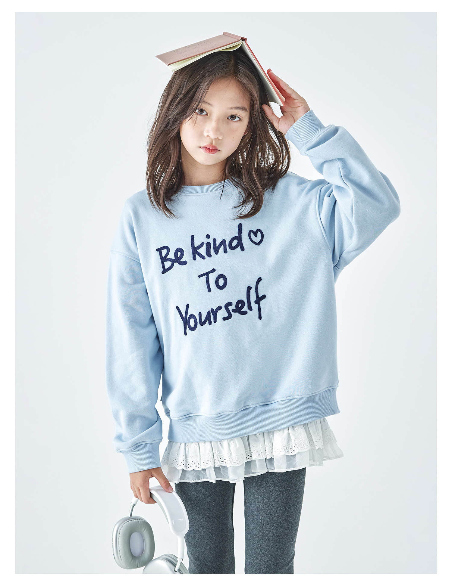 棵初2026春季新款亲子中大女童撞色圆领卫衣宽松简约字母印花上衣