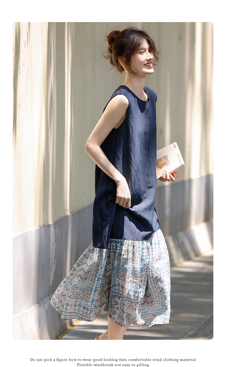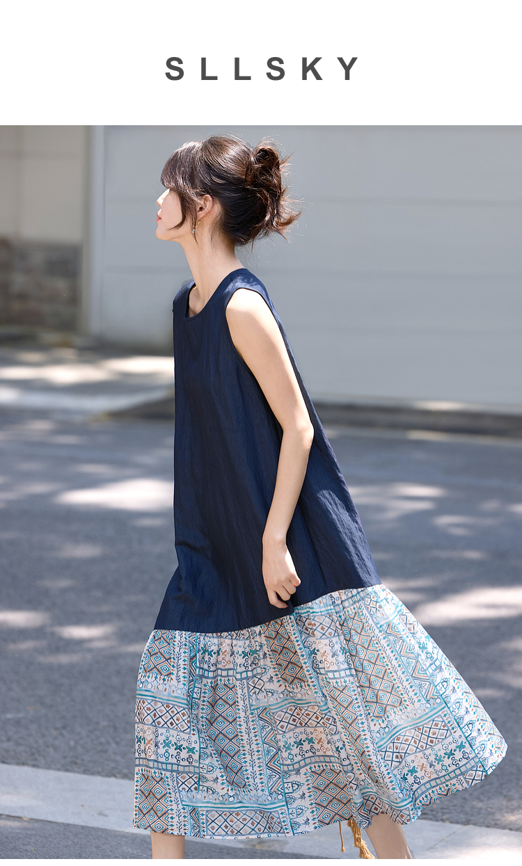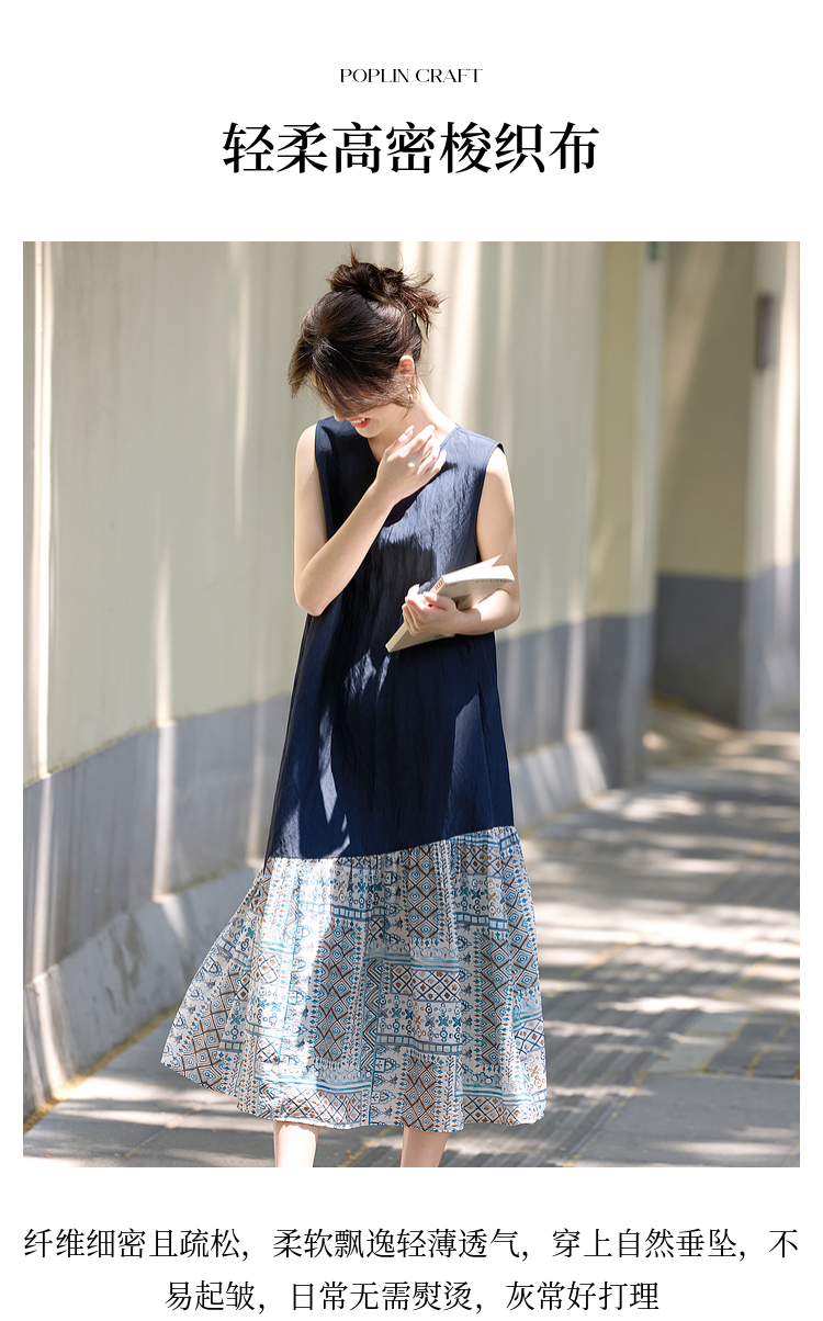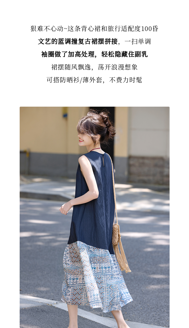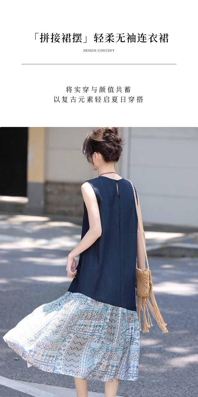 【07/16新品】熙世界轻熟风复古印花拼接背心连衣裙女夏季设计感假两件无袖裙子