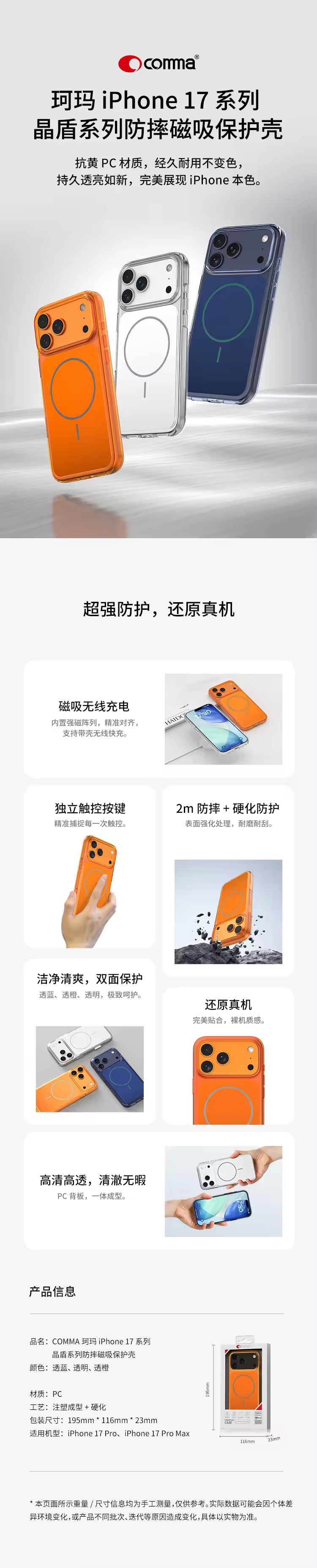 保护壳 iPhone 17 Pro系列 晶盾防摔 透橙-comma