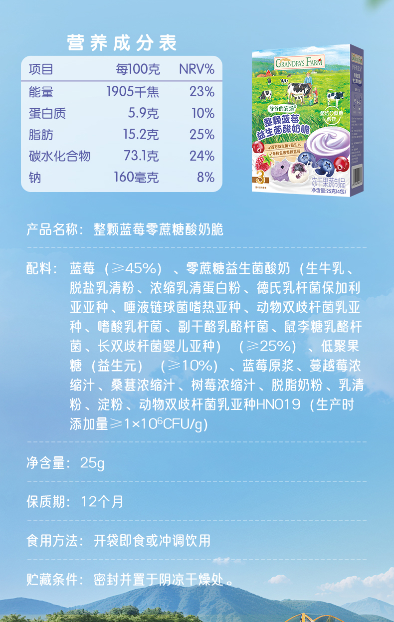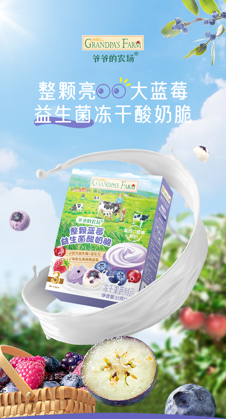 爷爷的农场酸奶溶豆*2盒(原味+莓果)+整颗蓝莓酸奶脆*2盒