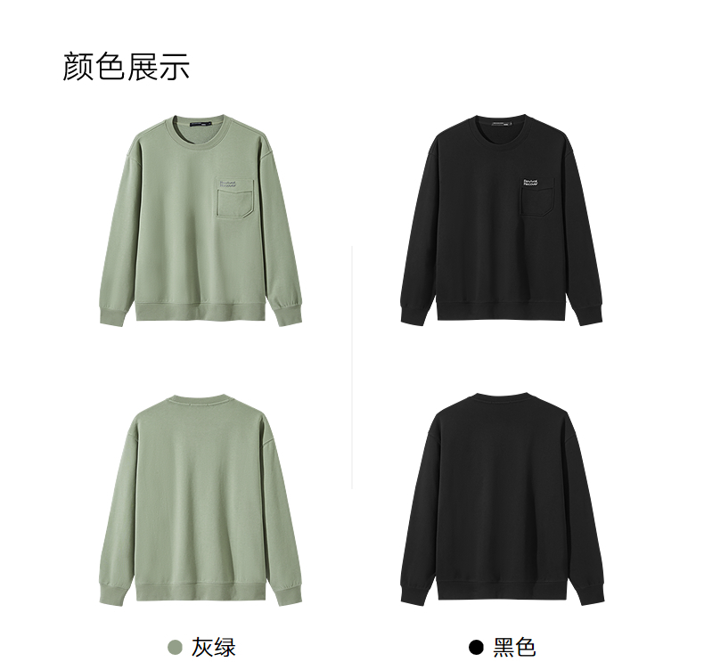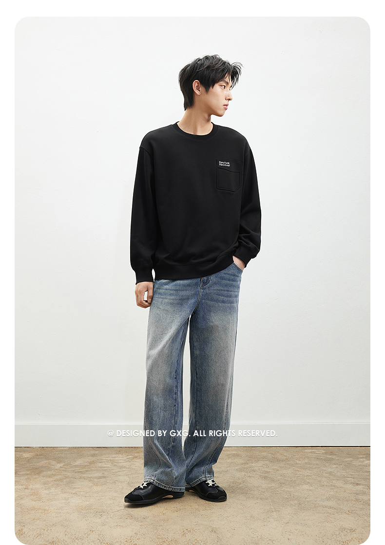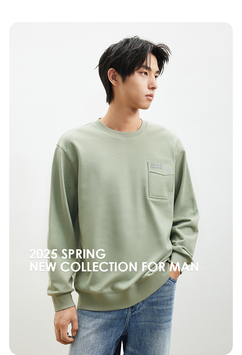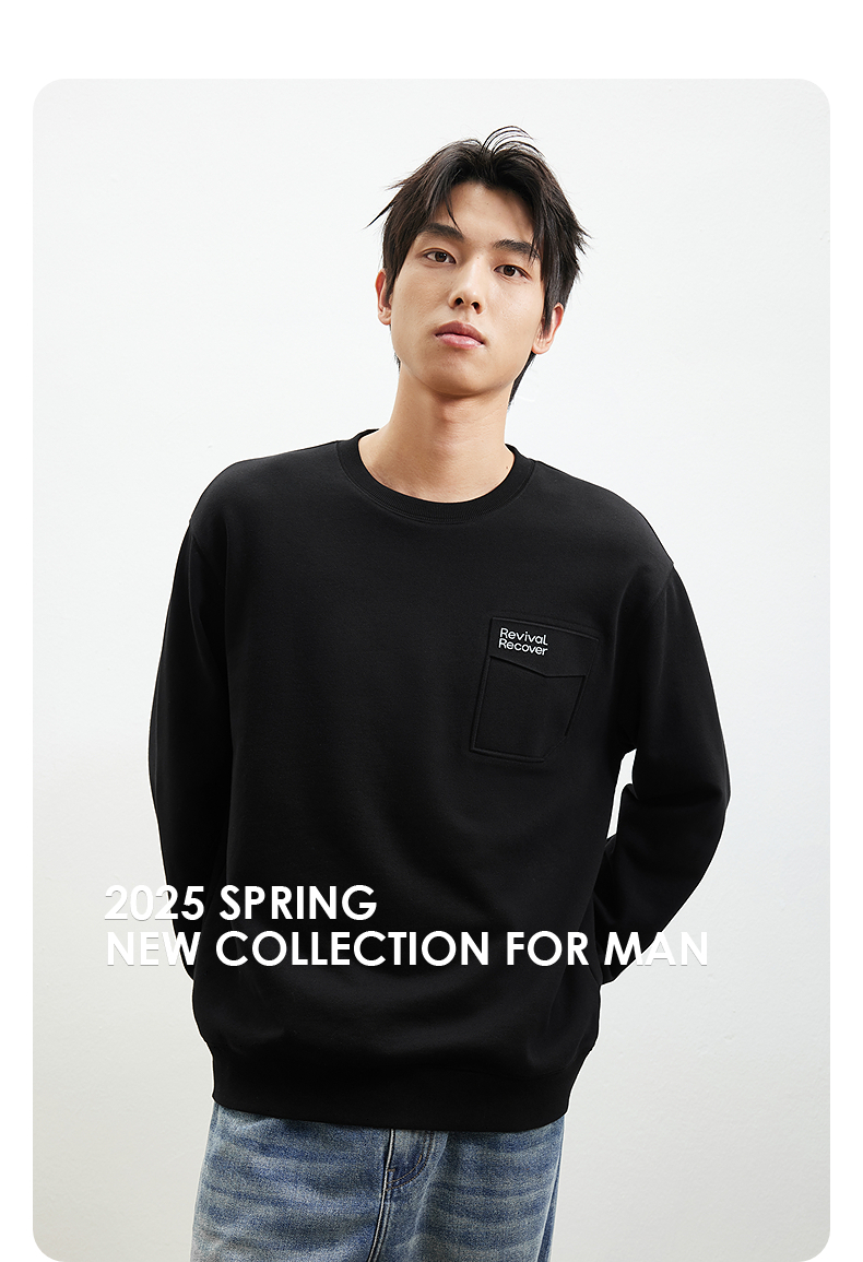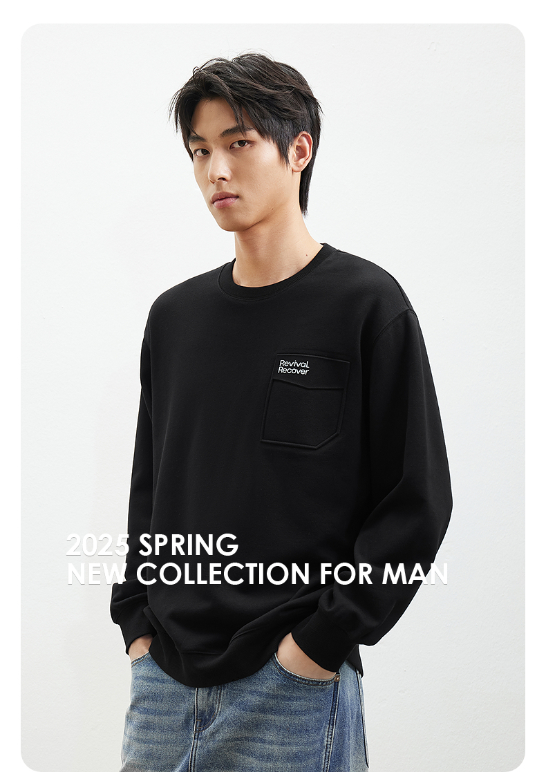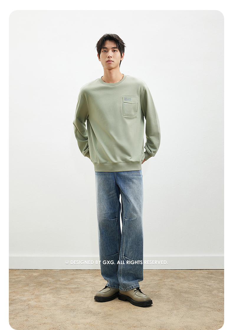 GXG男装 2025年春季GXG热卖百搭休闲立体印花仿真口袋男士圆领卫衣