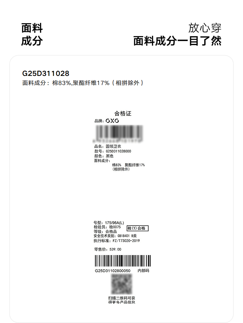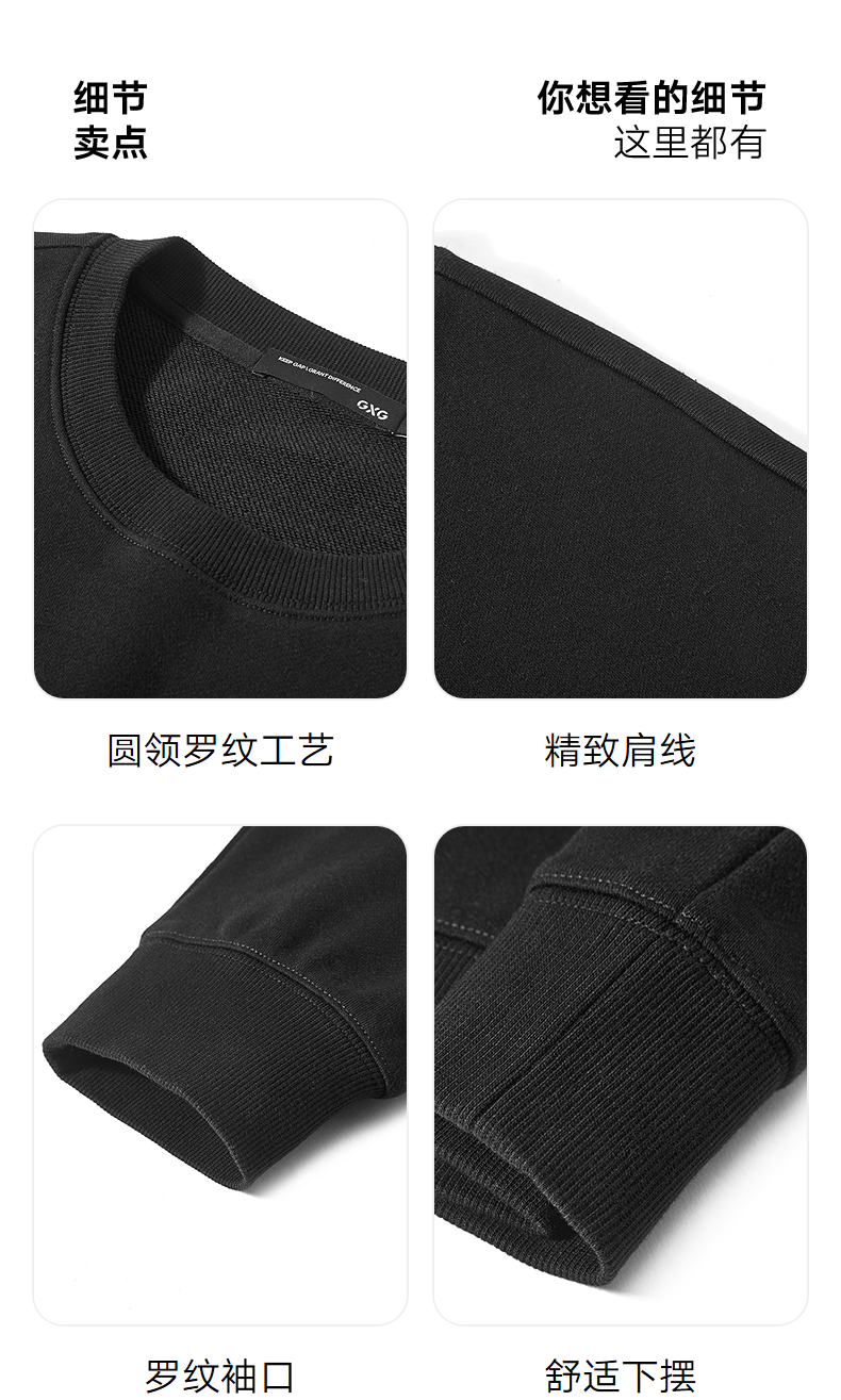 GXG男装 圆领双色小标卫衣通勤长袖上衣分割线卫衣 2025春季热卖